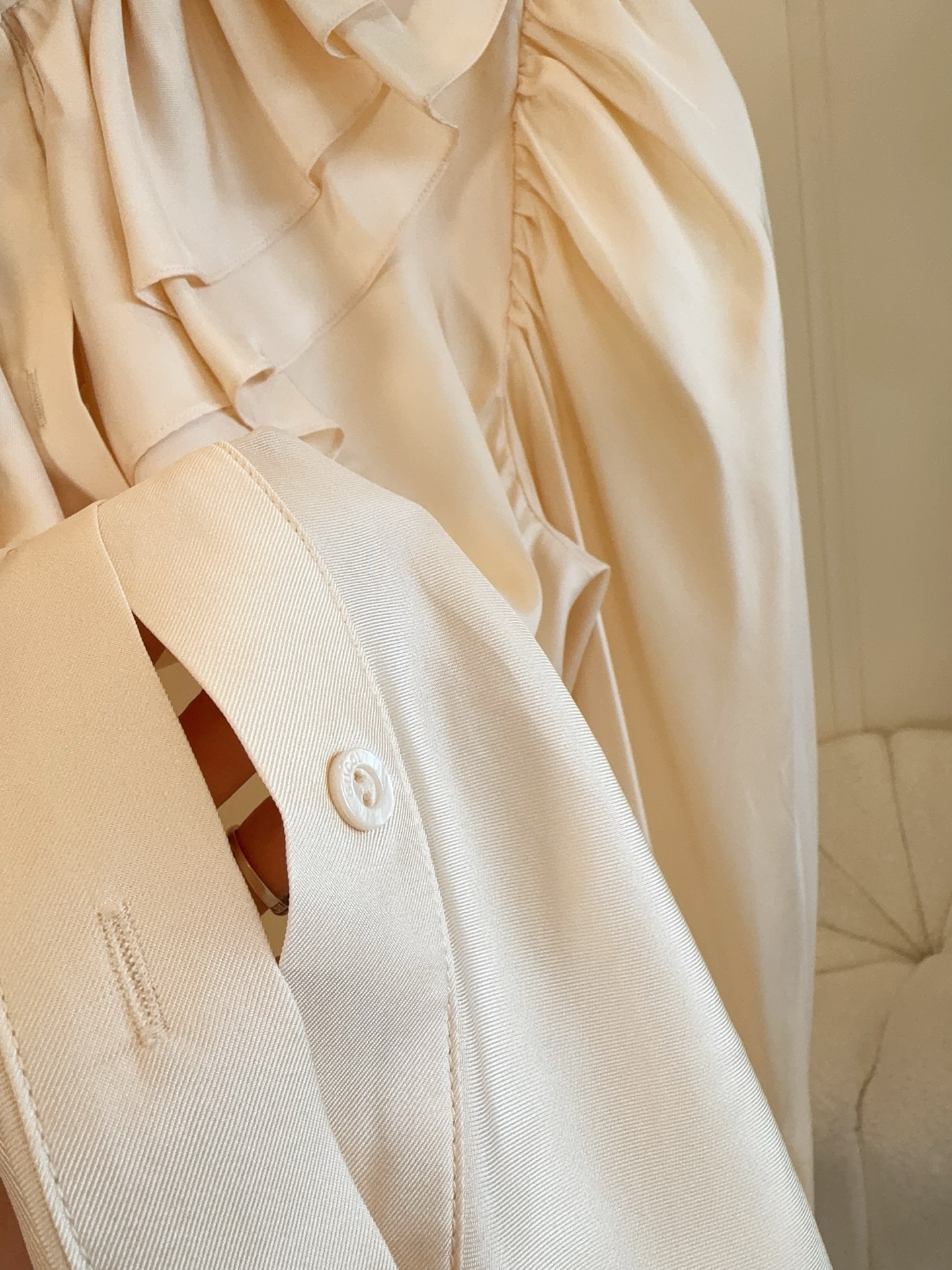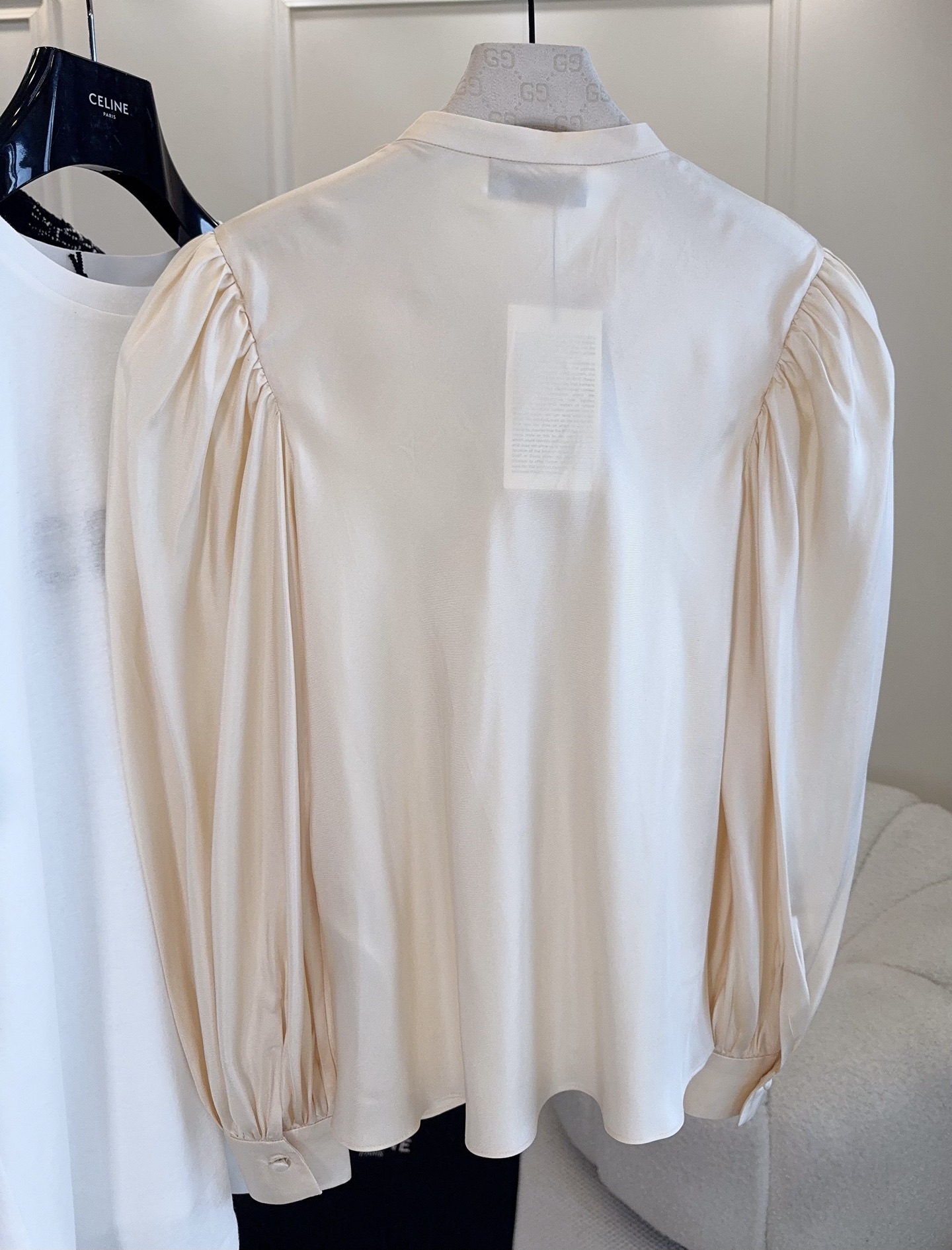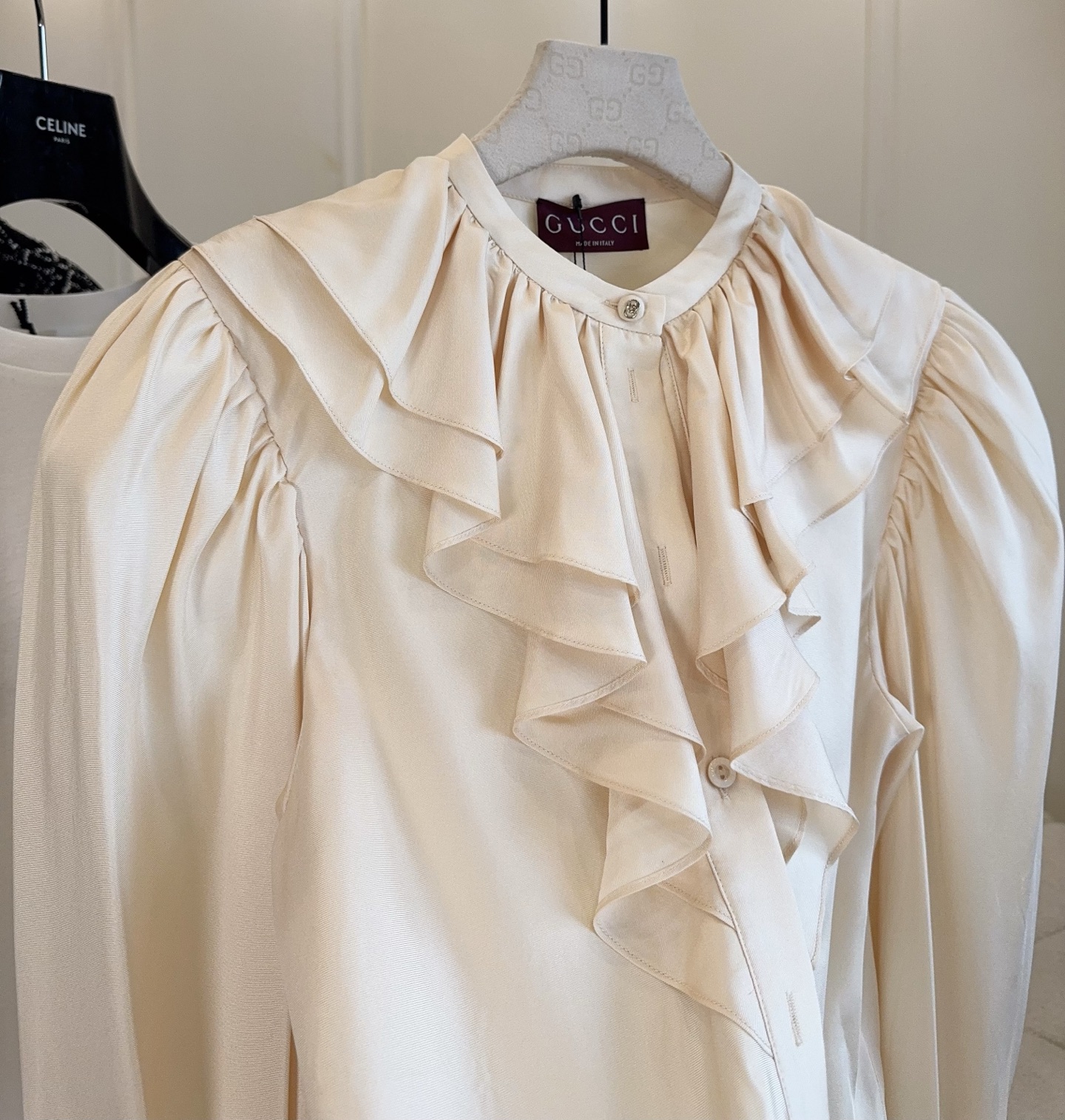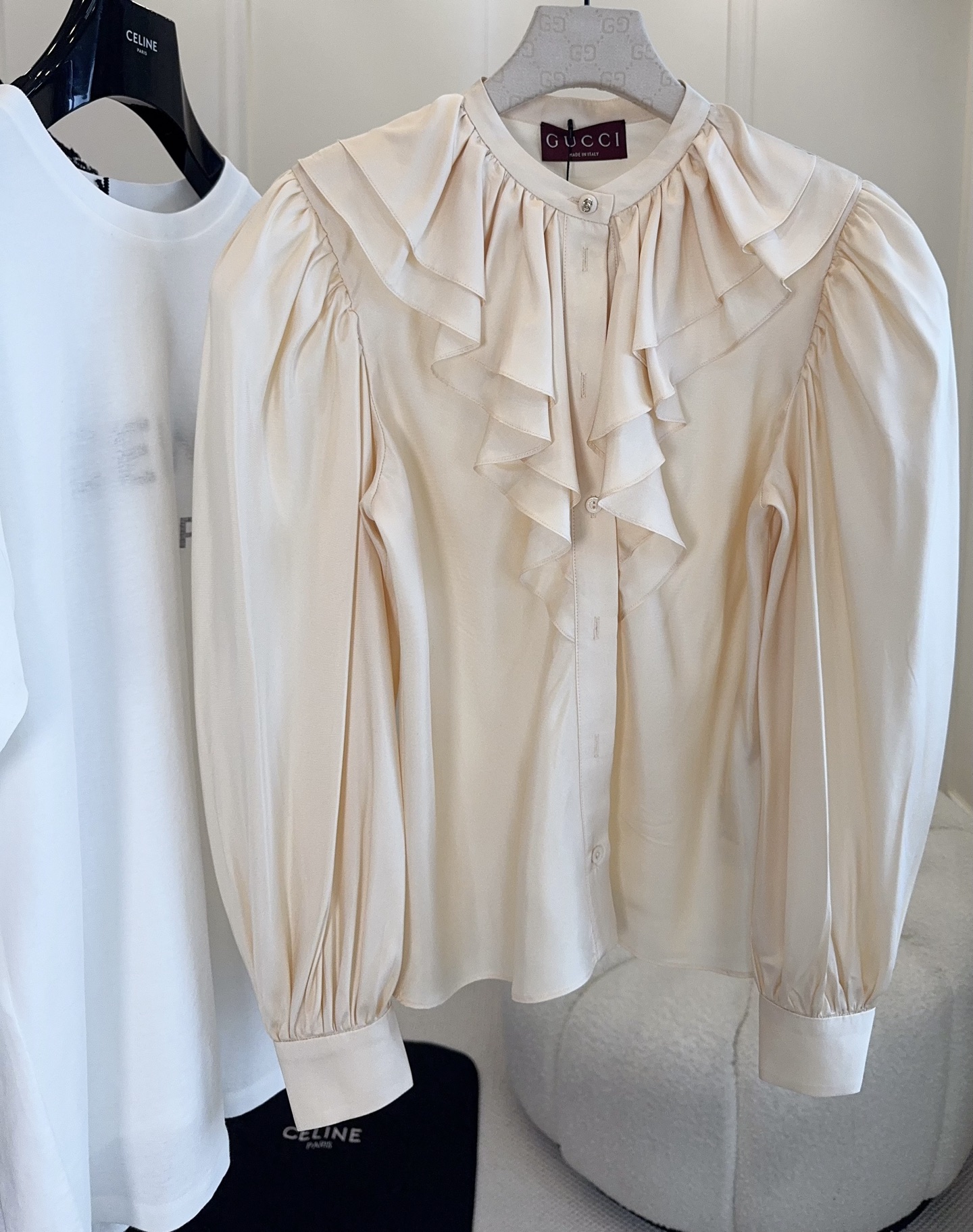 구찌 러플 트리밍 장식의 실크 트윌 셔츠 854515 수량