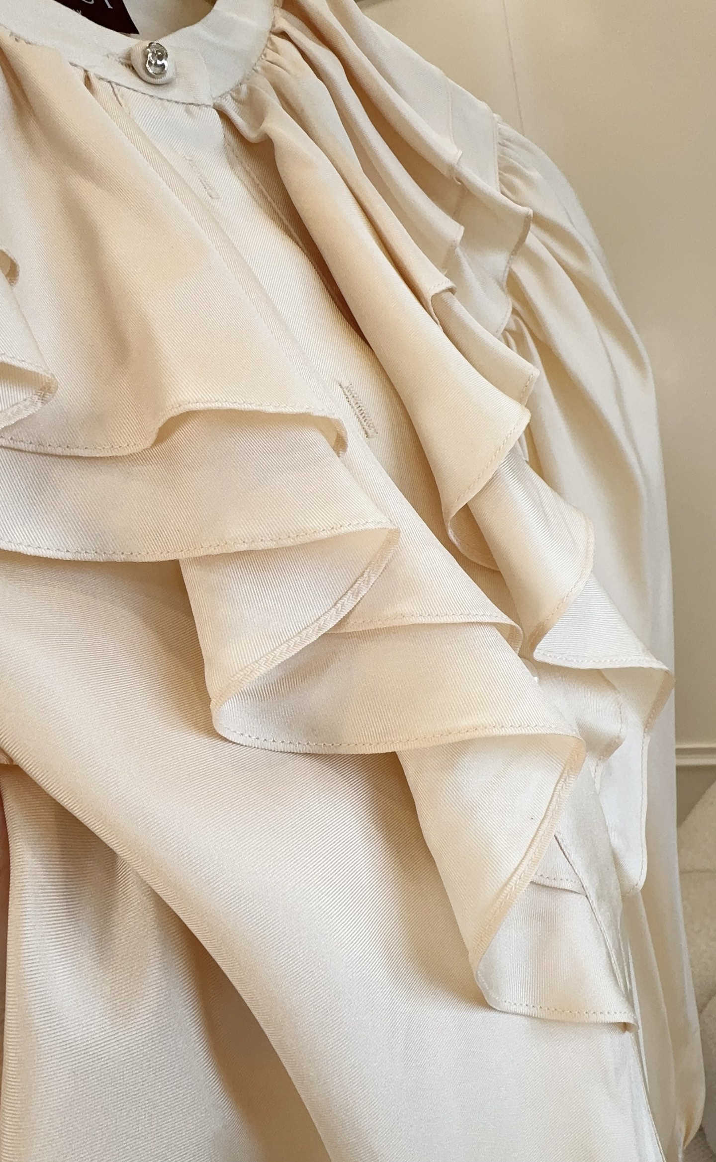구찌 러플 트리밍 장식의 실크 트윌 셔츠 854515