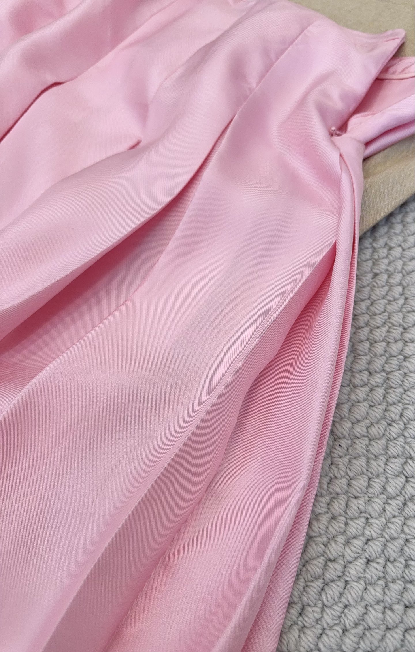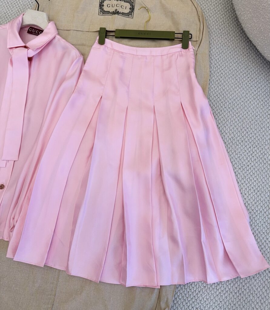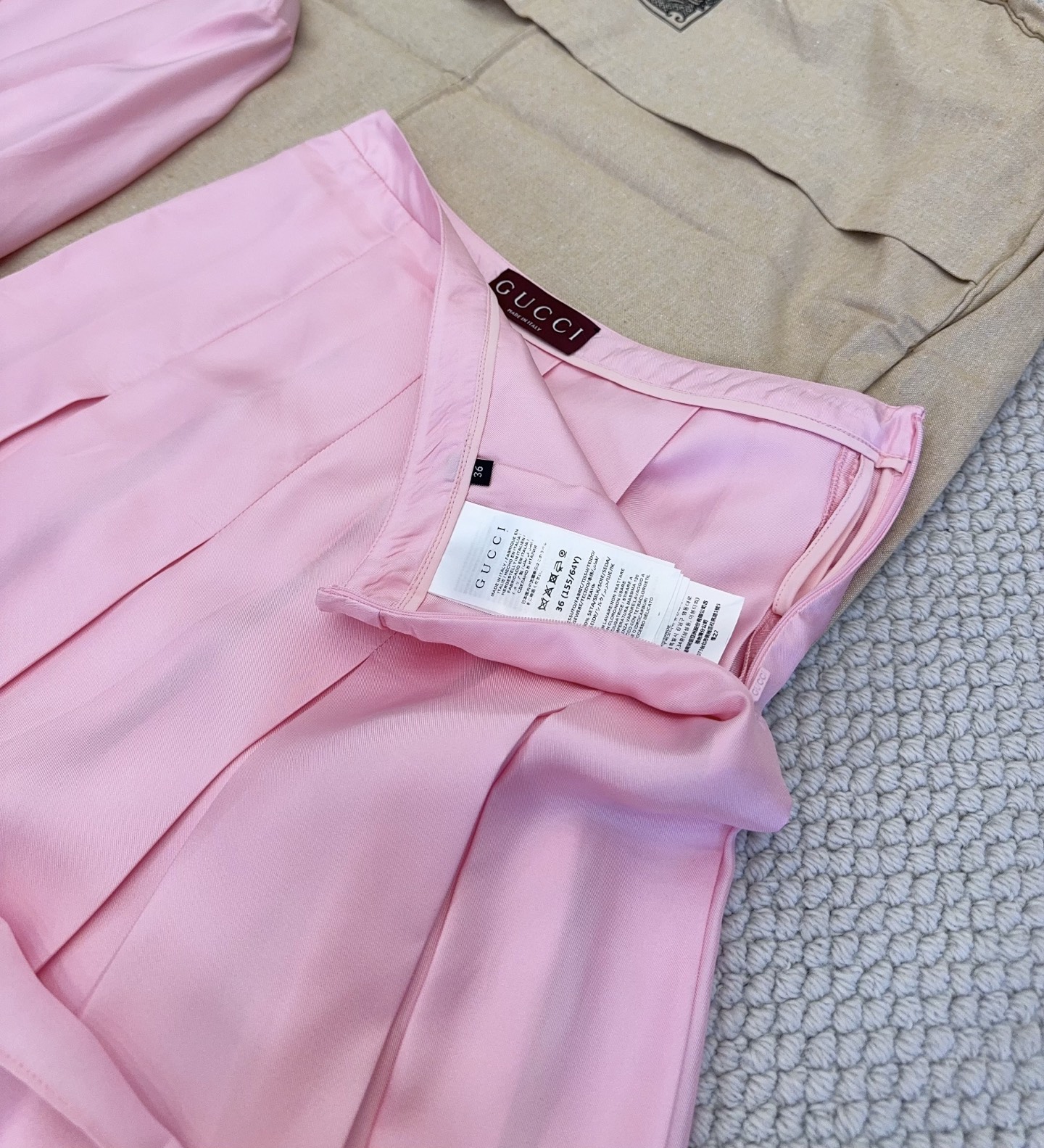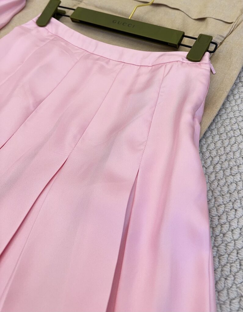 구찌 실크 트윌 플리츠 미디 스커트 라이트 핑크 864510