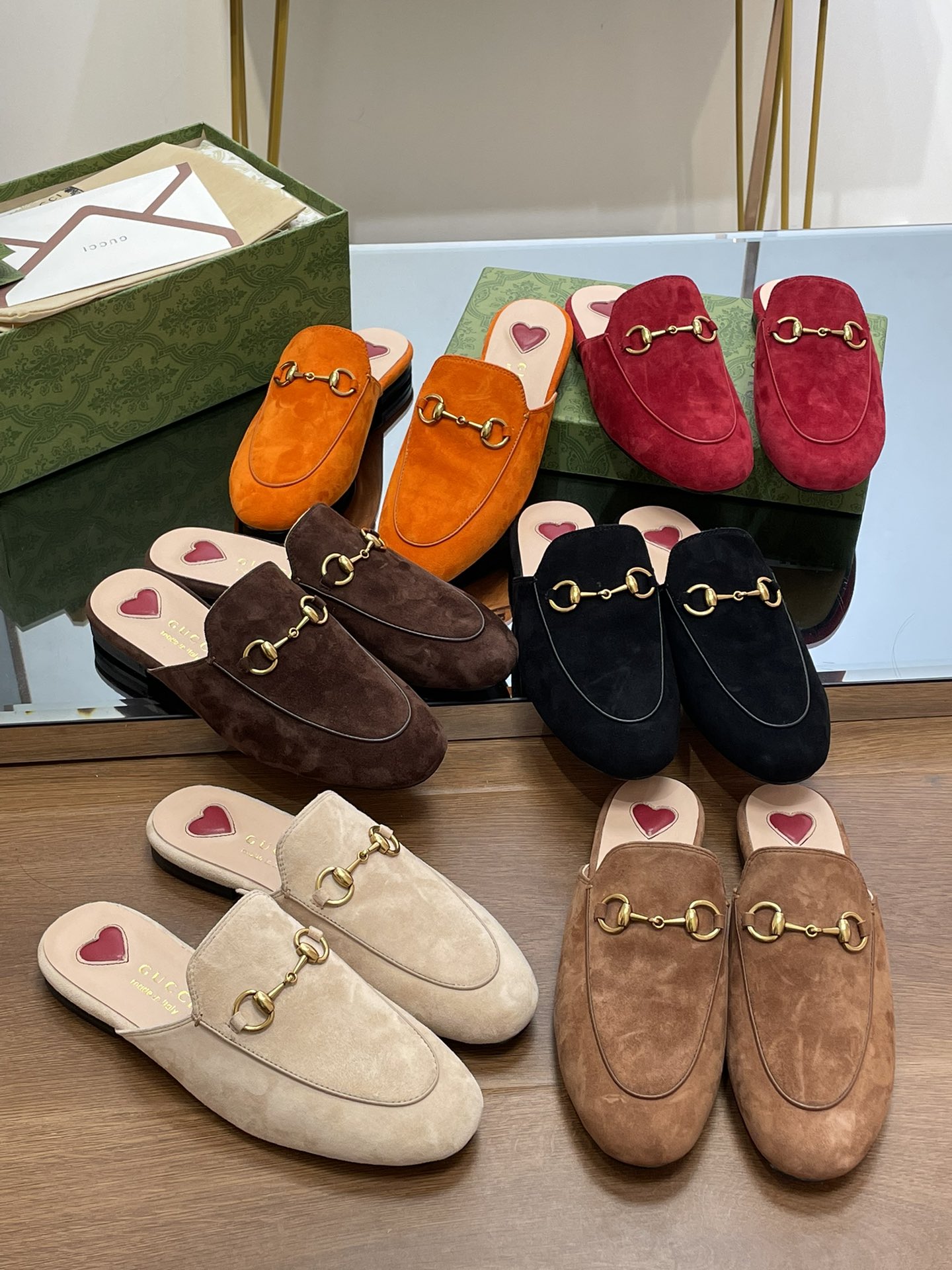 구찌 GG 홀스빗 스웨이드 뮬 블로퍼 557730 신발 수량