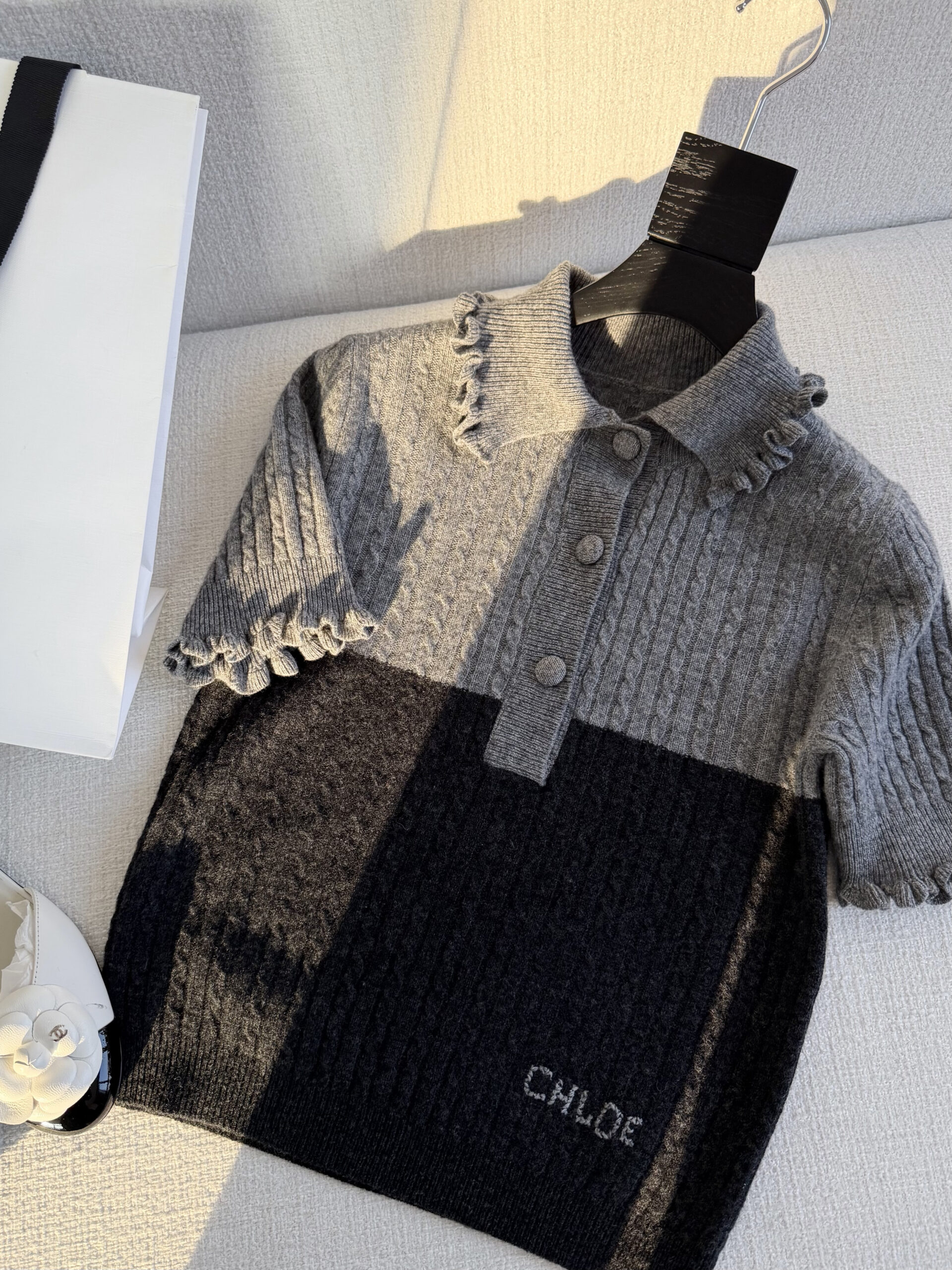 / 끌로에 반팔 폴로 칼라 울 및 캐시미어 니트 CH25WMP415