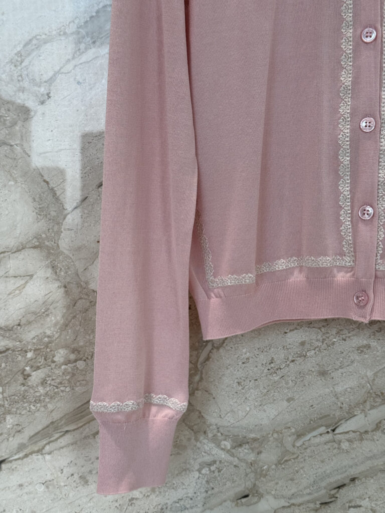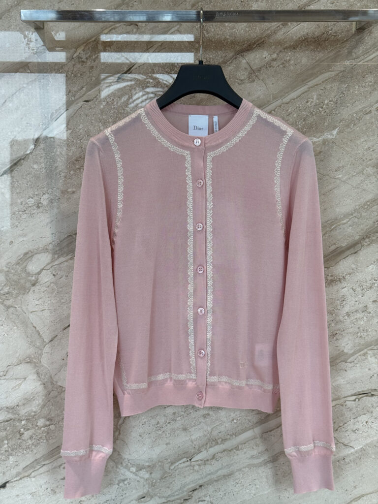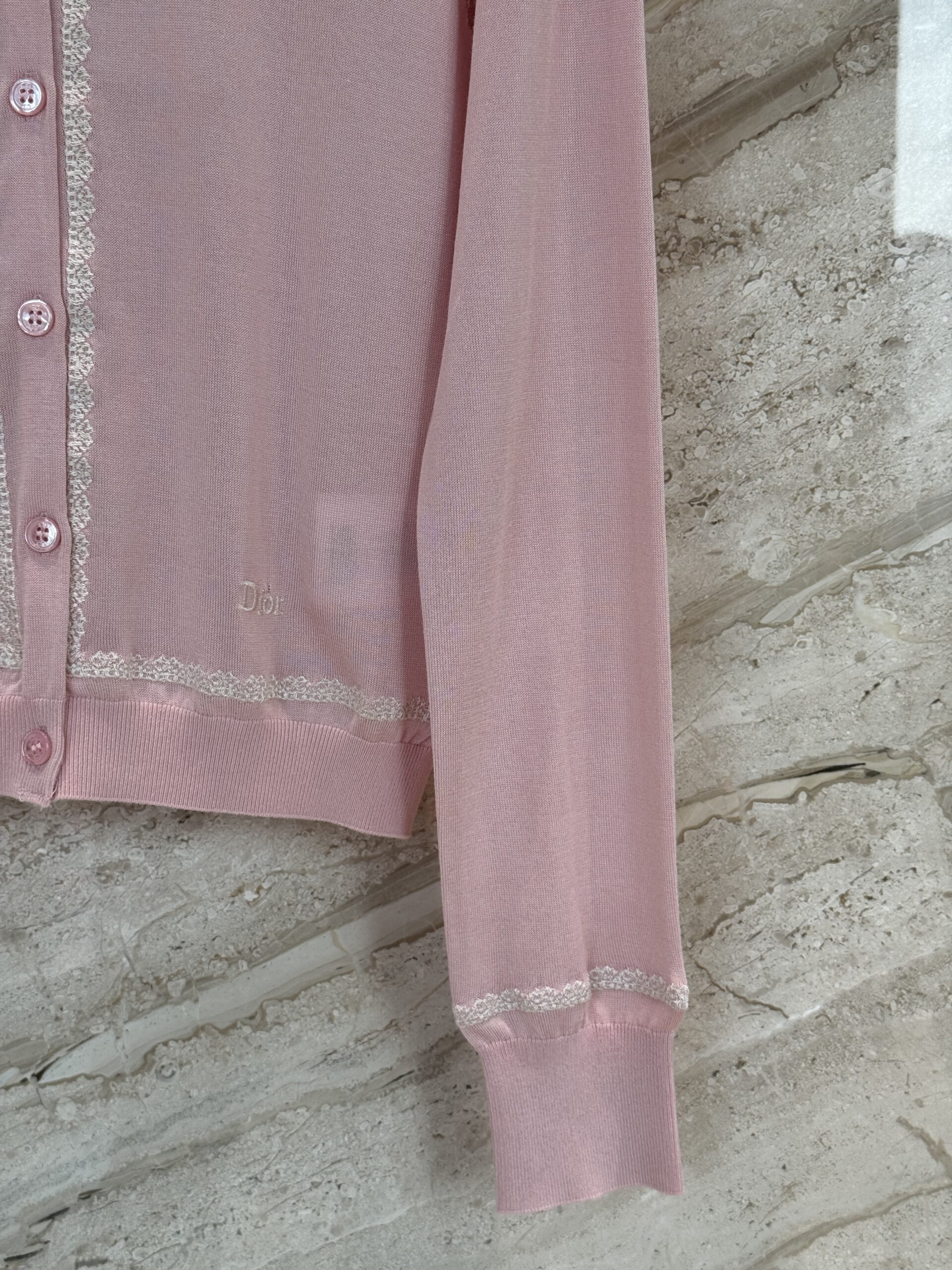 / 디올 가디건 에크루 레이스 핑크 624G34A6E80