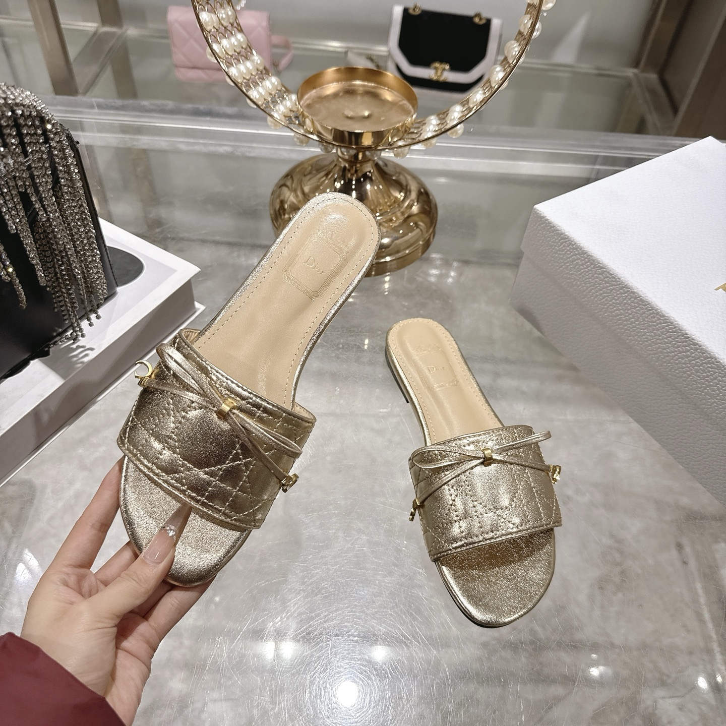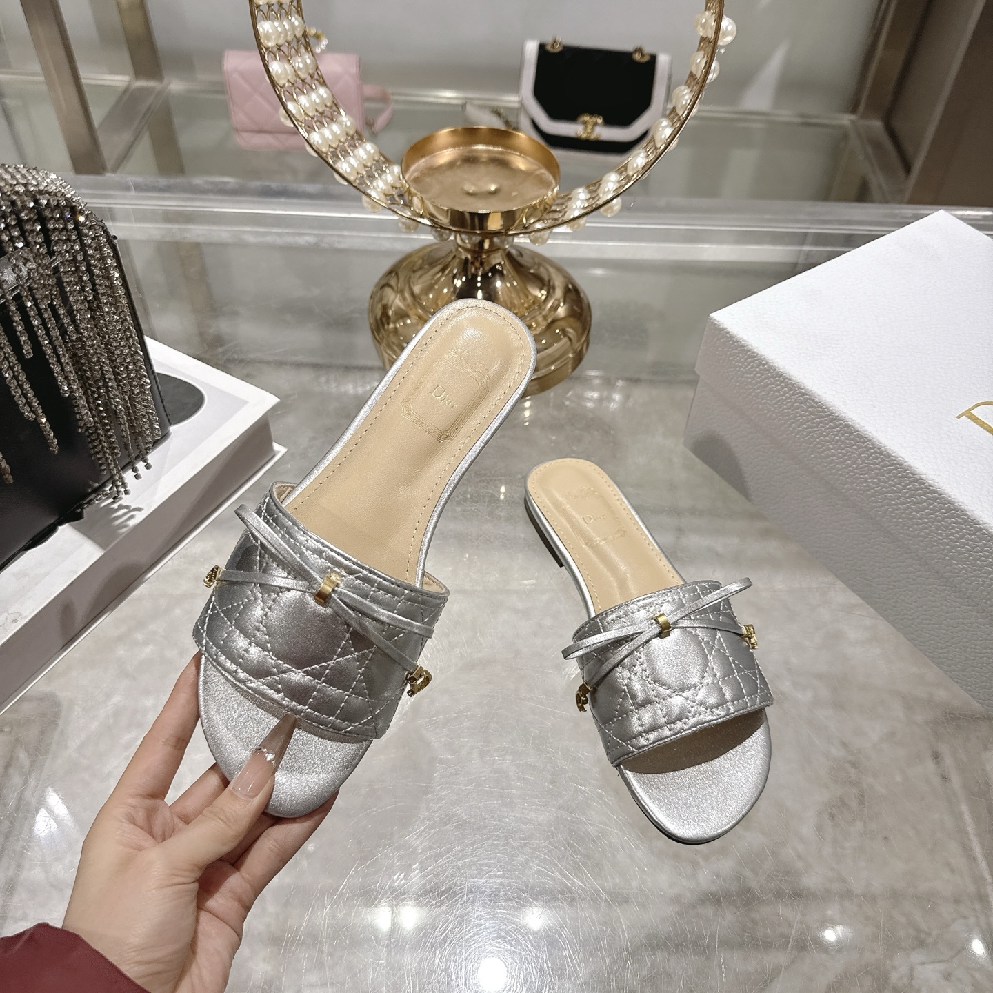 디올 까나쥬 뮬 슬라이드 슬리퍼 퀼트 KCO545CQL