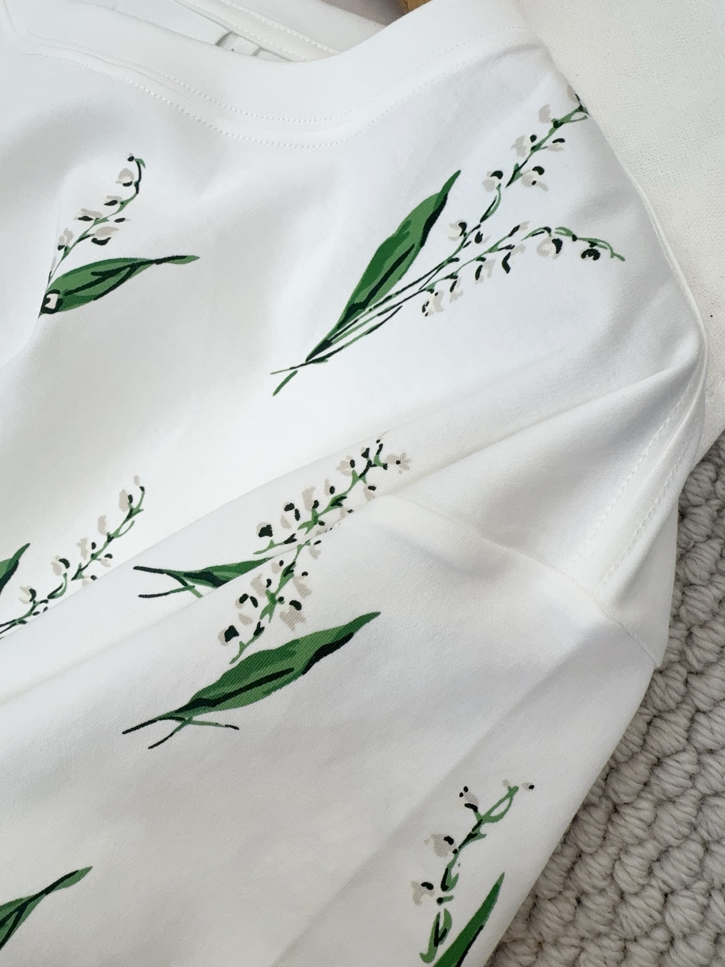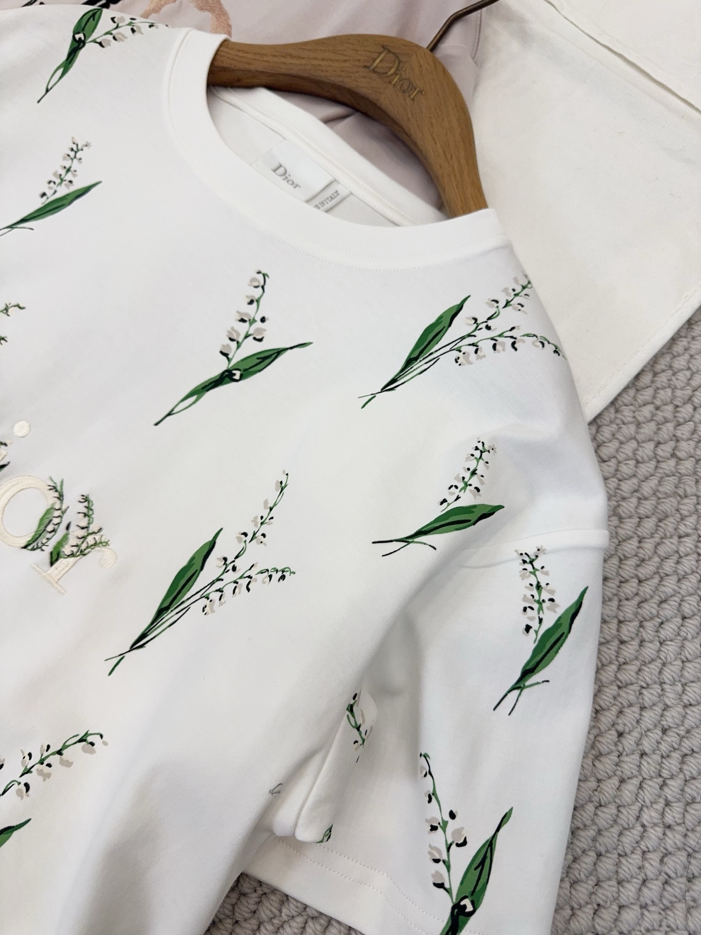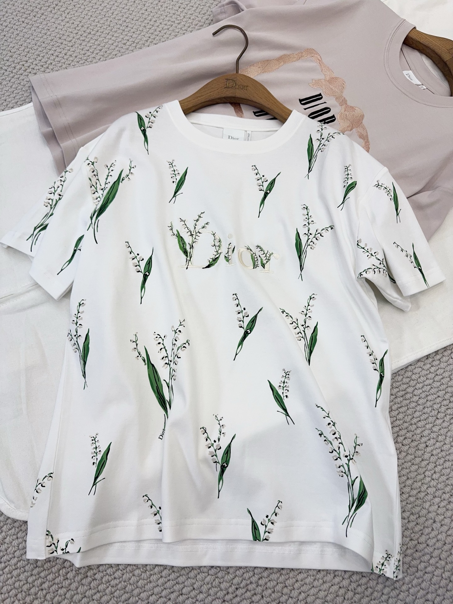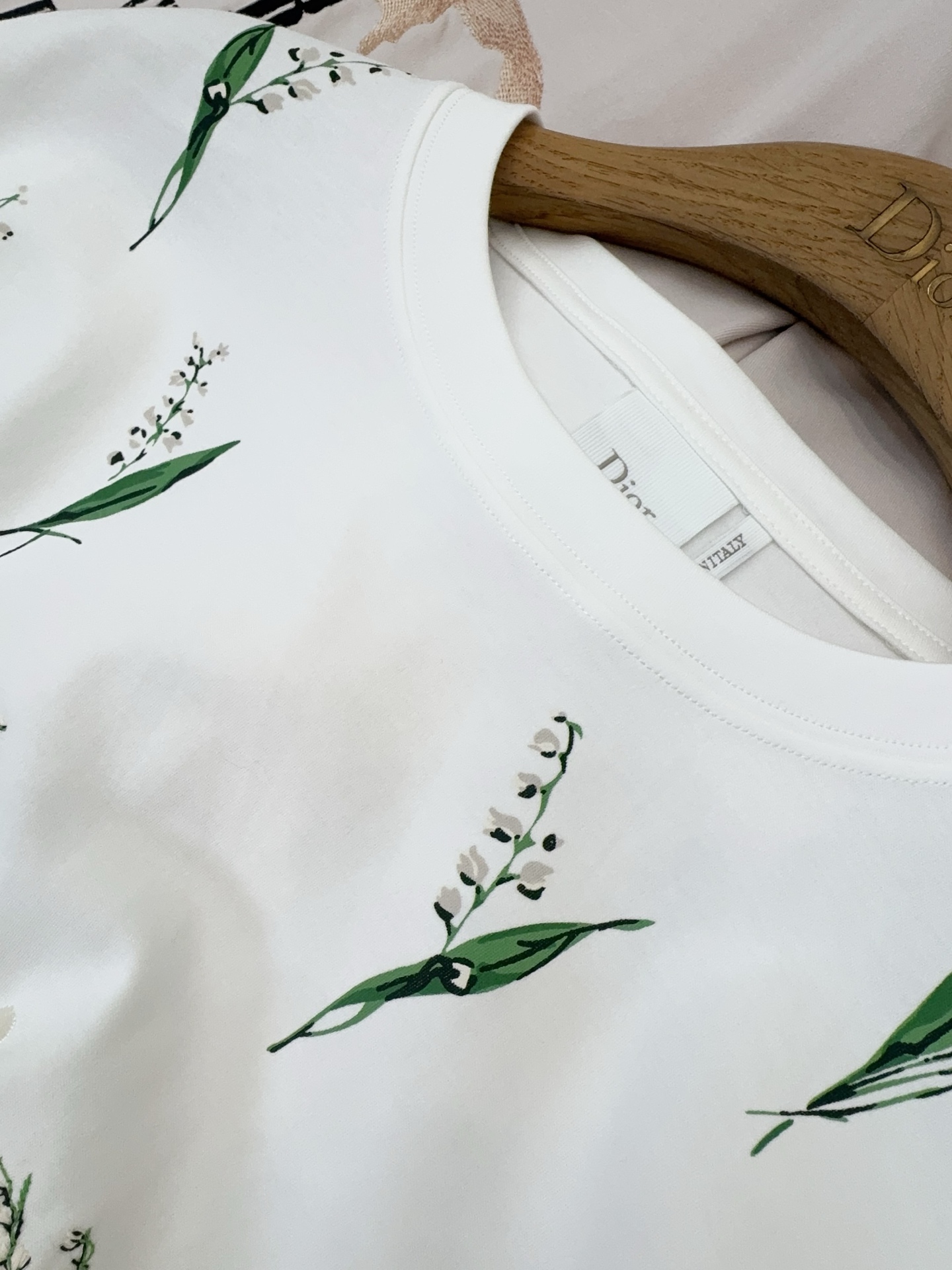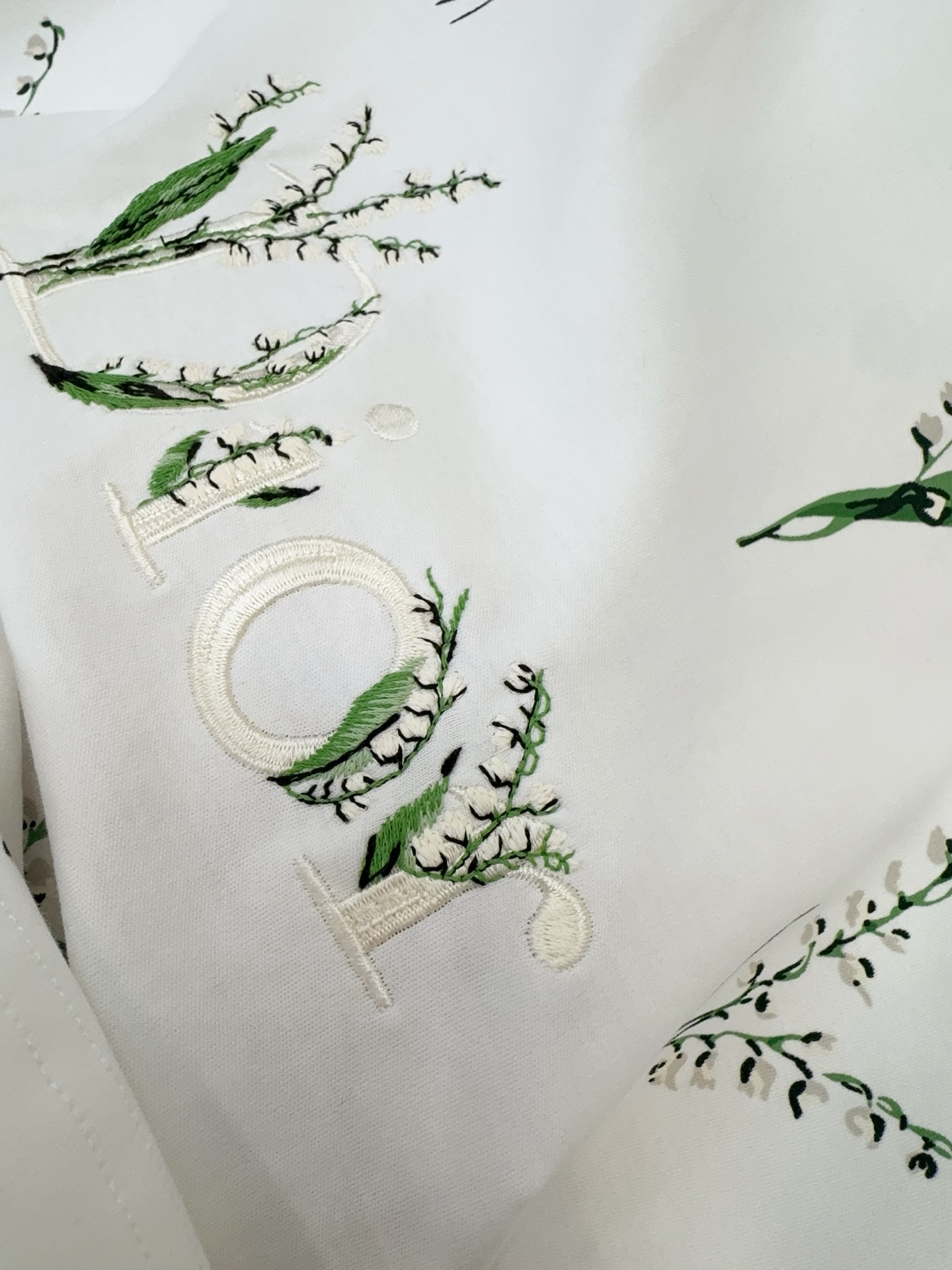 디올 릴리 오브 더 밸리 오버사이즈 자수 반팔 티셔츠 화이트 623T12A4279