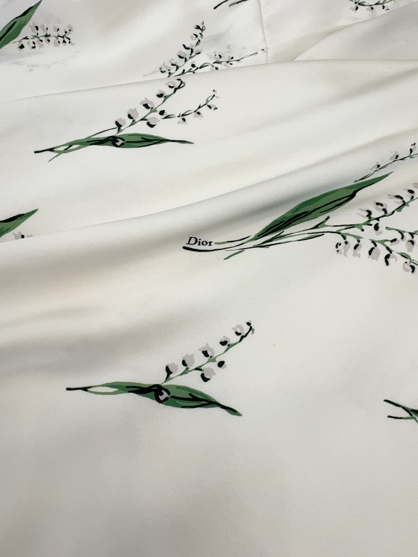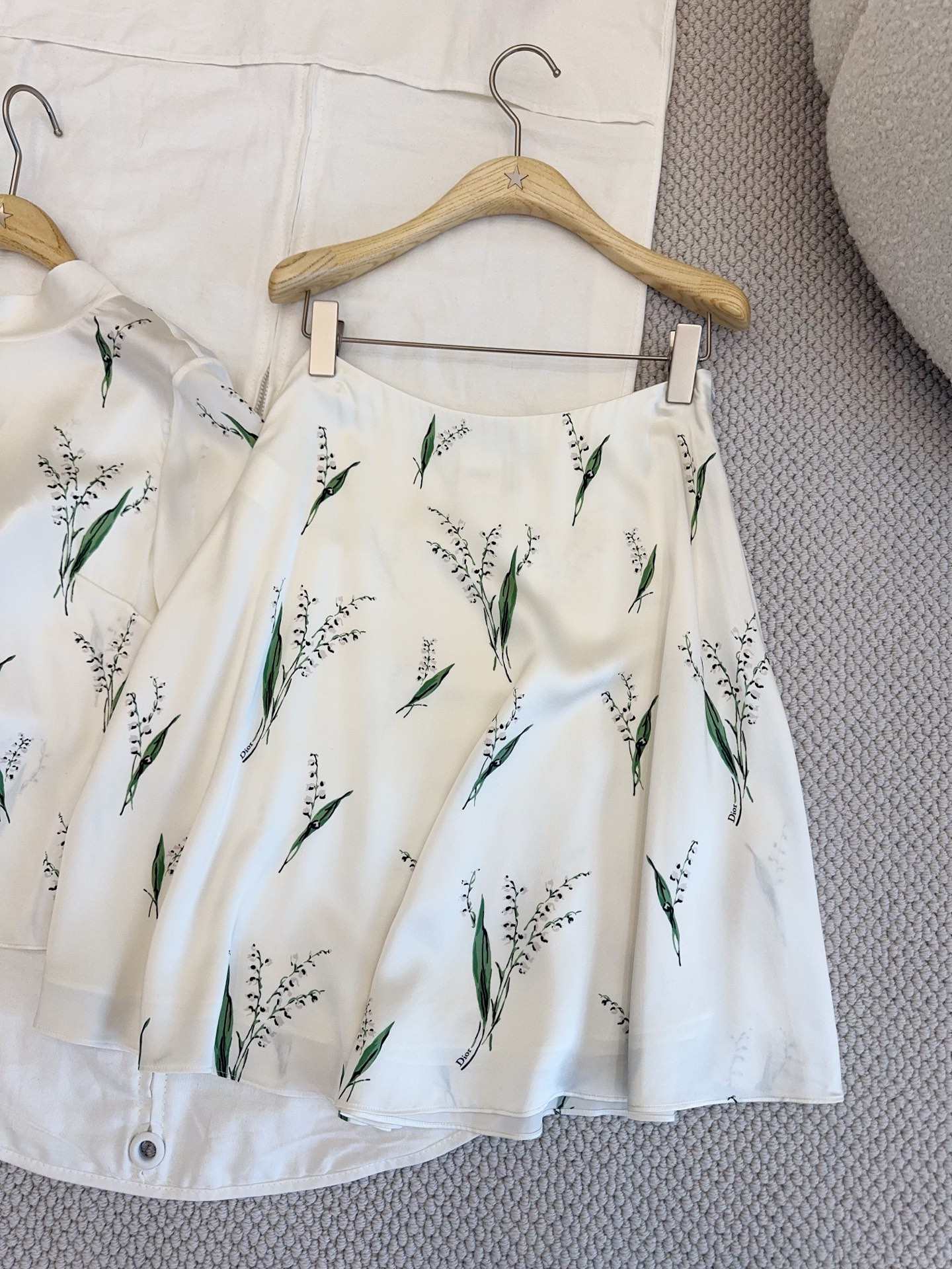 / 디올 릴리 오브 더 밸리 플레어 미디 스커트 치마 화이트 그린 621J10A6995