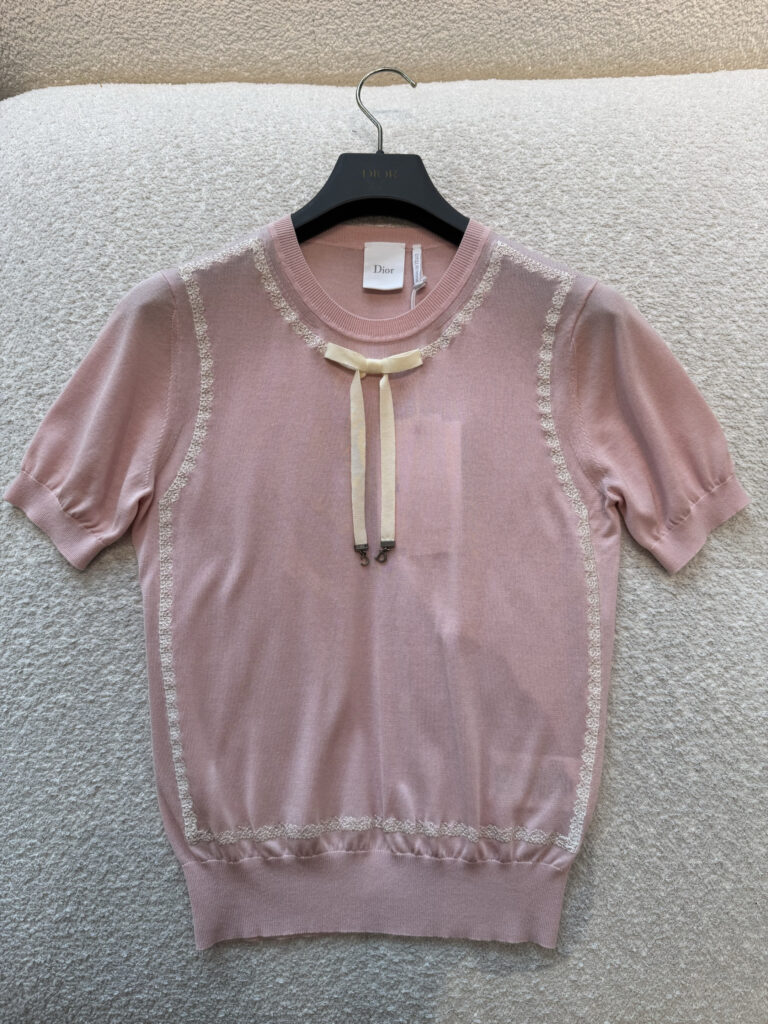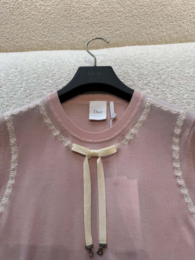 / 디올 반소매 니트 스웨터 에크루 레이스 핑크 624S24A6E80