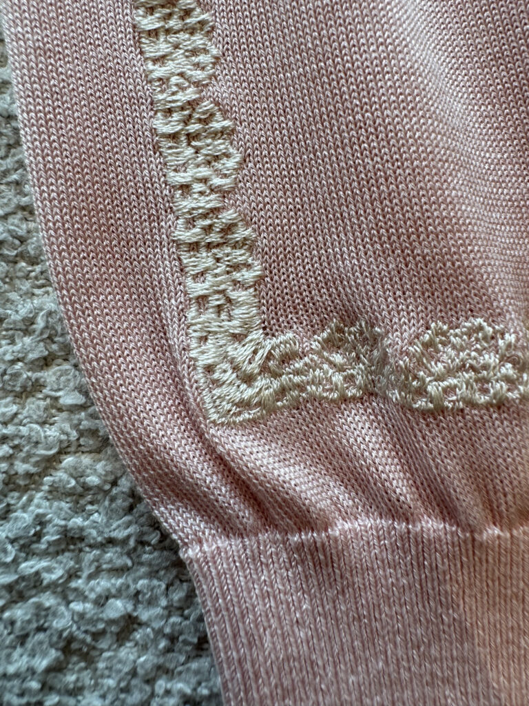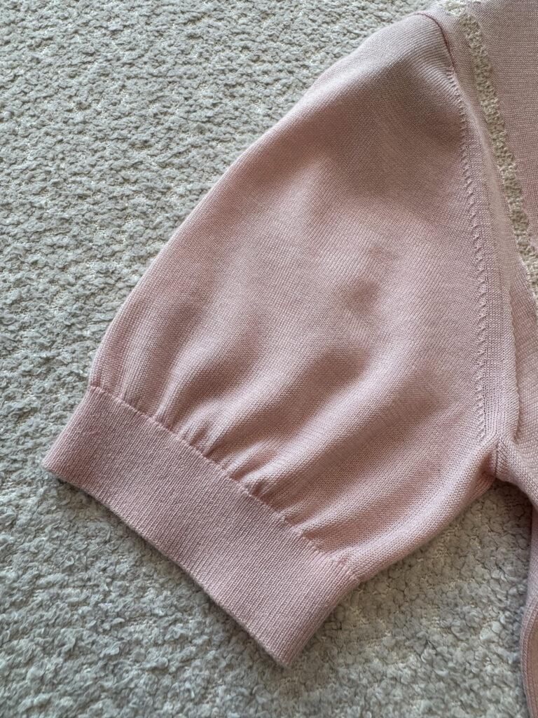 디올 반소매 니트 스웨터 에크루 레이스 핑크 624S24A6E80