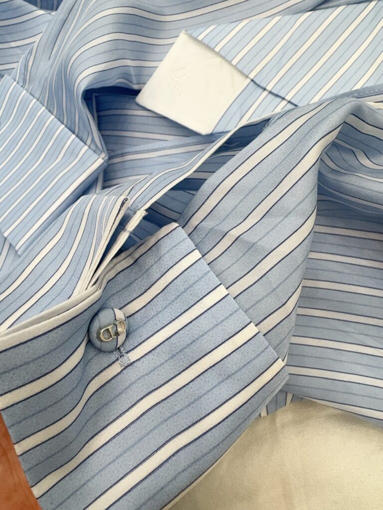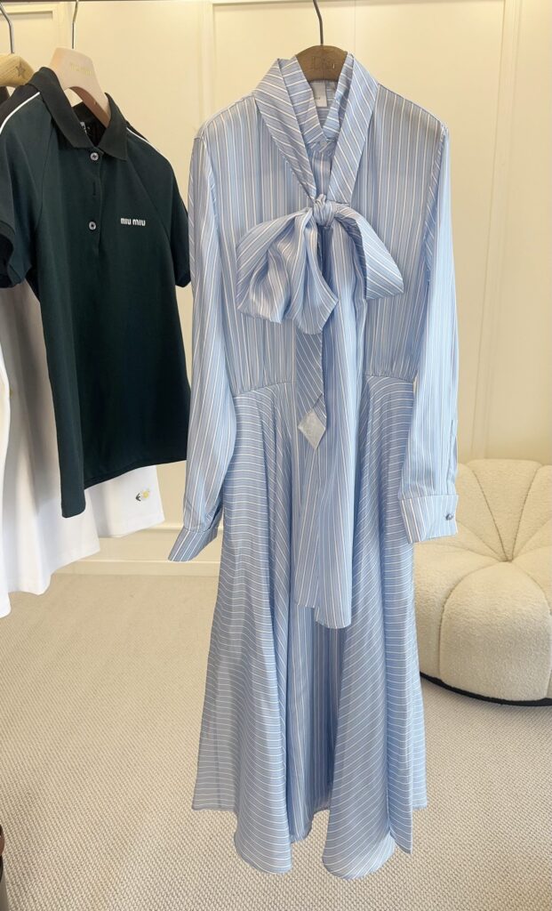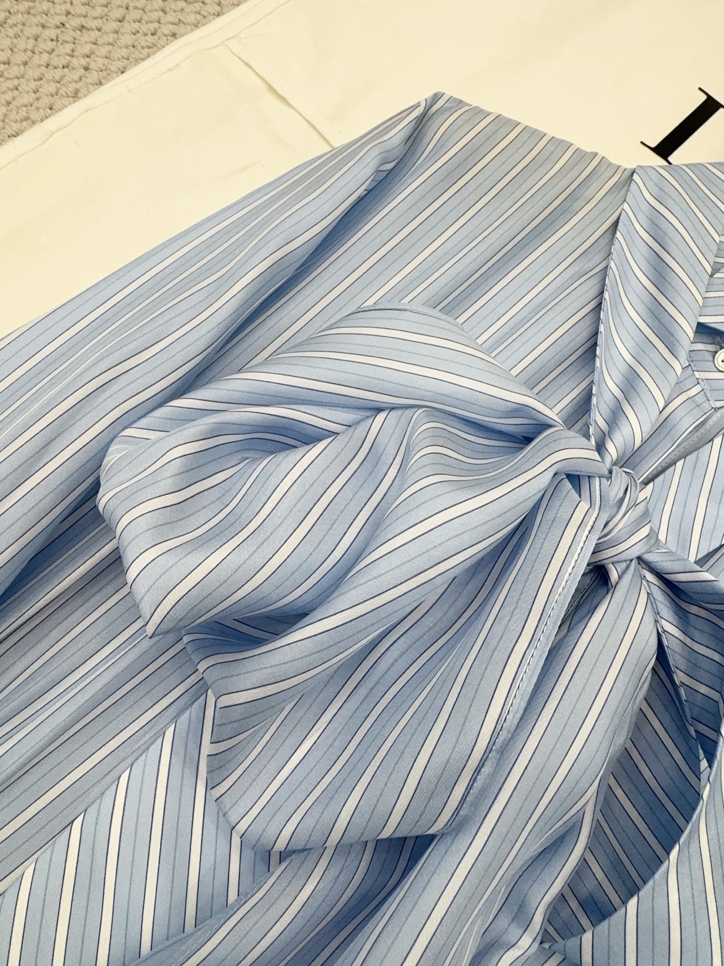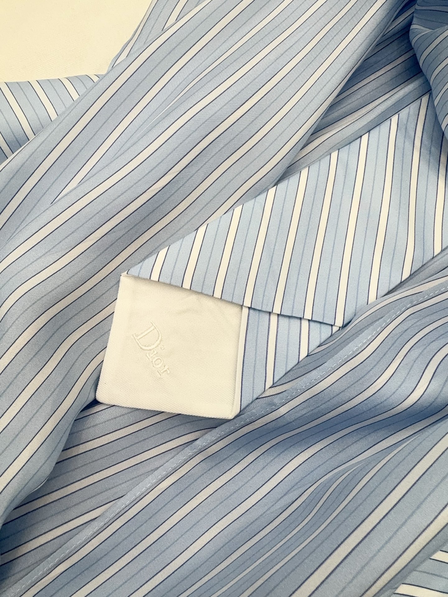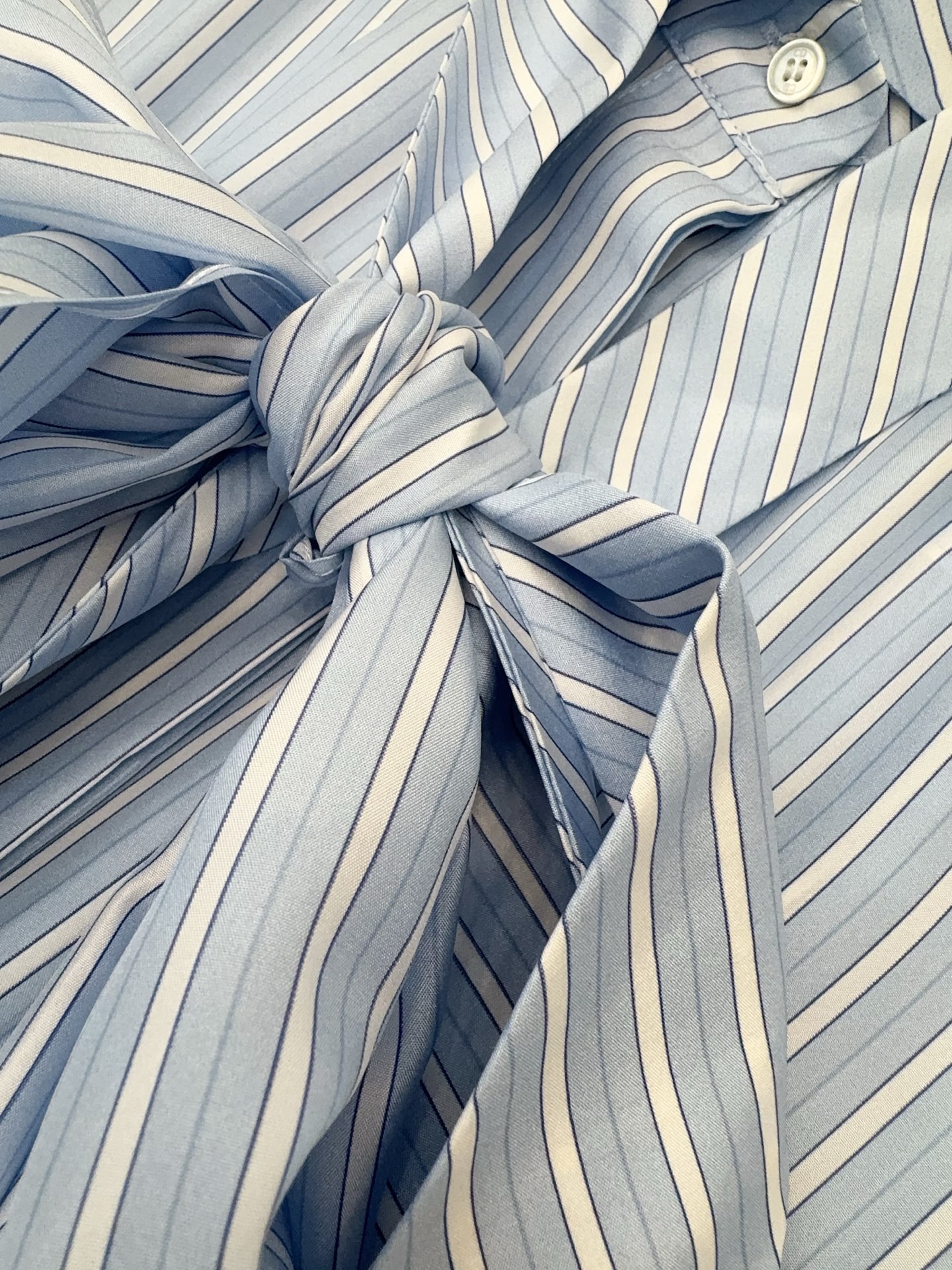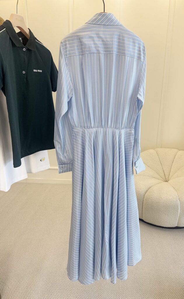 / 디올 실크 스트라이프 벨트 미디 셔츠 원피스 621R01A6992