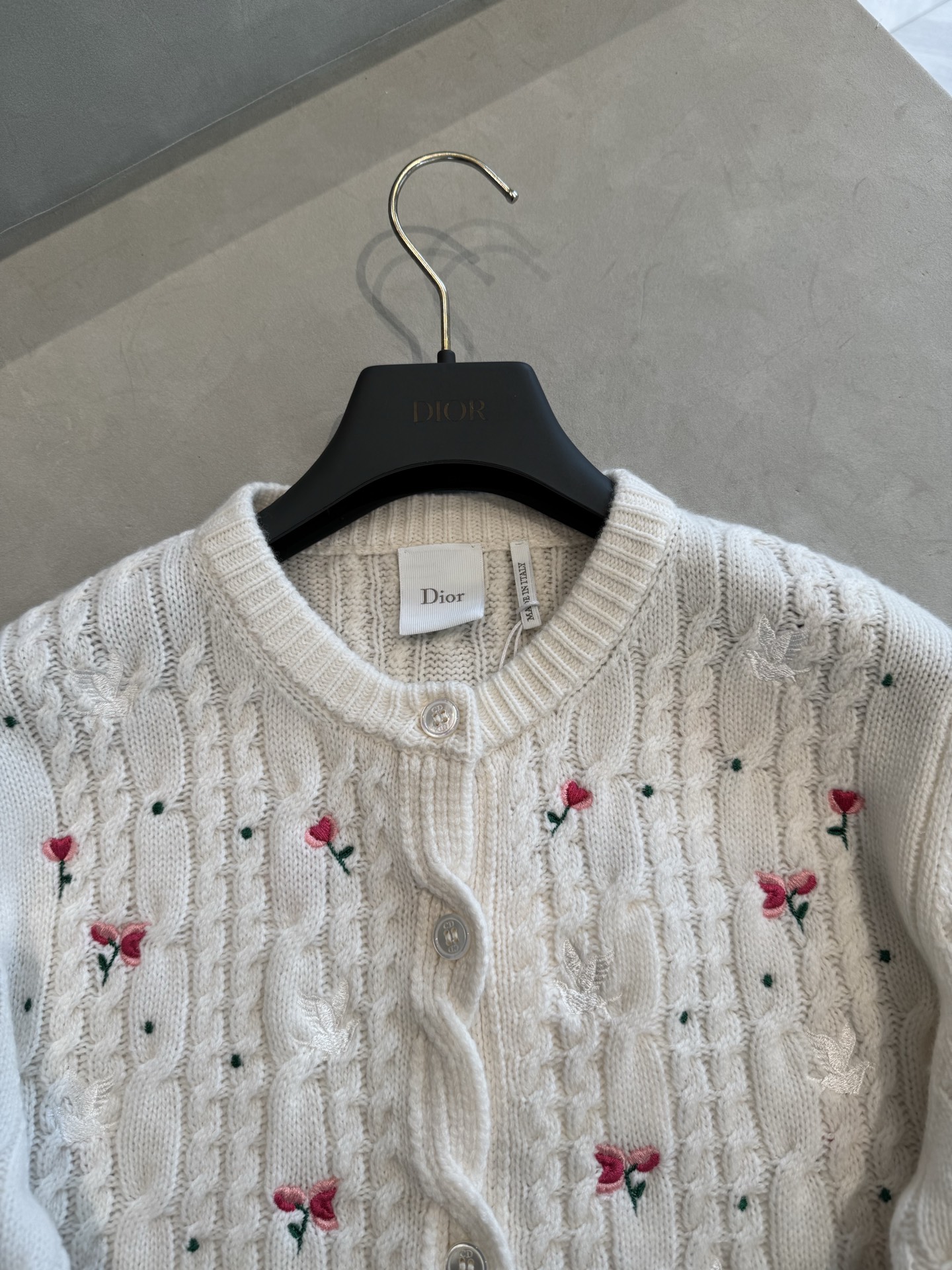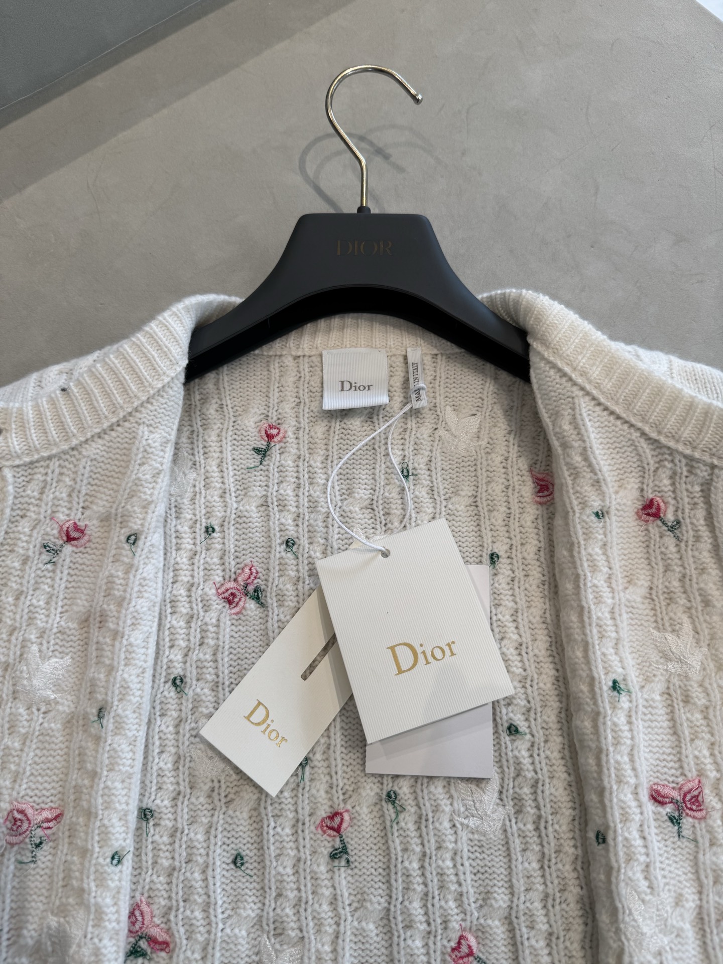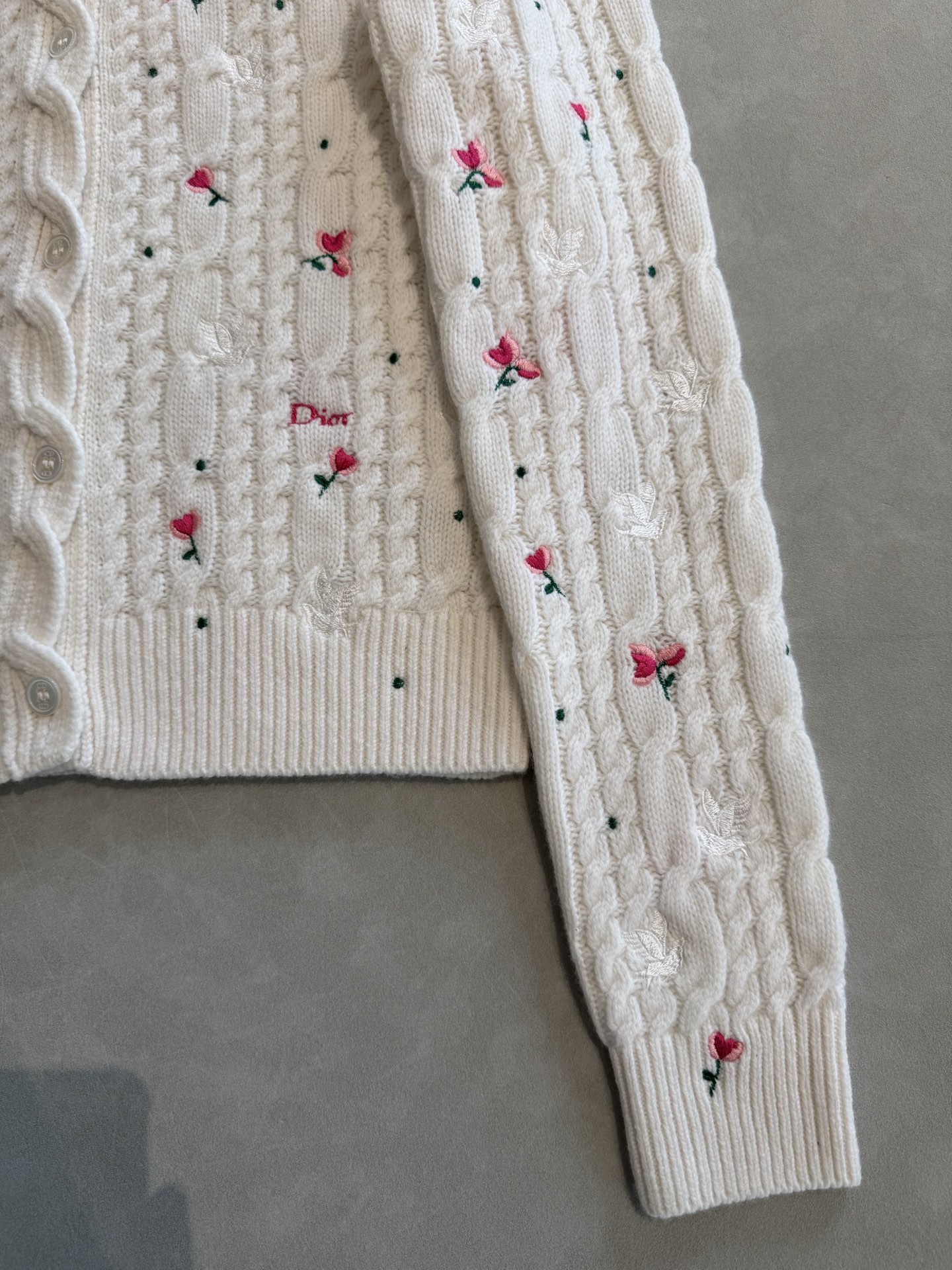 디올 아무르 자수 캐시미어 니트 가디건 도브 앤 로즈 에크루 624G09A0009
