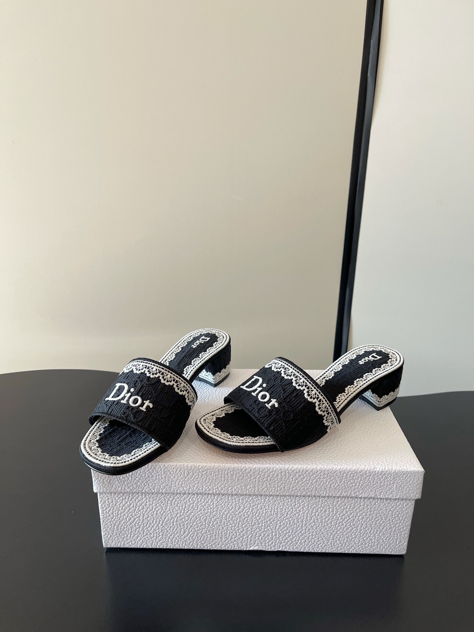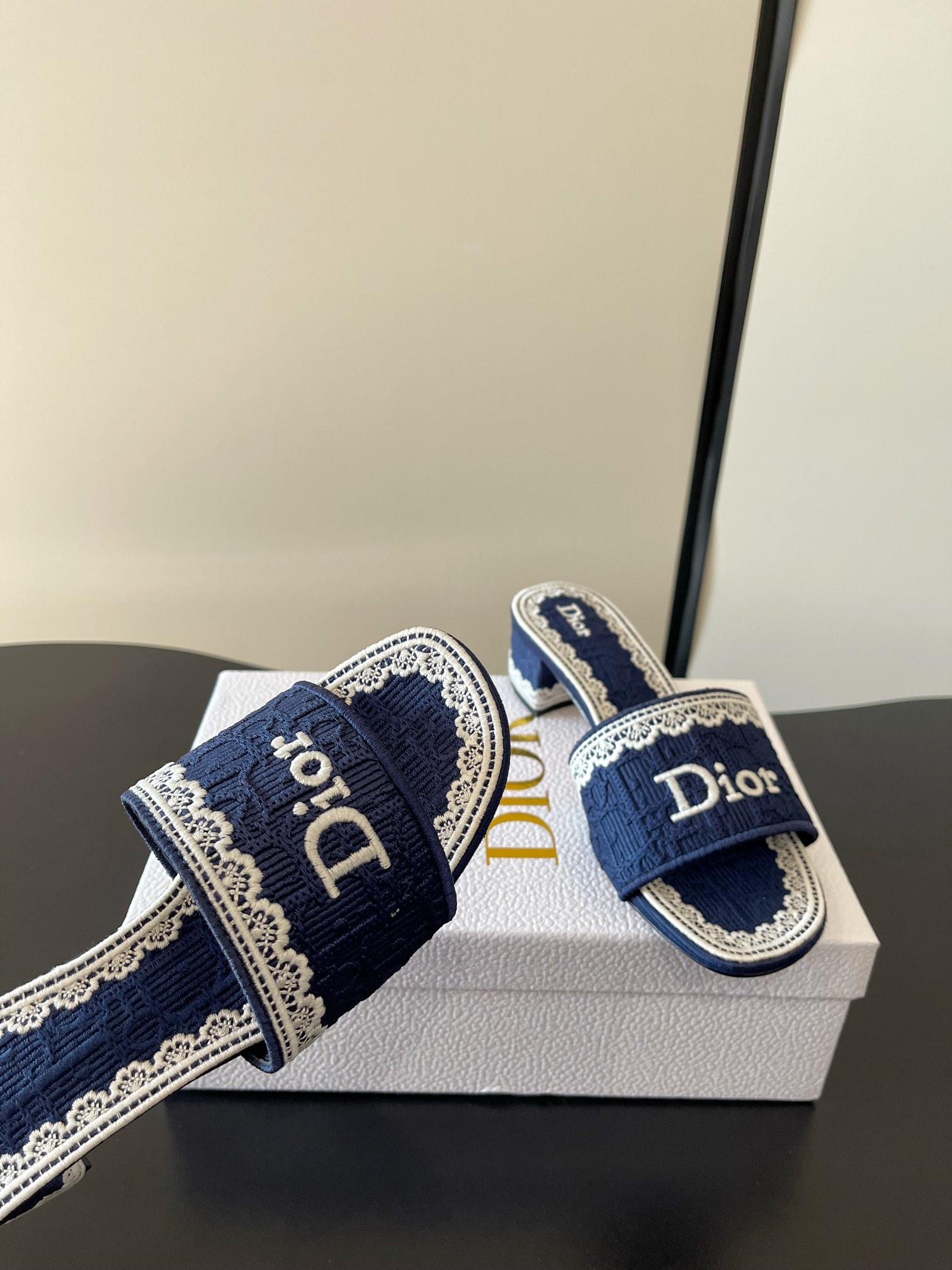 디올 오블리크 덴텔 뮬 힐 슬라이드 슬리퍼 레이스 KCO530DET
