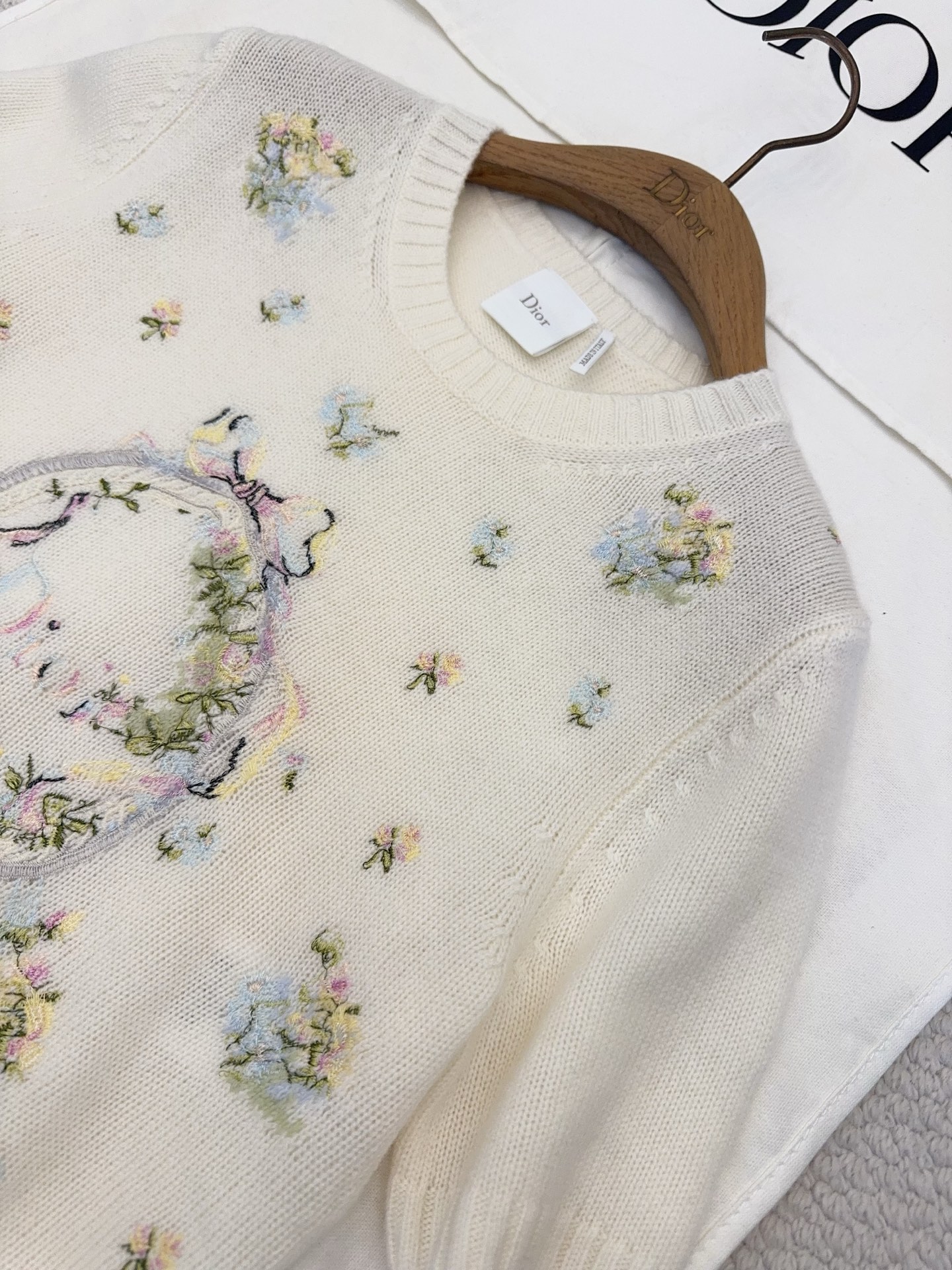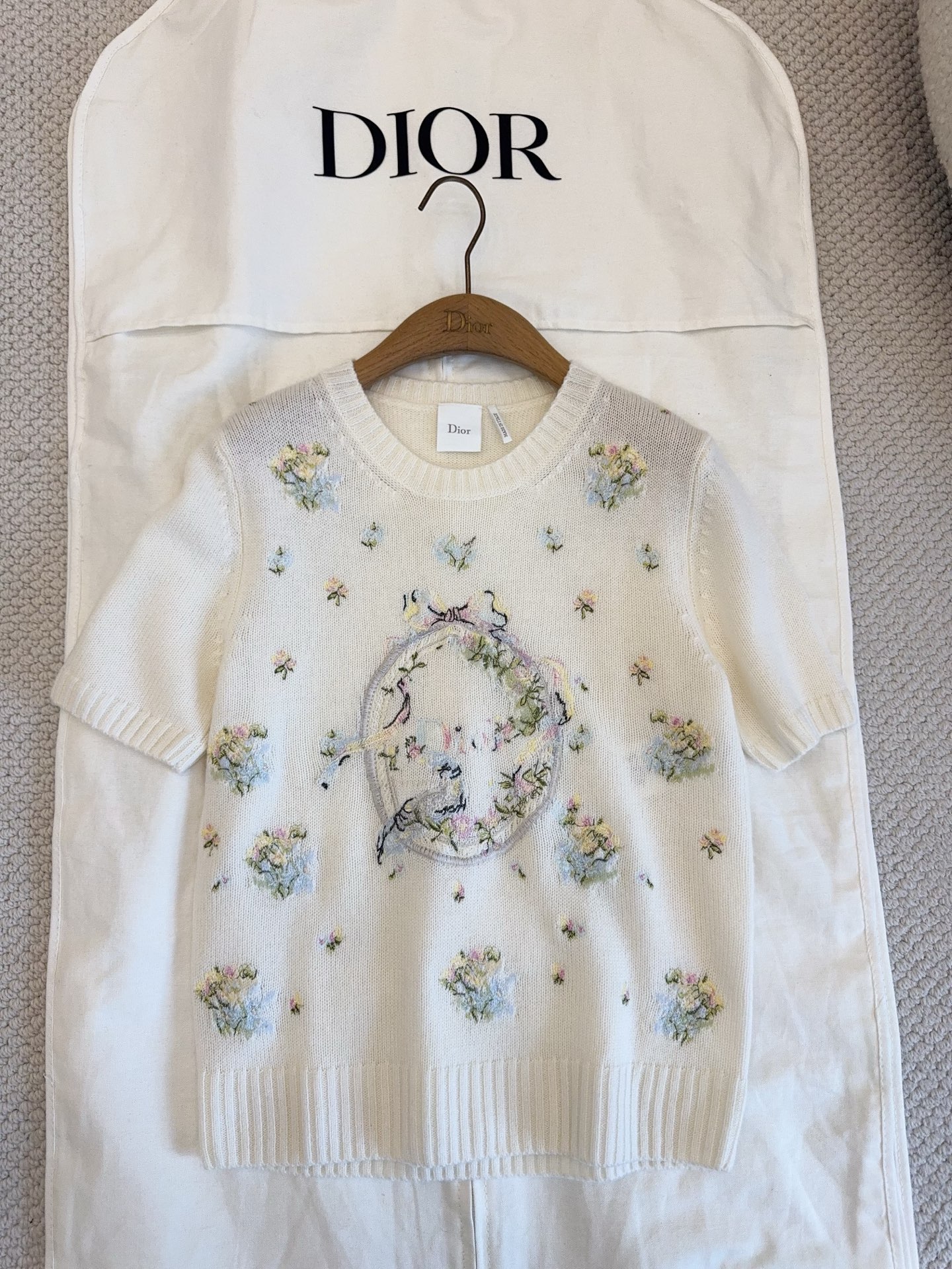 디올 자수 반팔 니트 스웨터 624S65A0E62