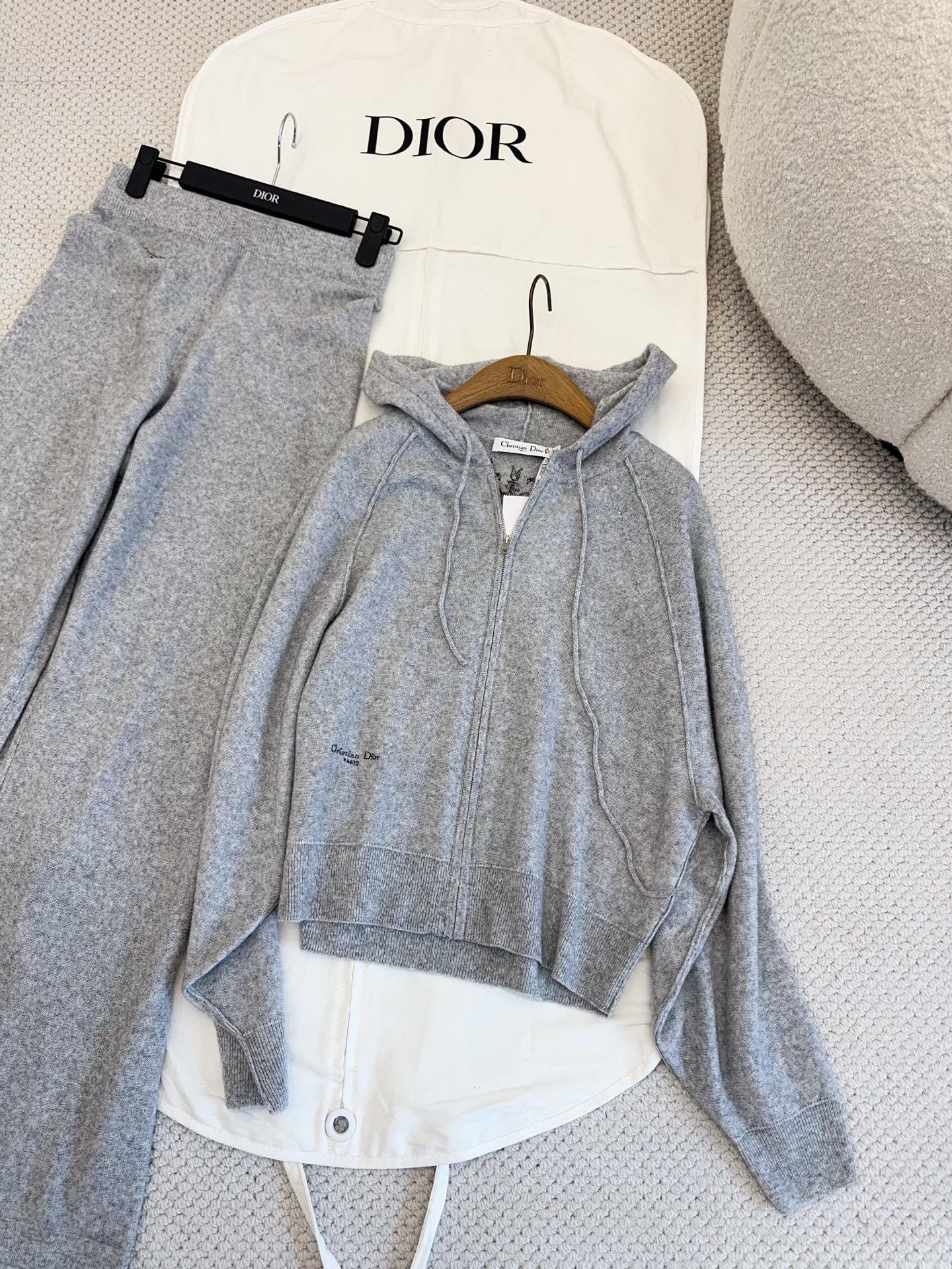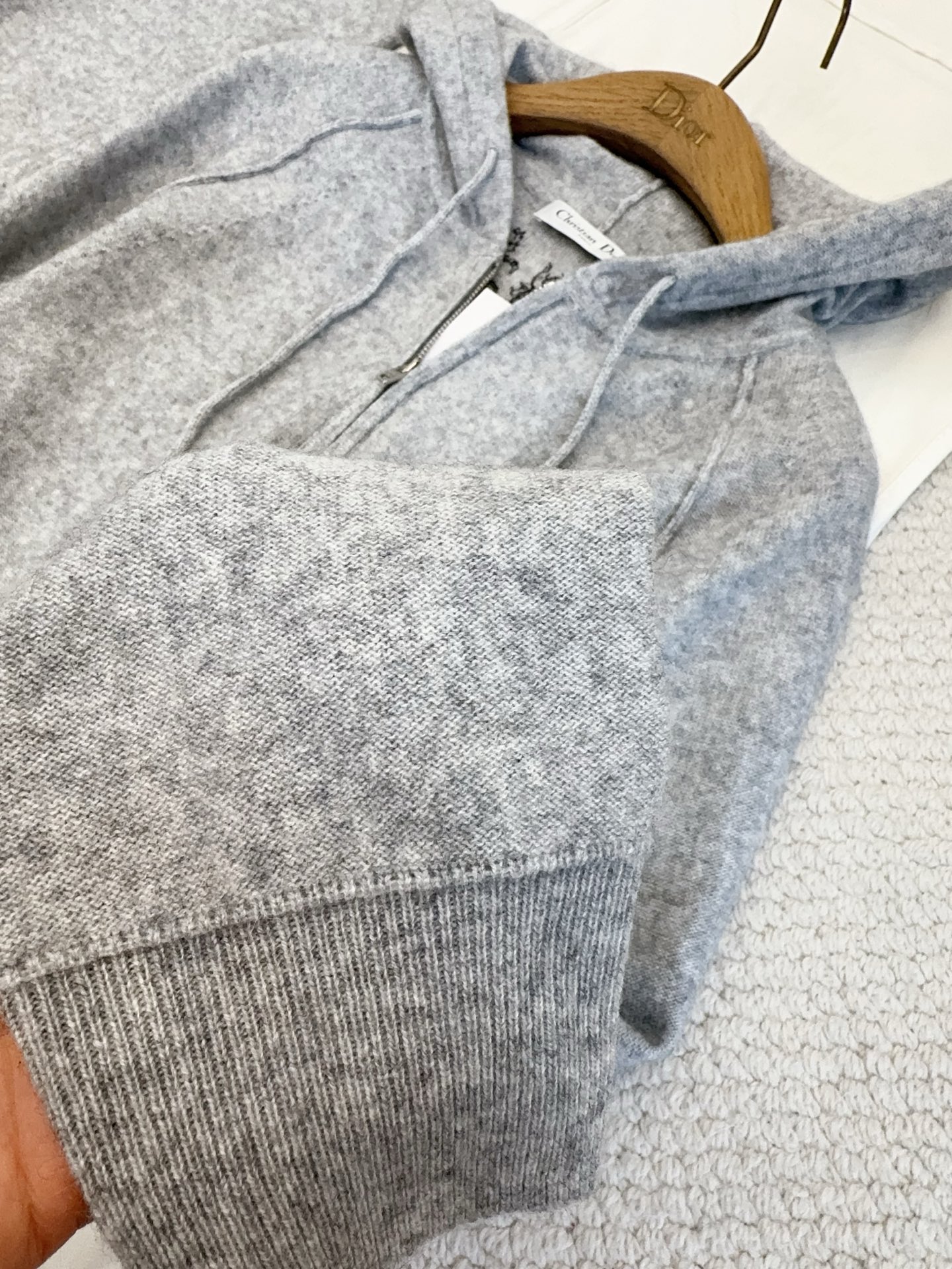 디올 캐시미어 후드 지퍼 니트 가디건 그레이 614G06B0041