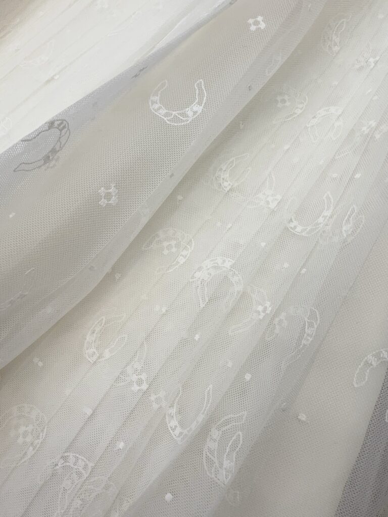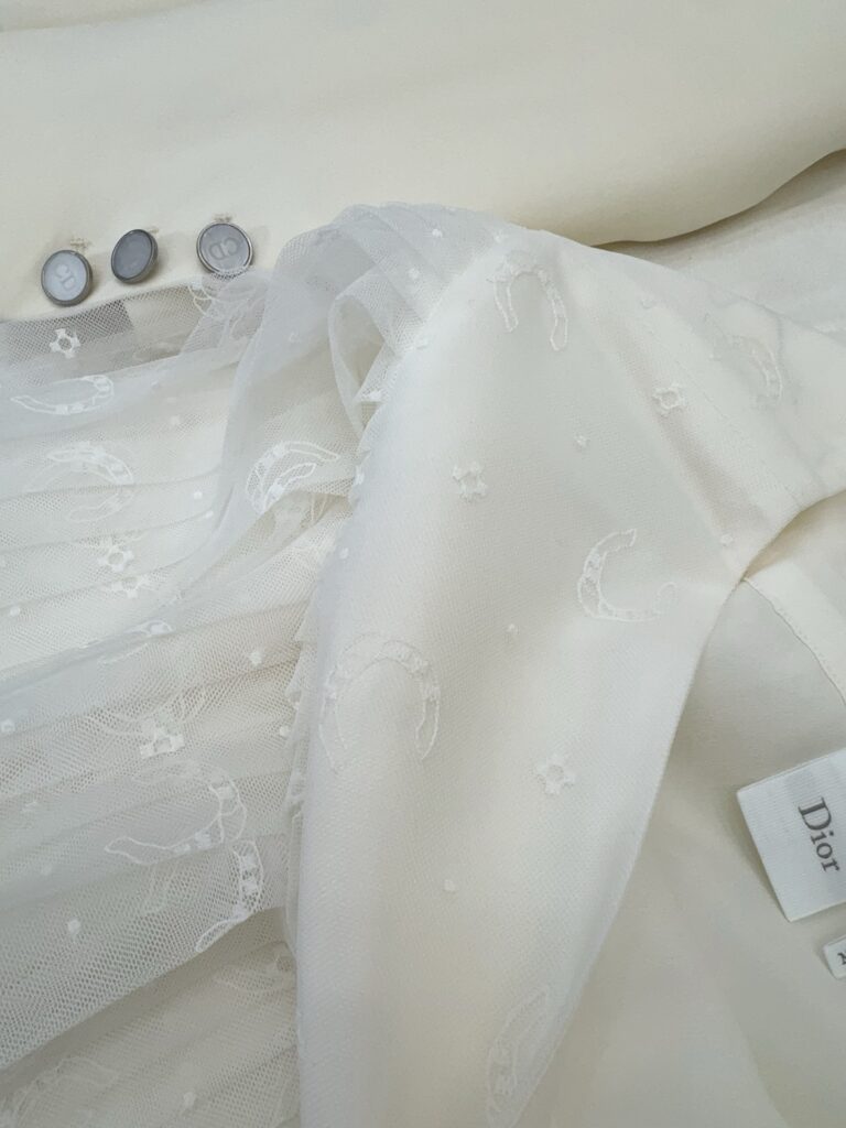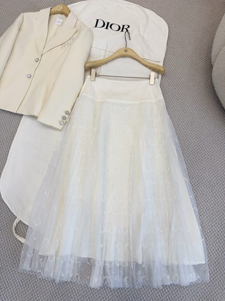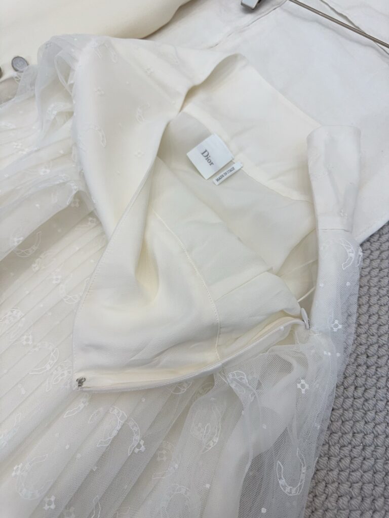 / 디올 호스슈 자수 플리츠 미디 스커트 치마 도티드 자수 튤 화이트 621J50K8A55