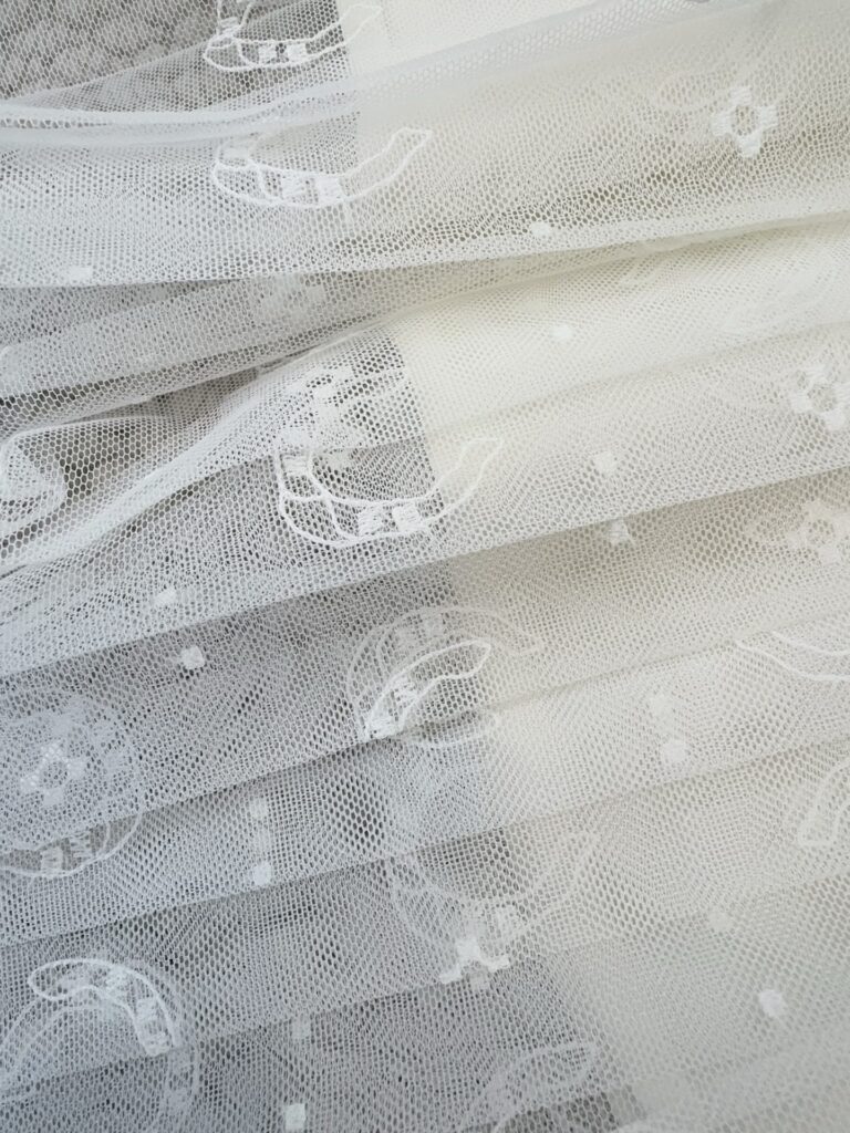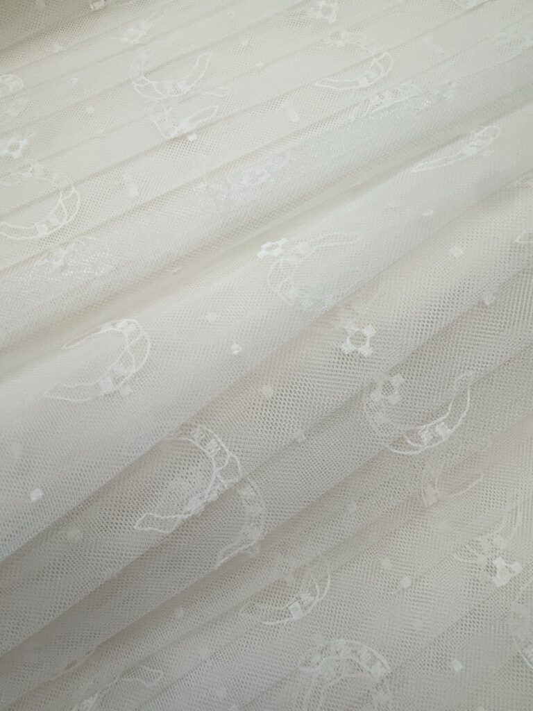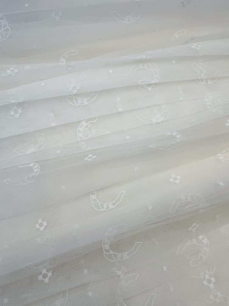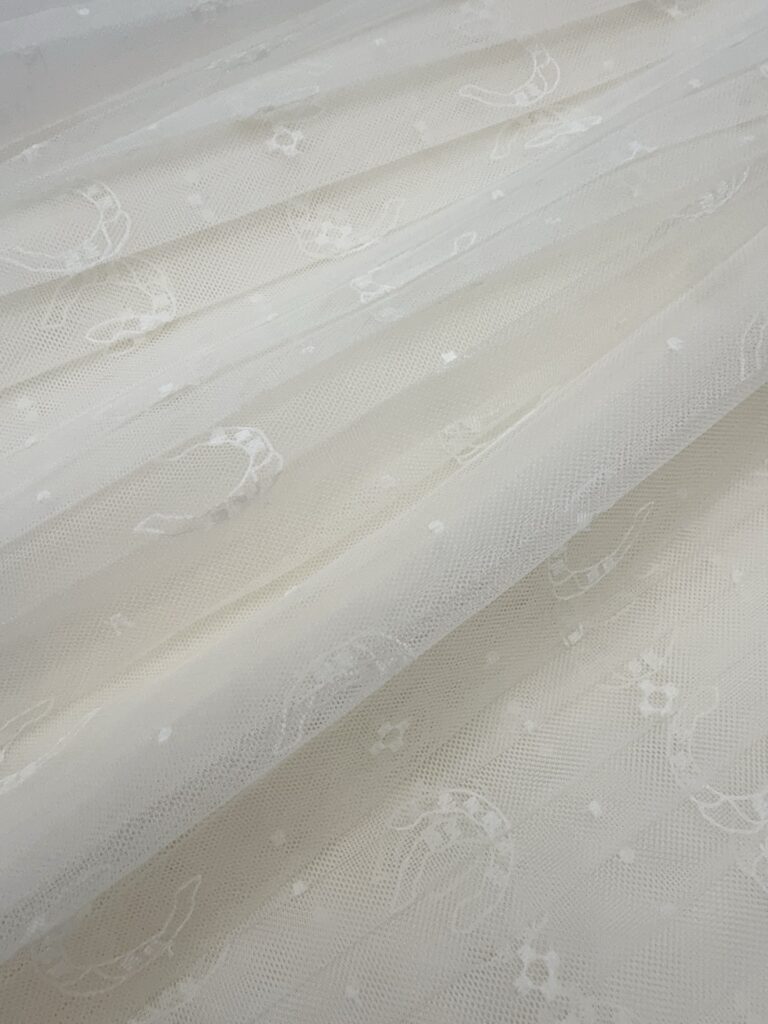 / 디올 호스슈 자수 플리츠 미디 스커트 치마 도티드 자수 튤 화이트 621J50K8A55