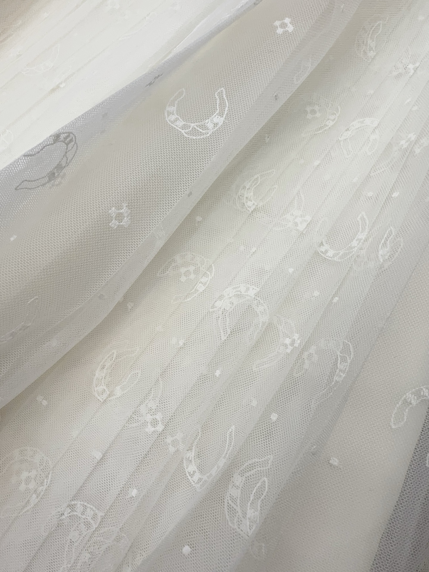 디올 호스슈 자수 플리츠 미디 스커트 치마 도티드 자수 튤 화이트 621J50K8A55