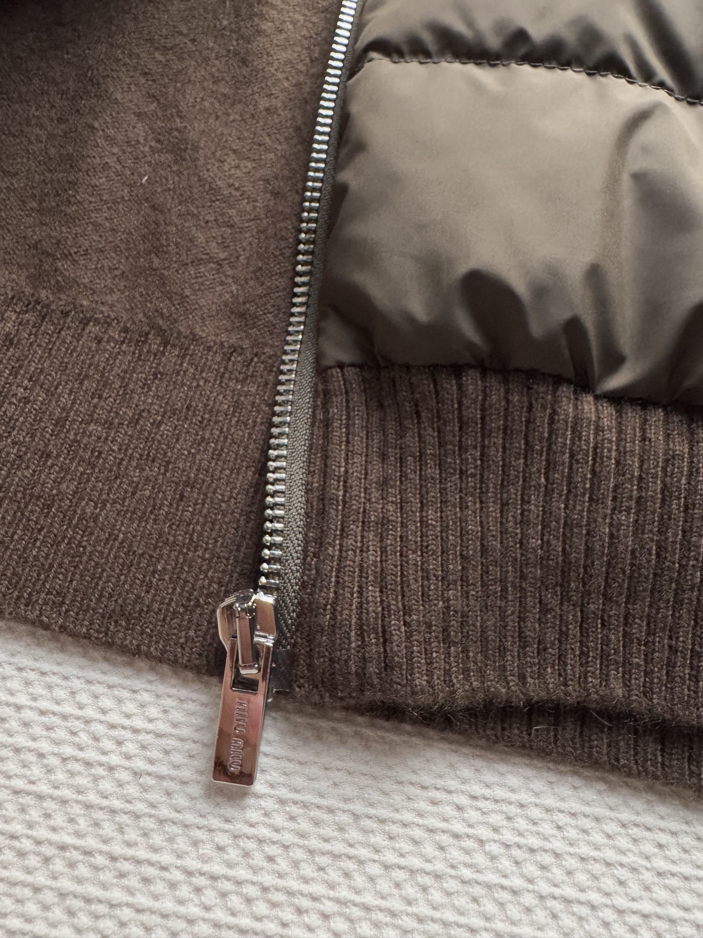 미우미우 구스 다운 캐시미어 지퍼 가디건 MMF00W