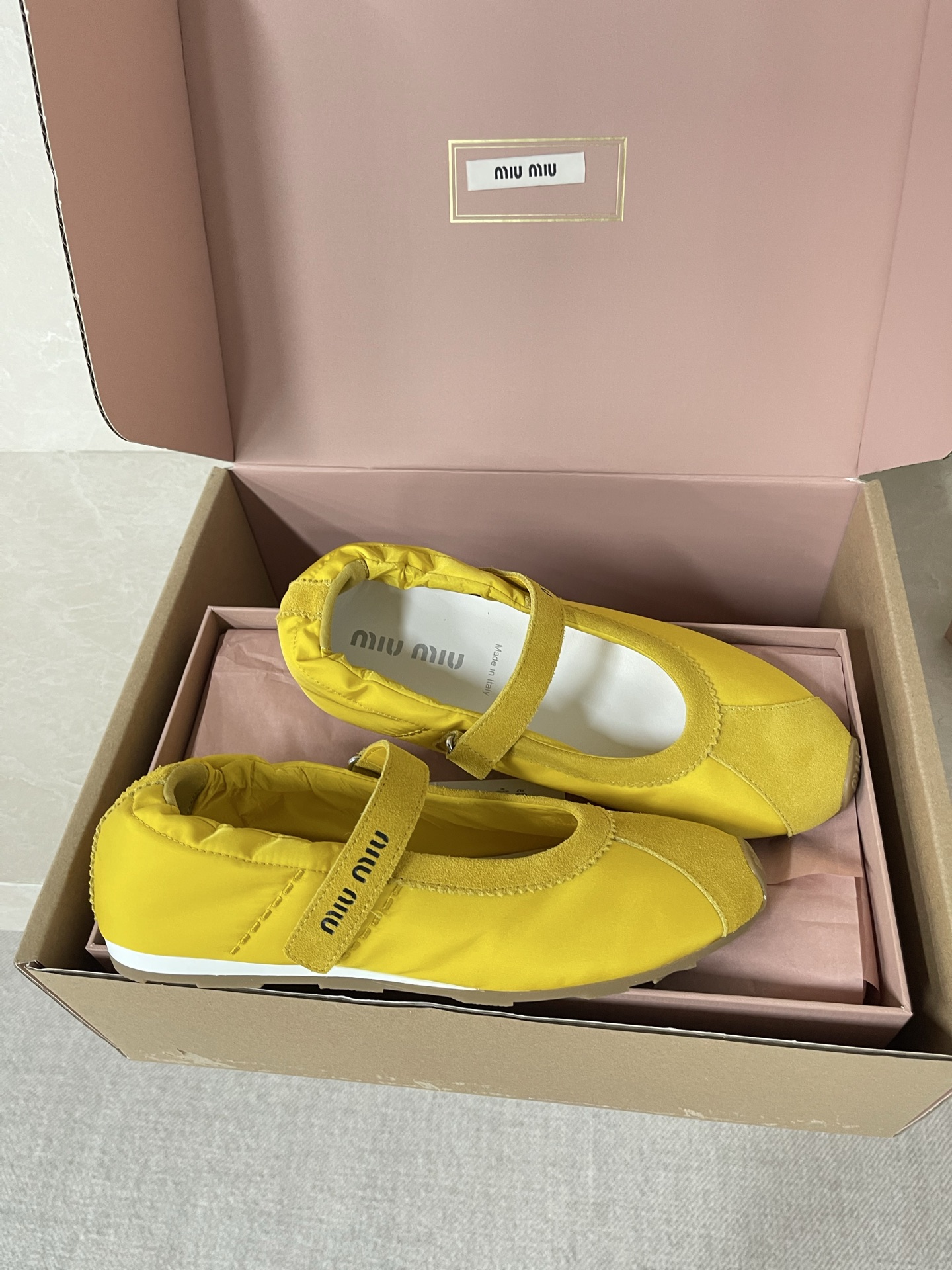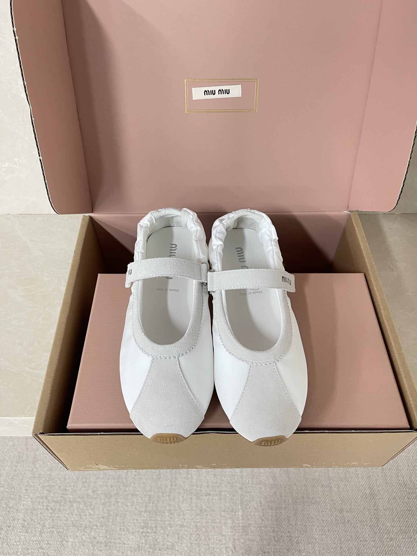 미우미우 기능성 소재 및 스웨이드 플룸 발레리나 플랫슈즈 5F370E 수량