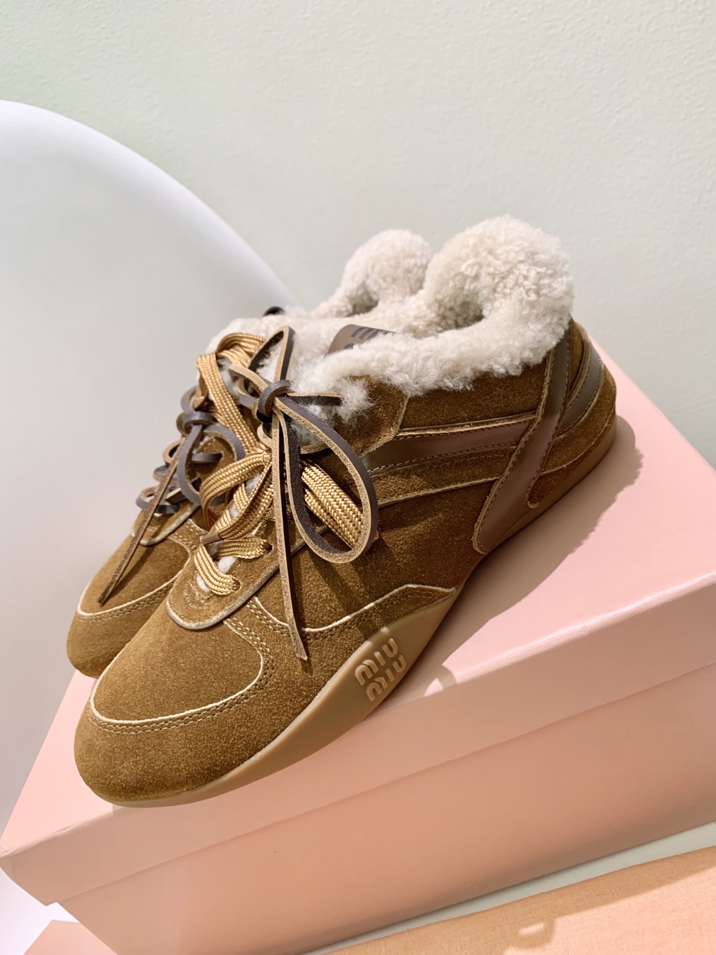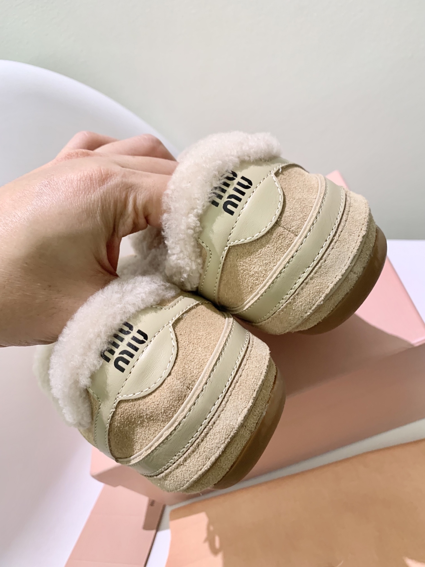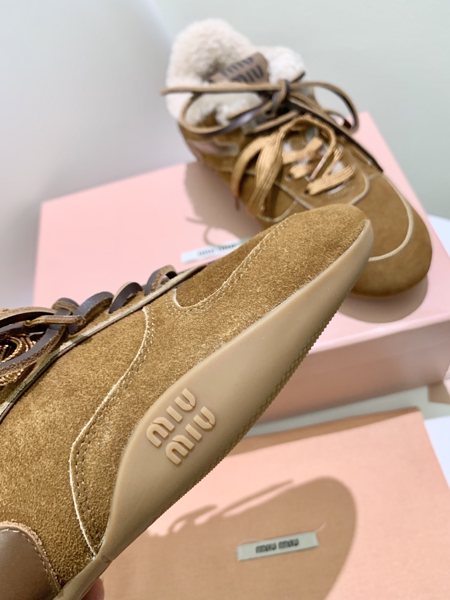 미우미우 김나지움 스웨이드 시어링 스니커즈 5E428E
