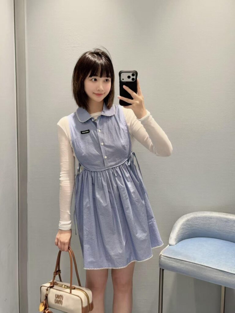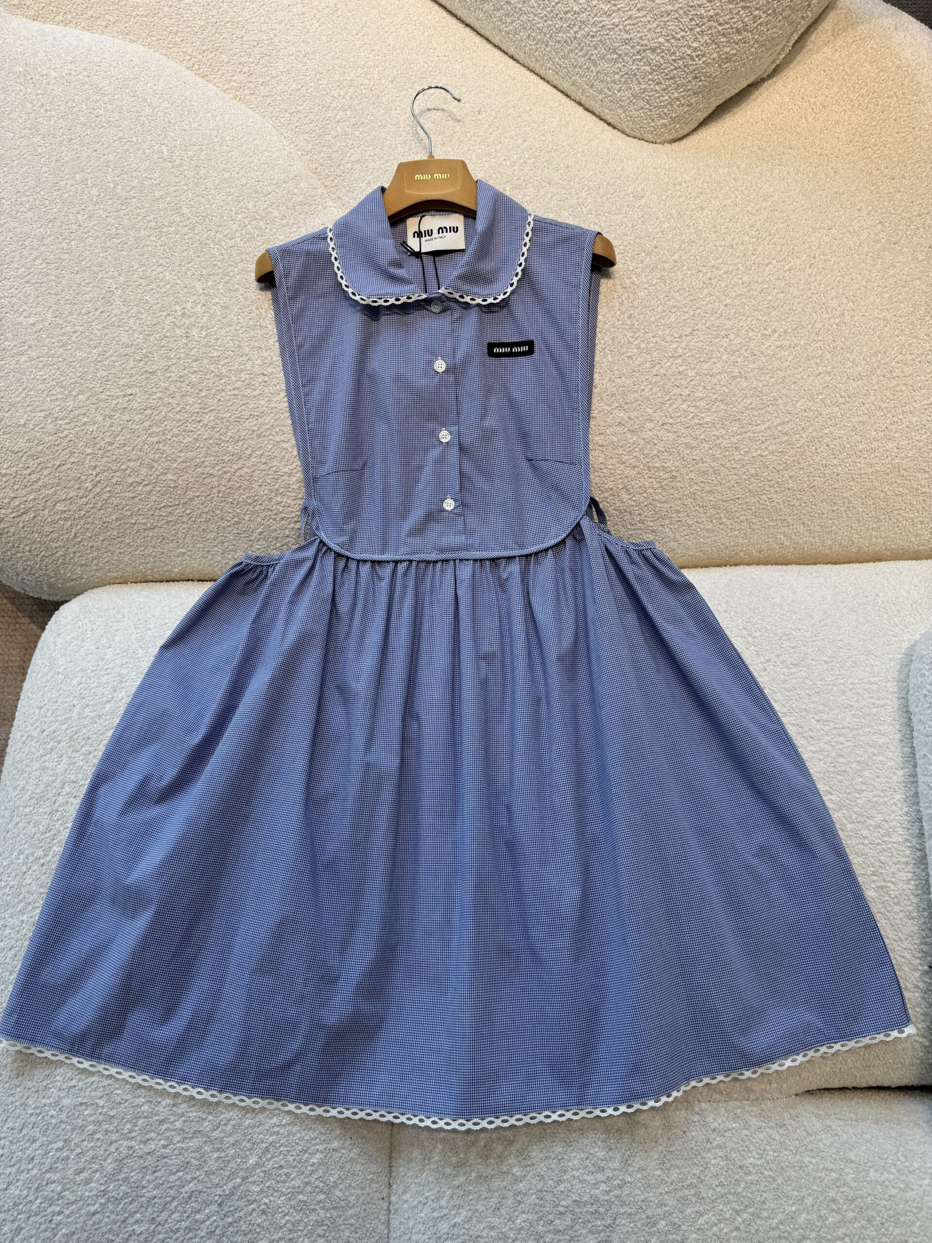 미우미우 깅엄 체크 민소매 미니 원피스 MF6203