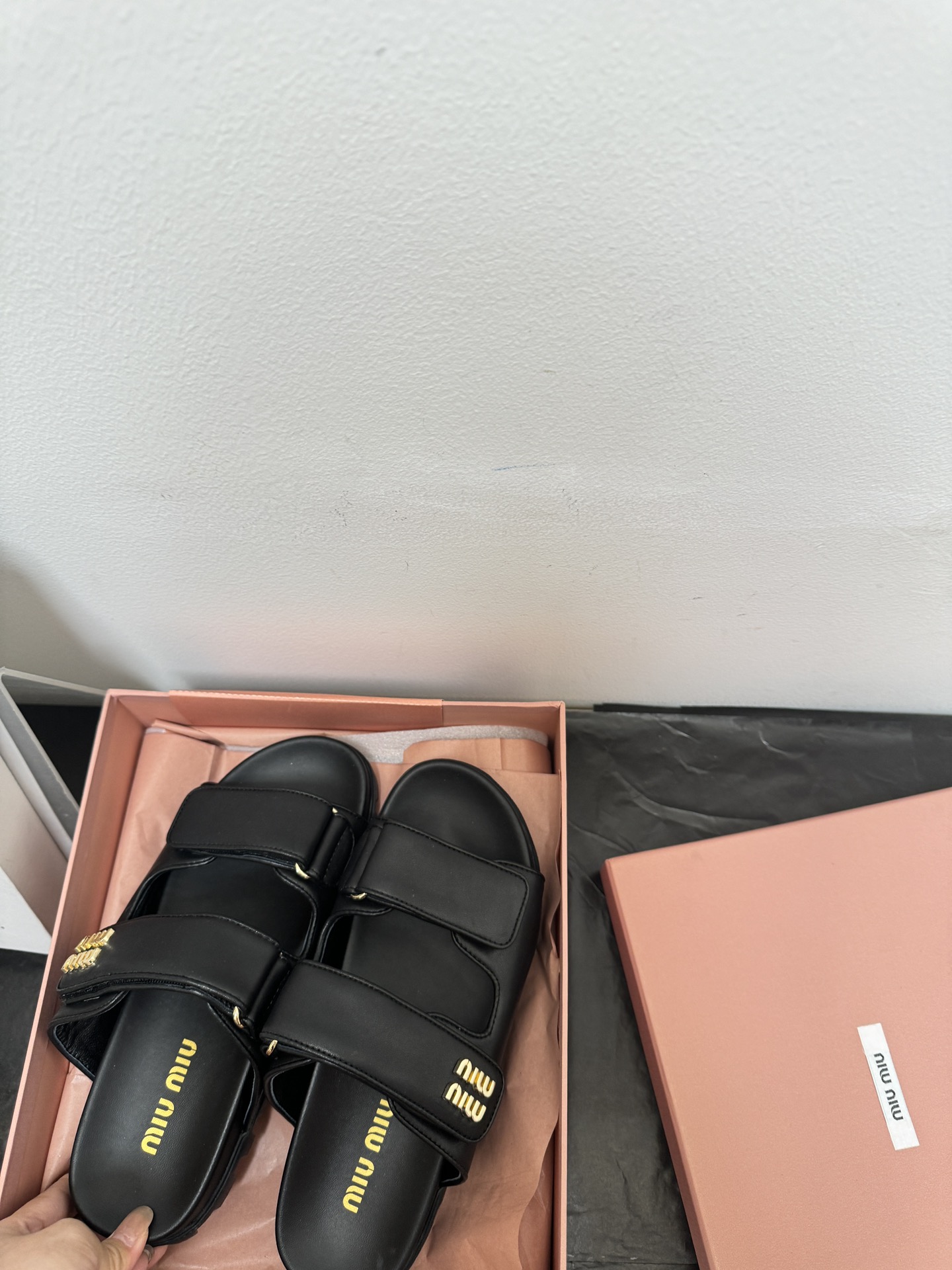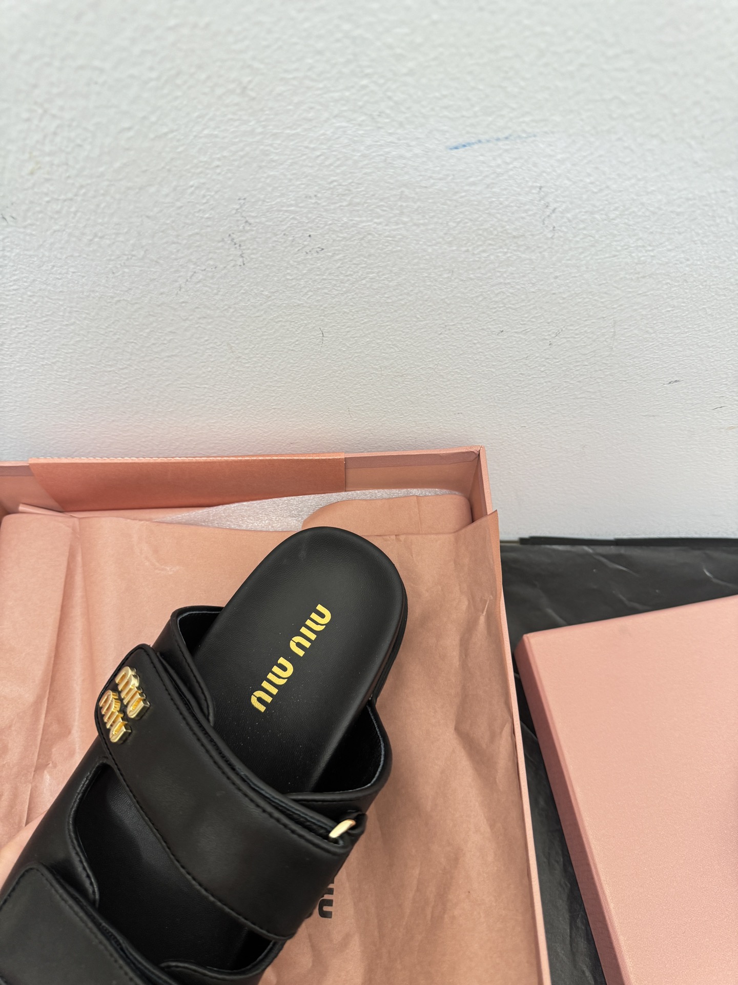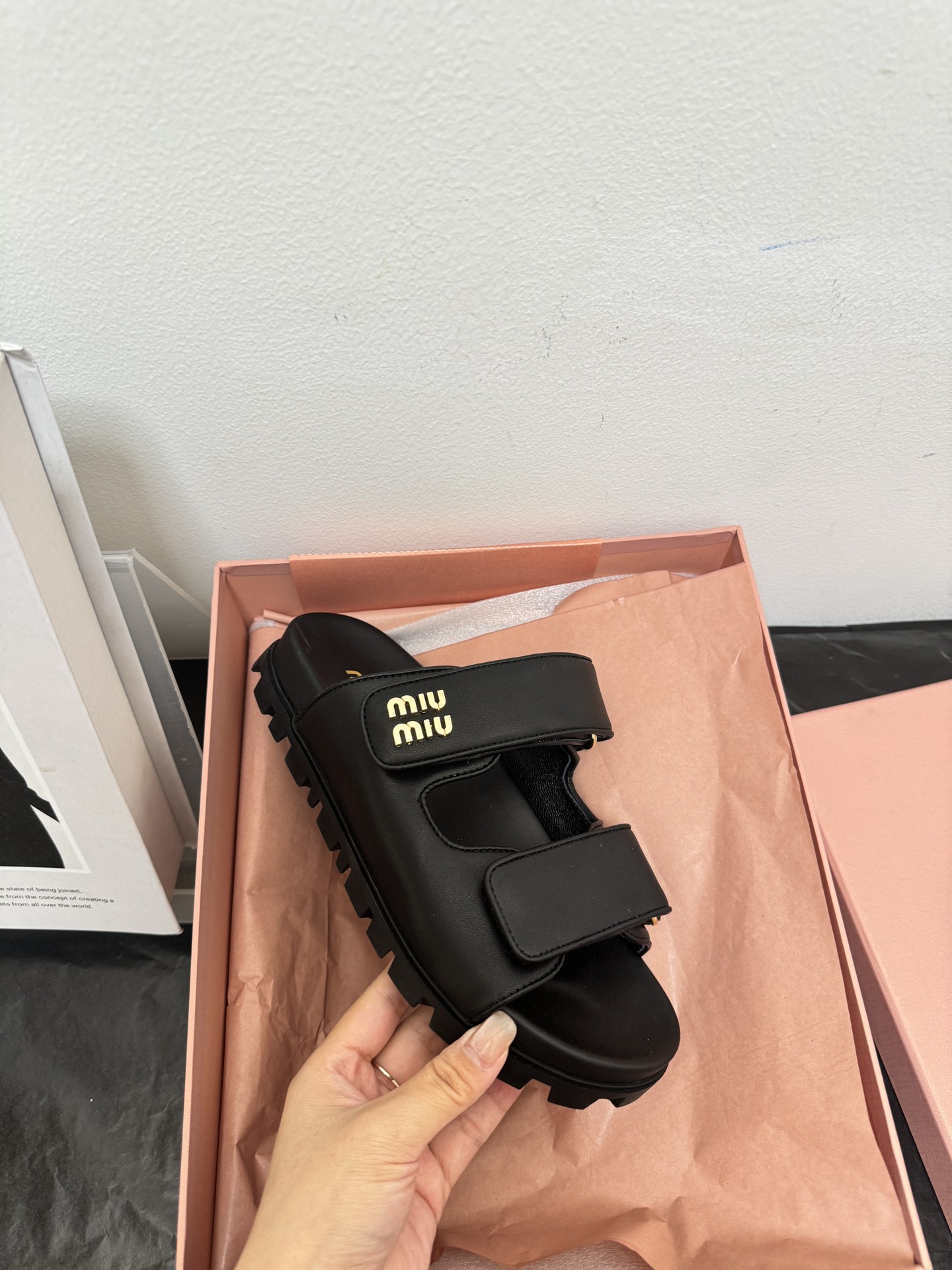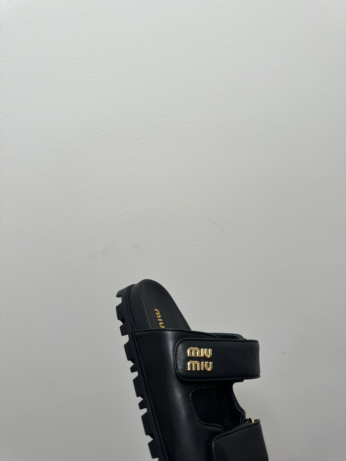 / 미우미우 나파가죽 벨크로 슬리퍼