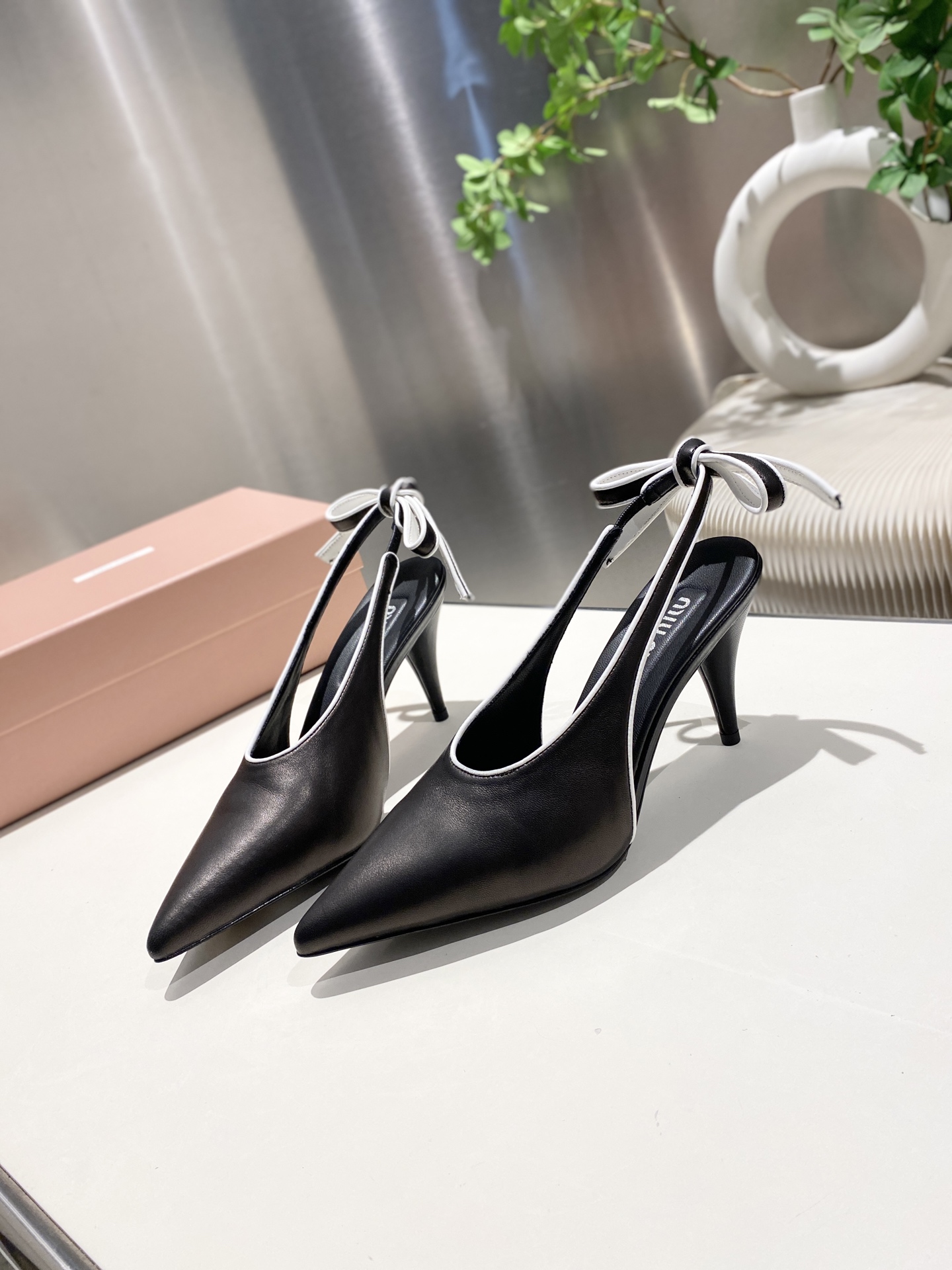 미우미우 나파 가죽 슬링백 펌프스 5I430E