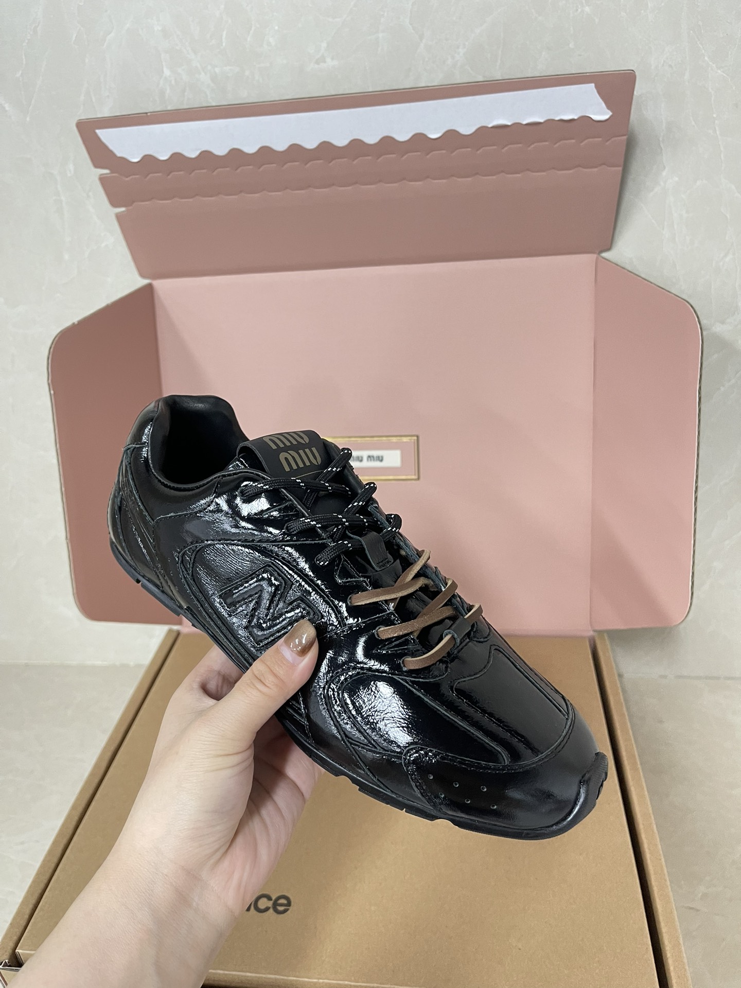 / 미우미우 뉴발란스 X 미우미우 530 SL 페이턴트 가죽 스니커즈 5E165E