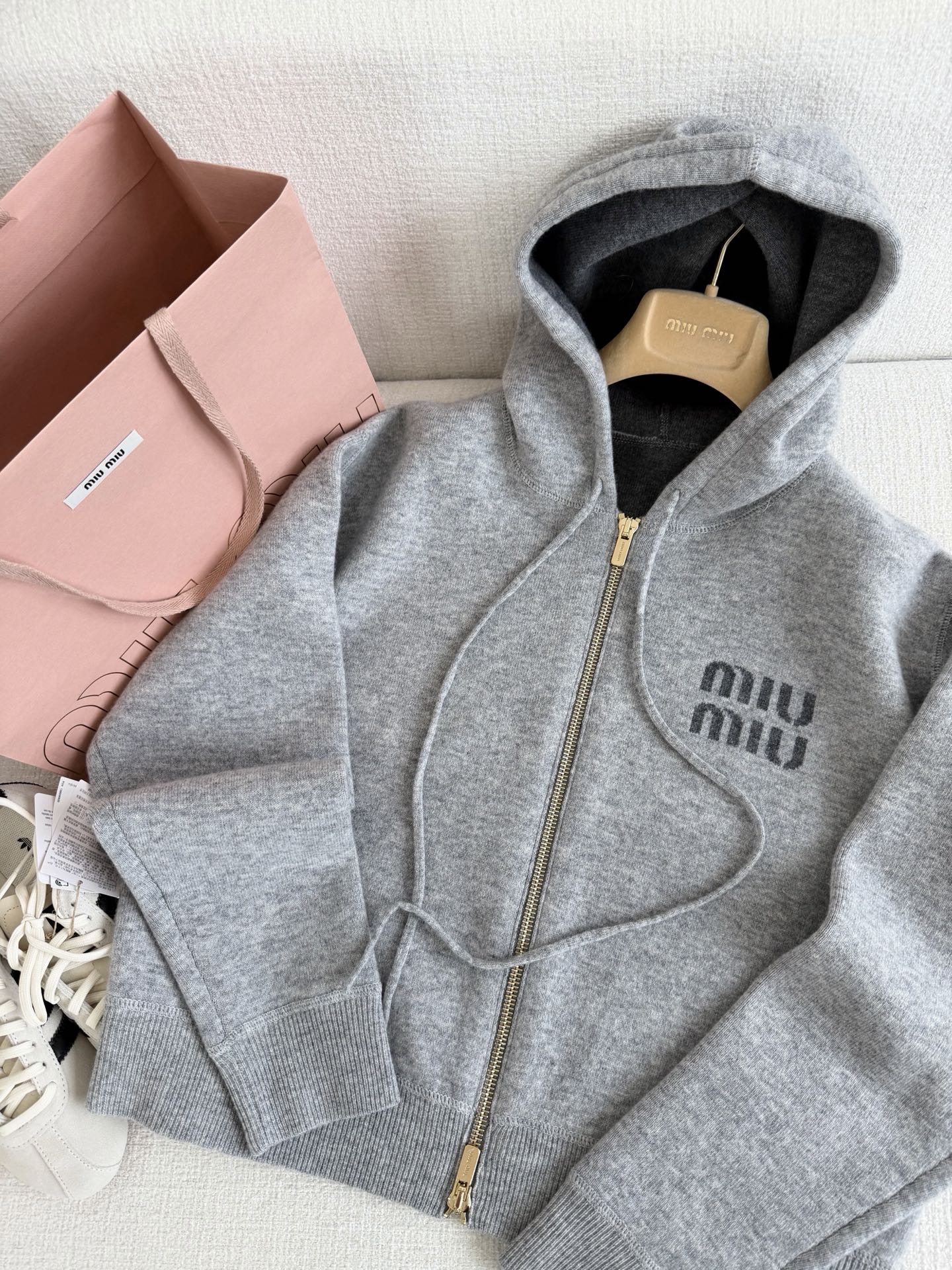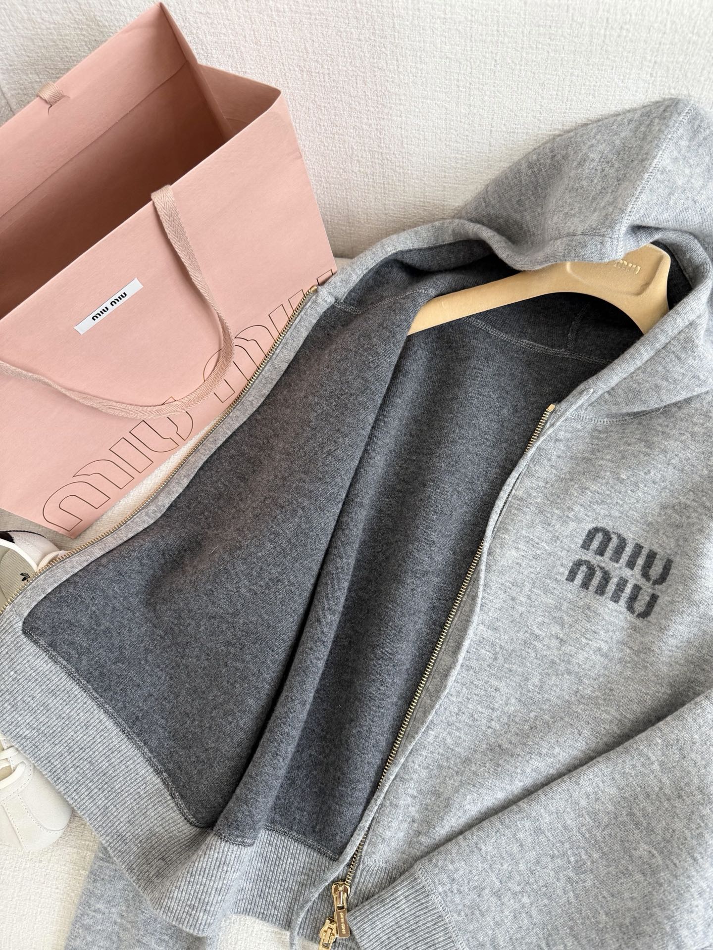 미우미우 더블 니트 캐시미어 집업 후디 가디건 MMF901