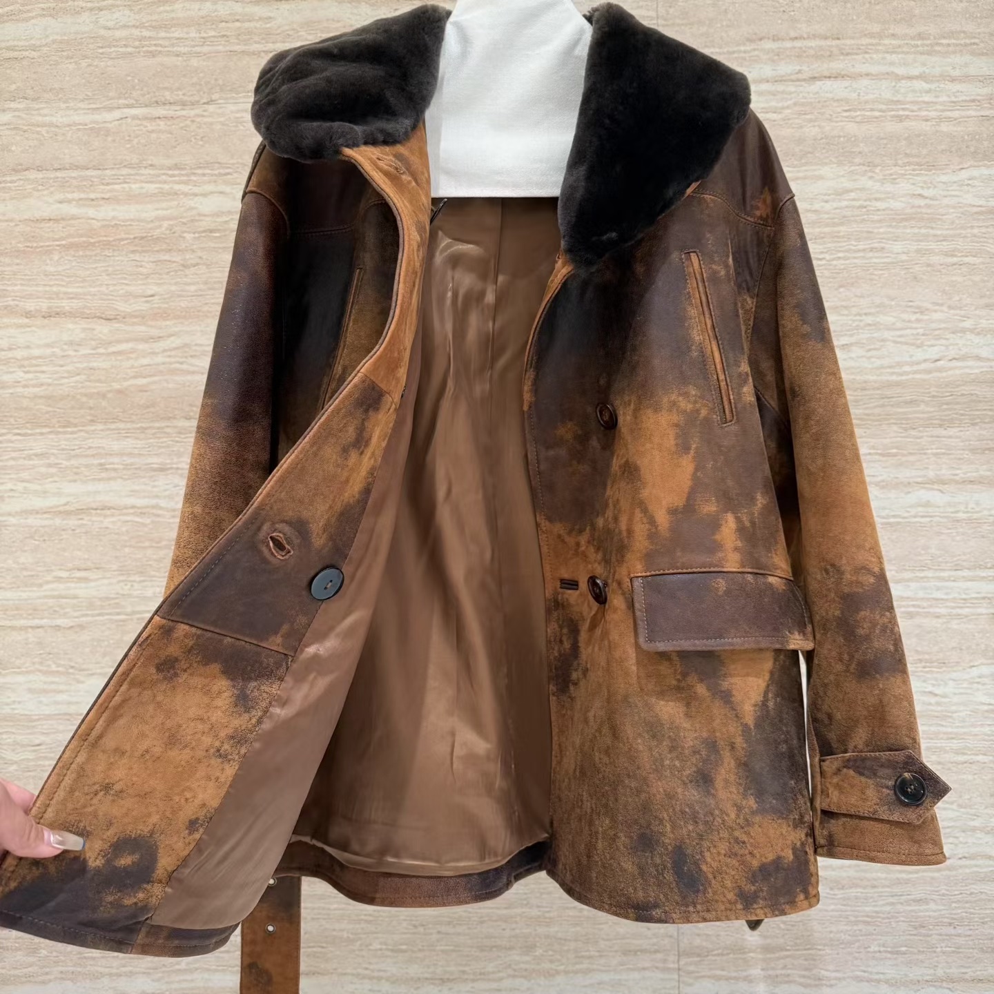 미우미우 더블 버튼 왁스 스웨이드 자켓 MPS760