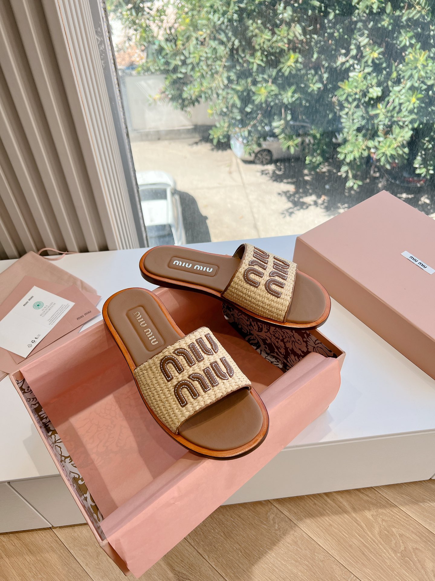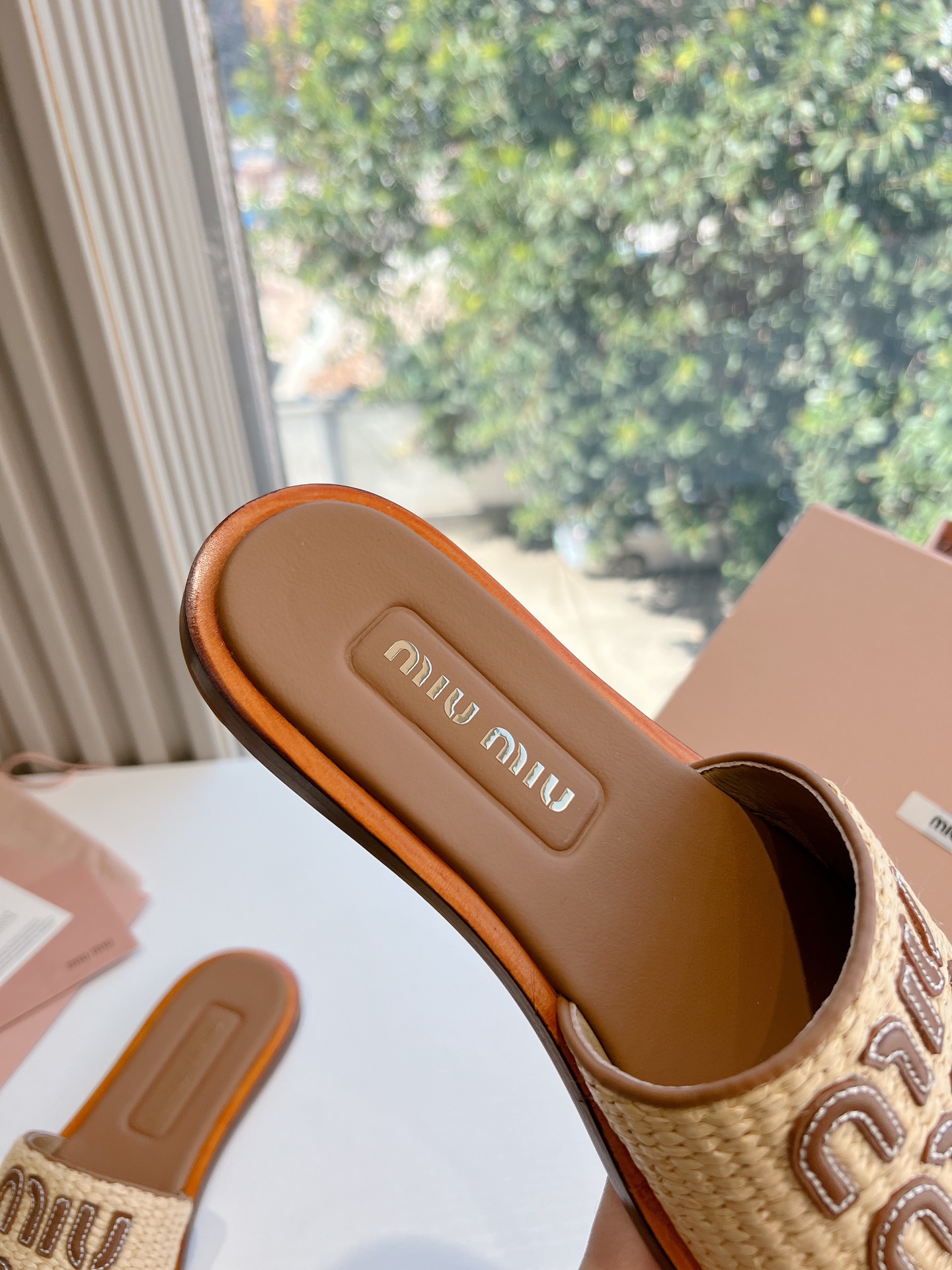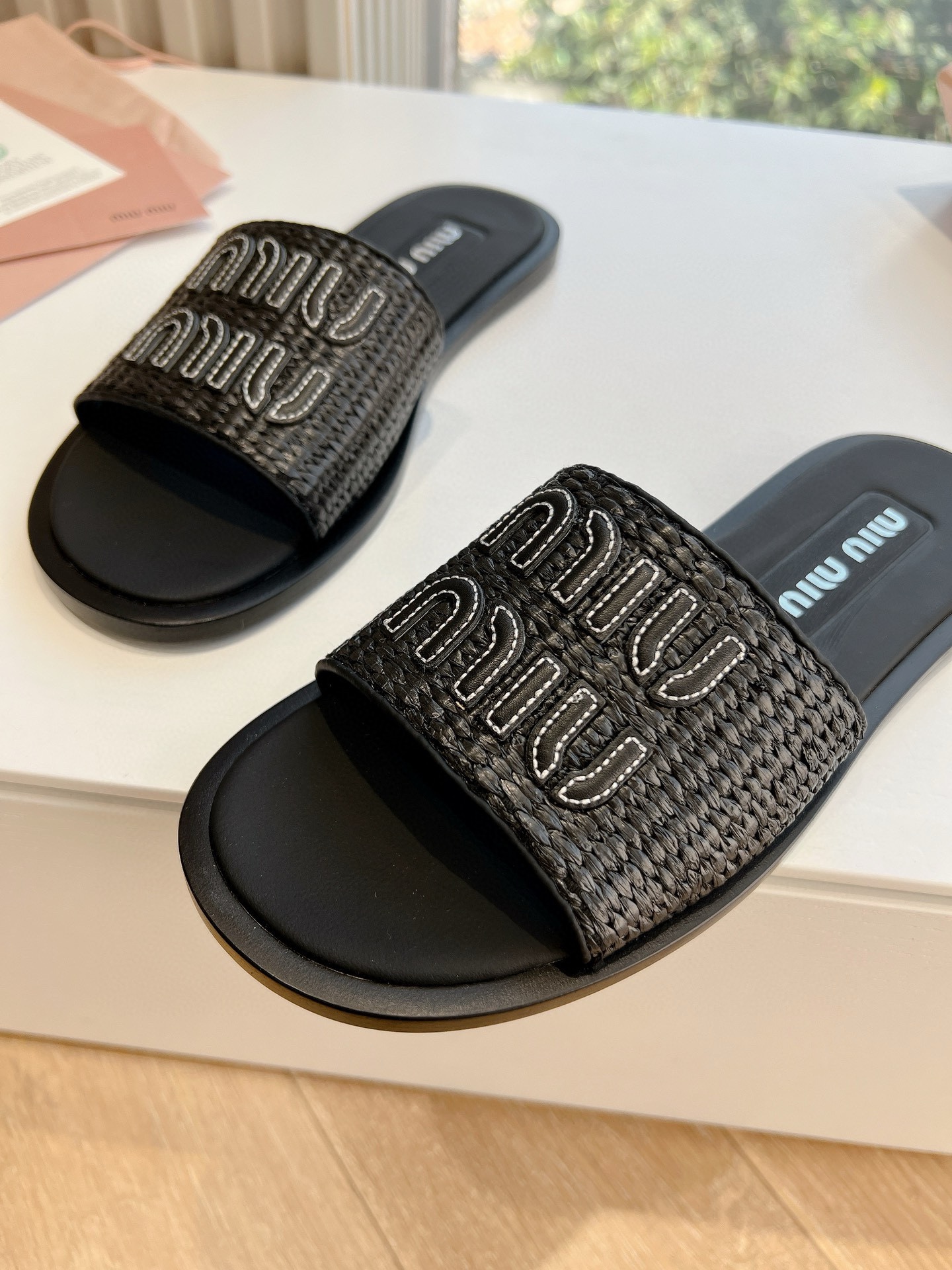 미우미우 라피아 효과 우븐 패브릭 슬리퍼 5XX644