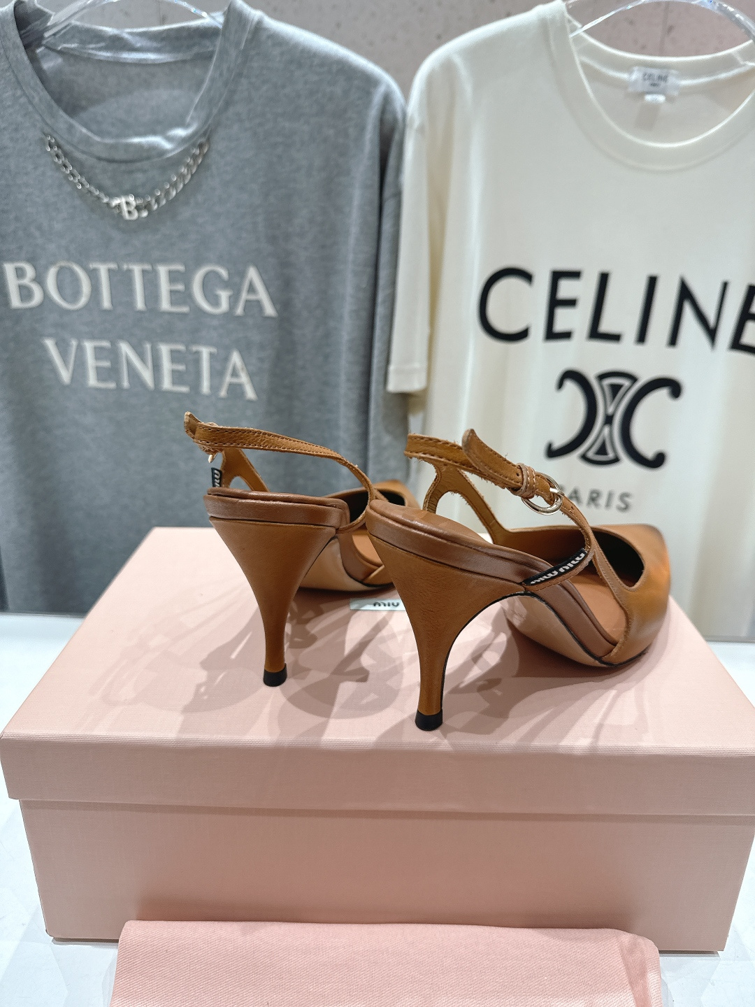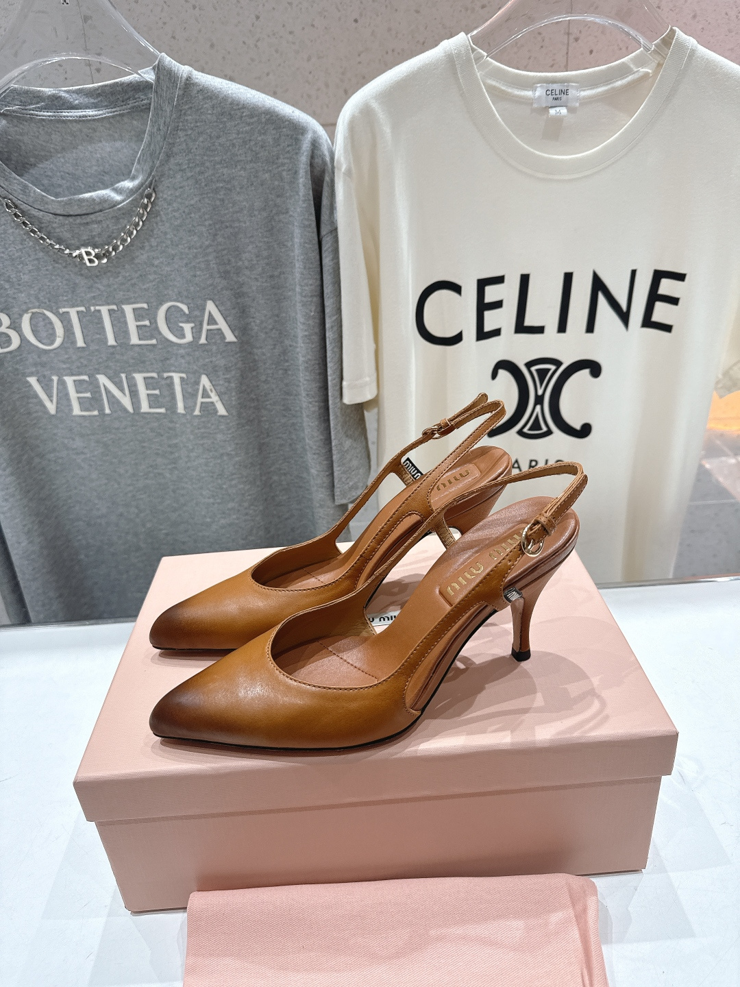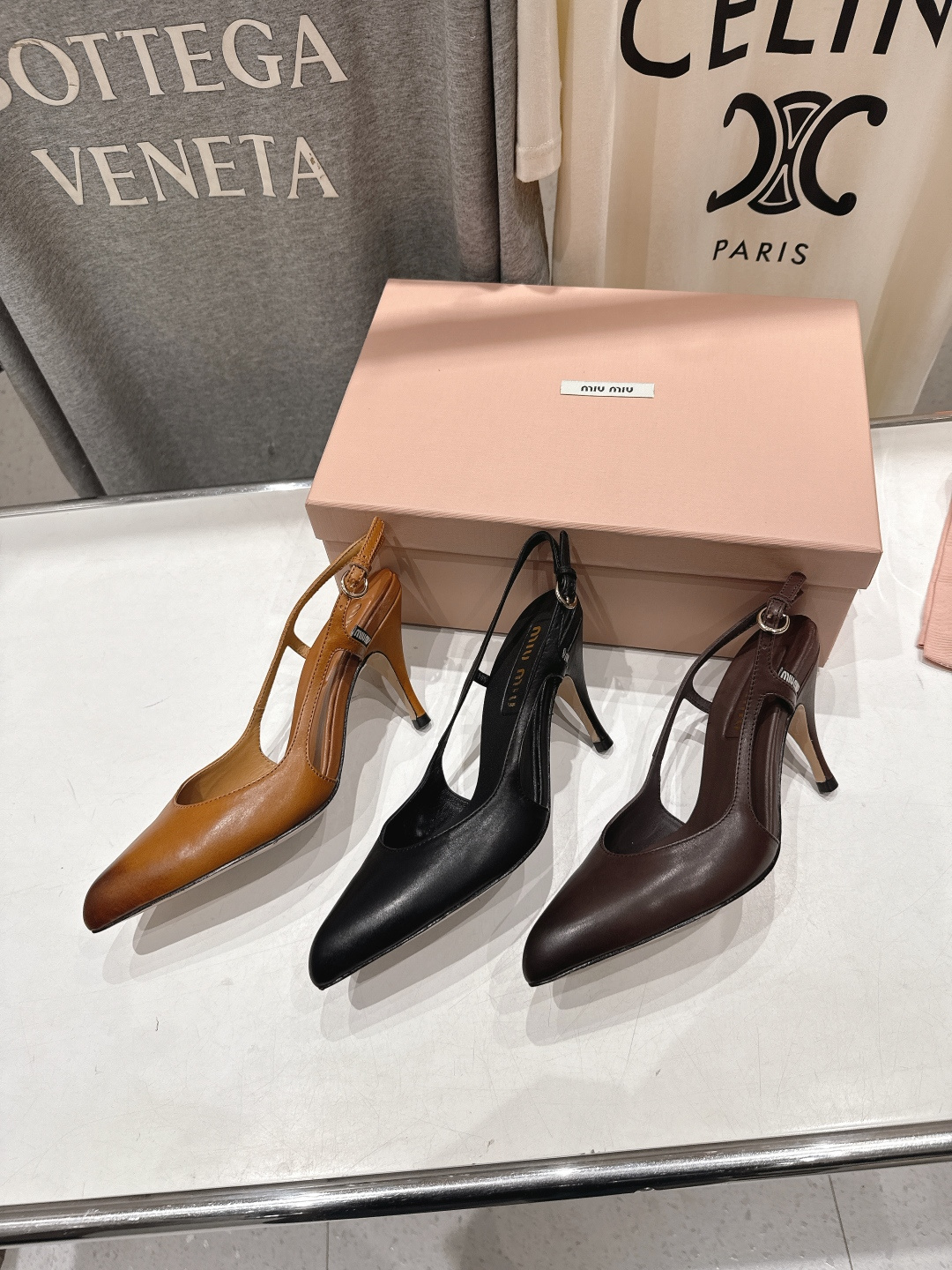 미우미우 레더 슬링백 펌프스 5I555E