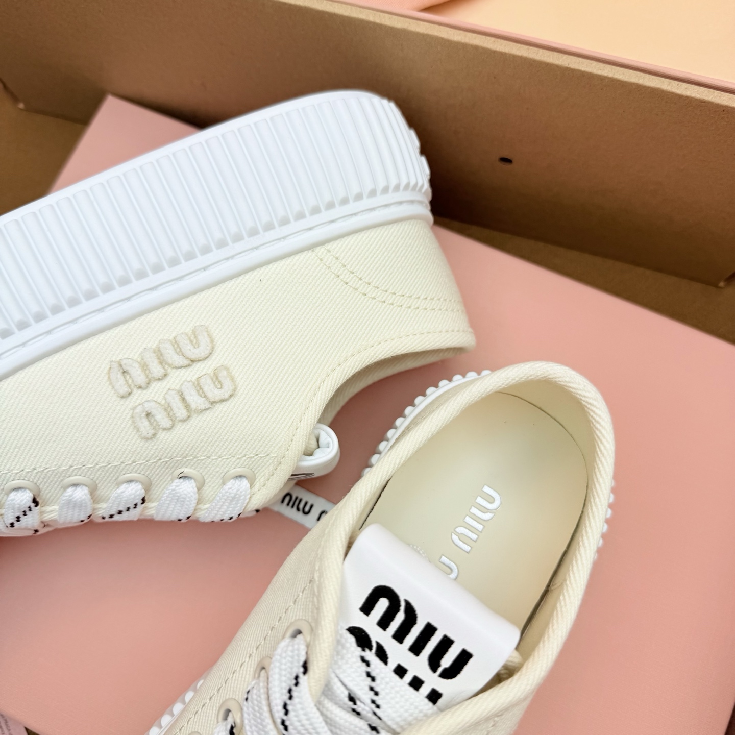 미우미우 로고 장식 데님 스니커즈 5E389E 수량