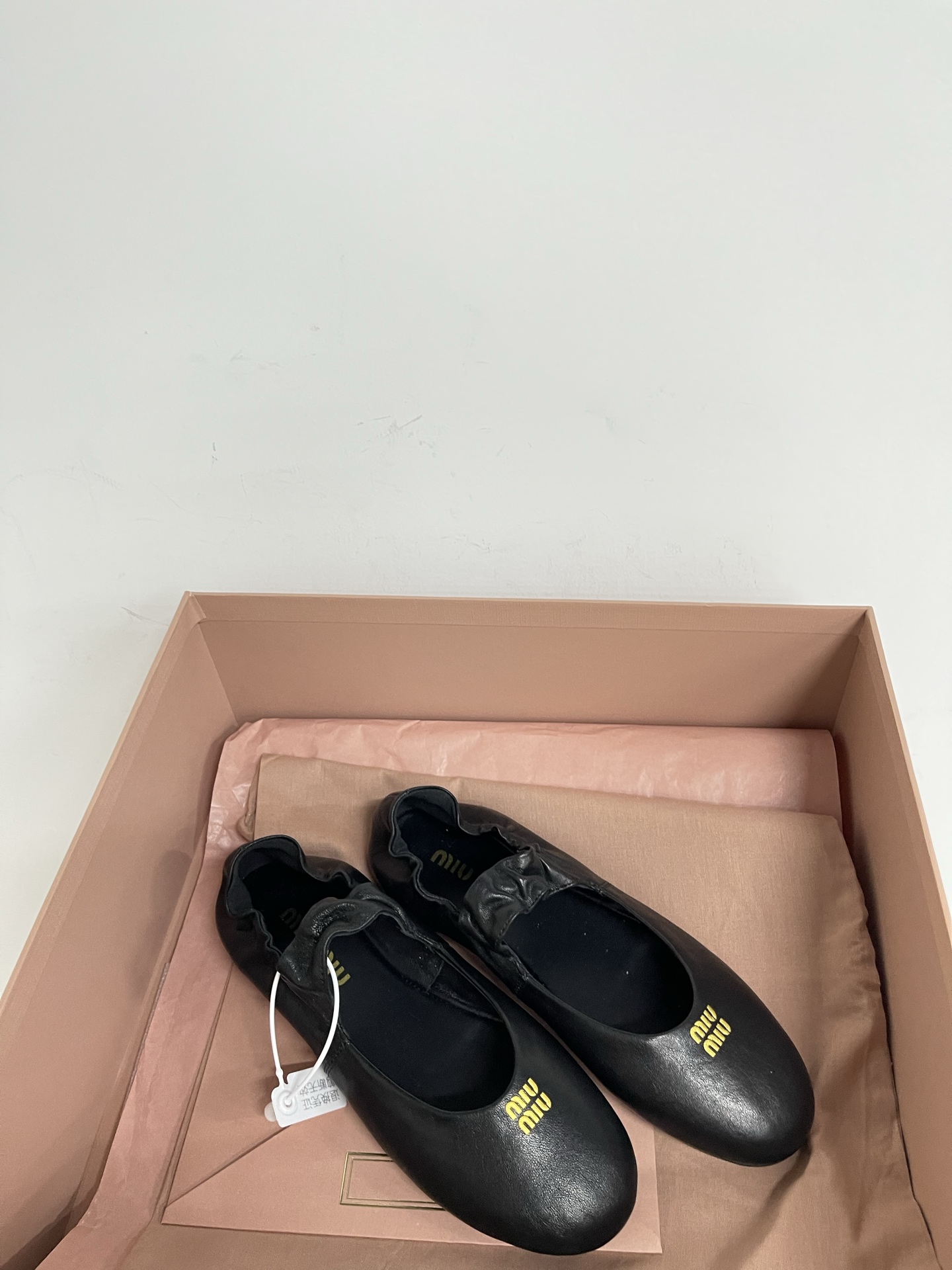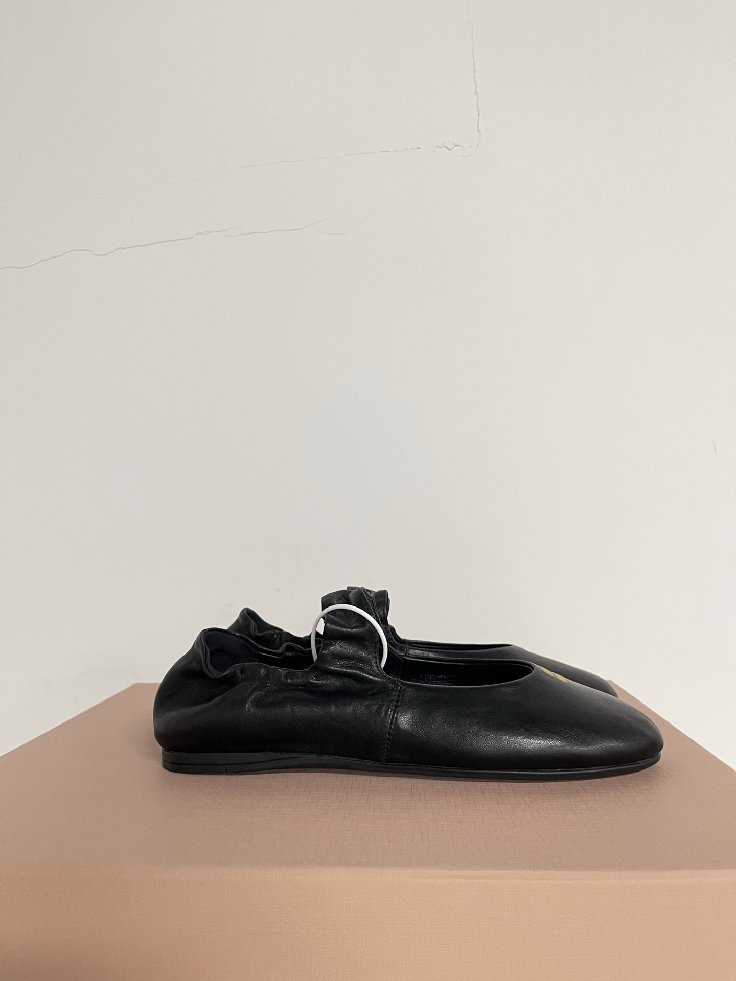 미우미우 루슈 나파 가죽 발레리나 플랫슈즈 5F340E