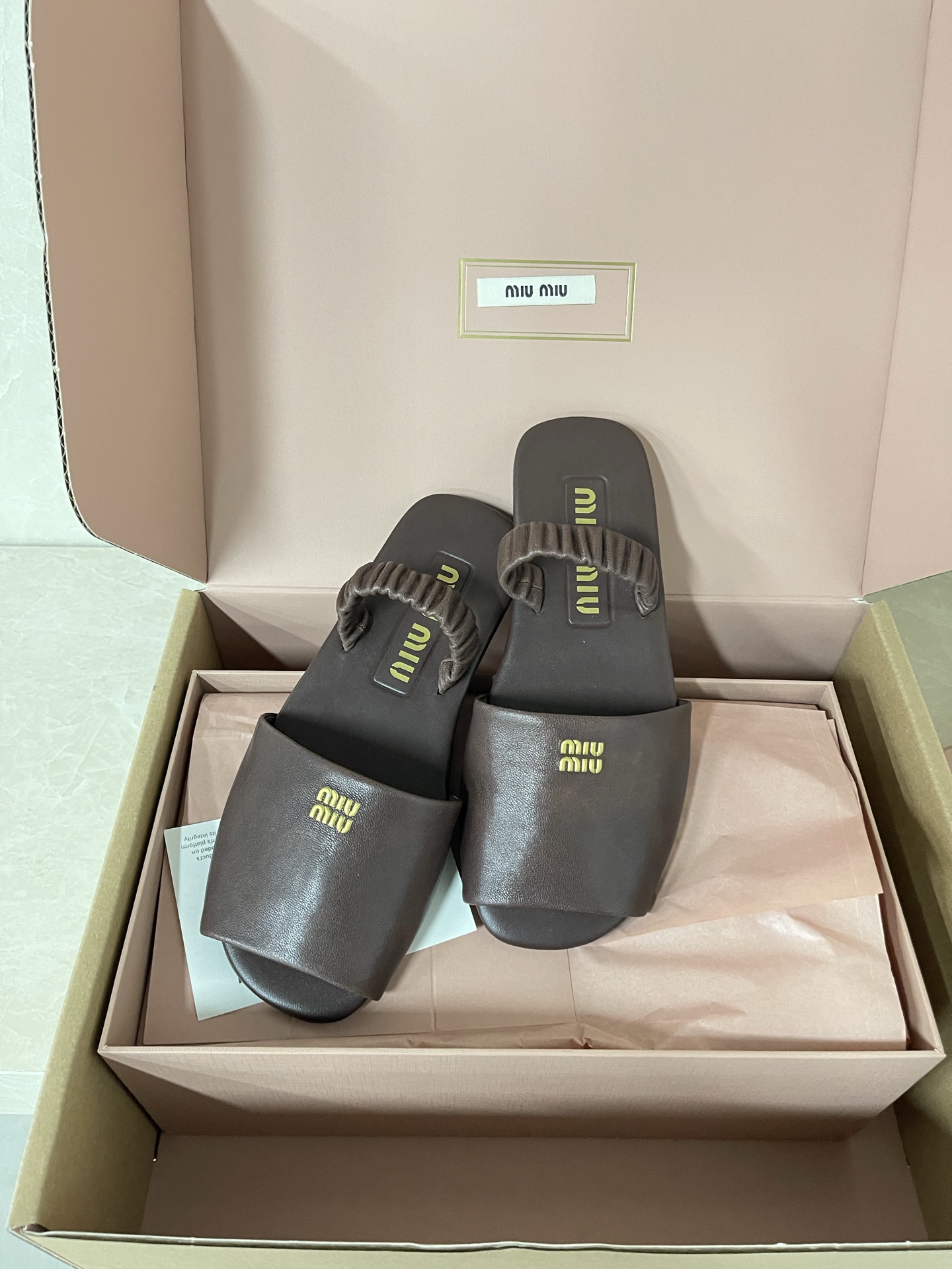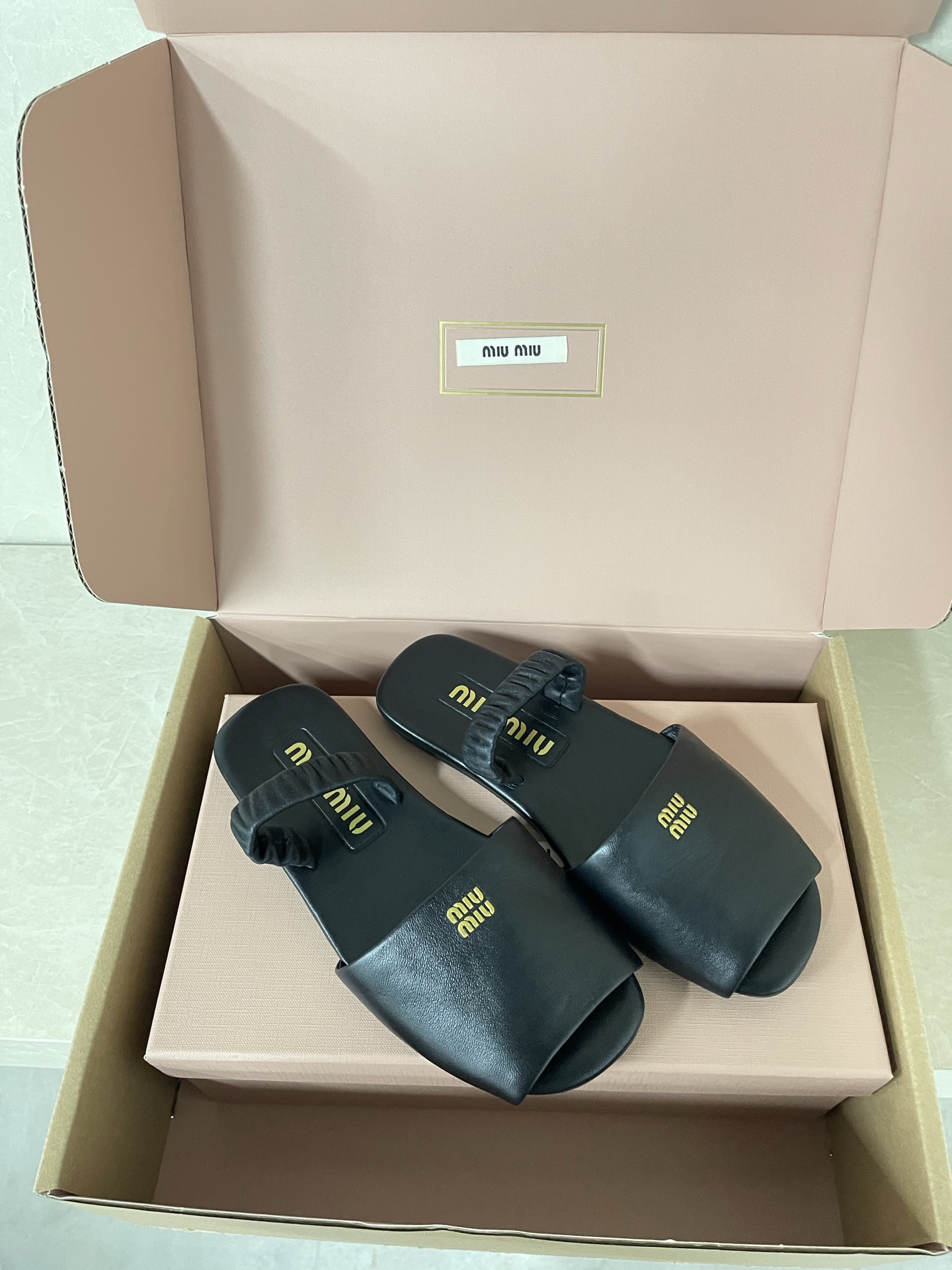 미우미우 루시 로고 나파 레더 샌들 5X372E 수량