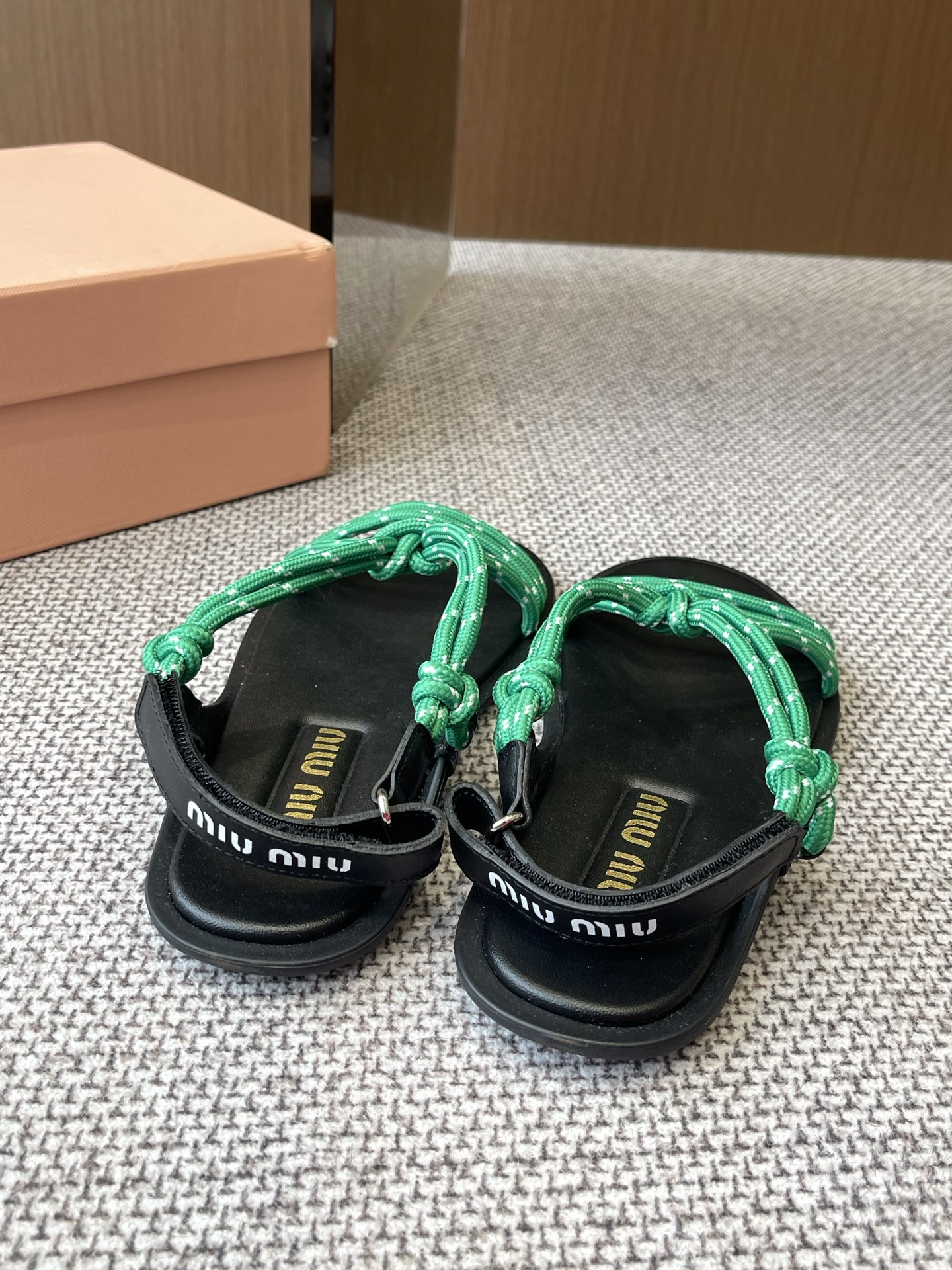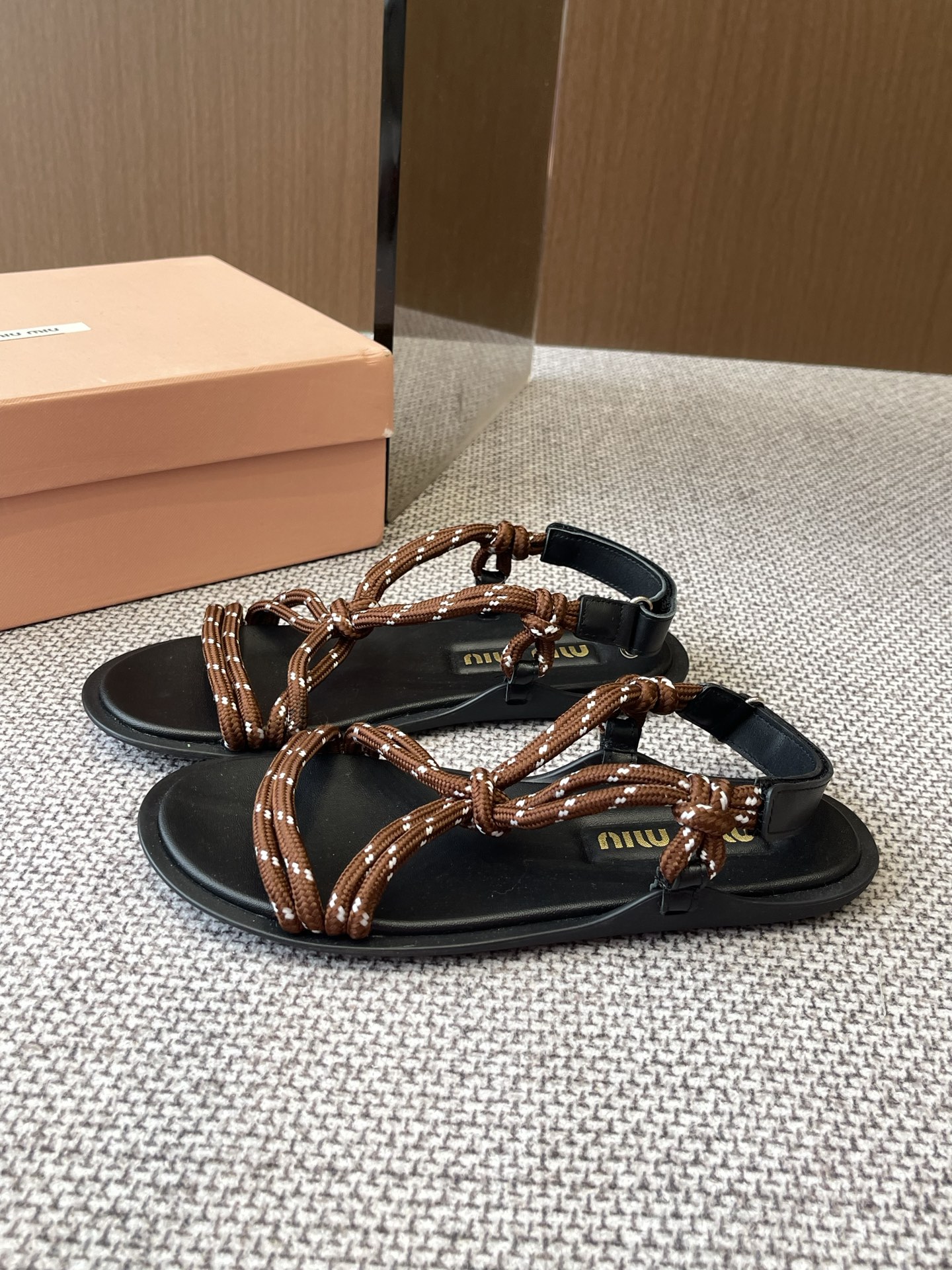 미우미우 리비에르 코드 가죽 샌들 5X420E