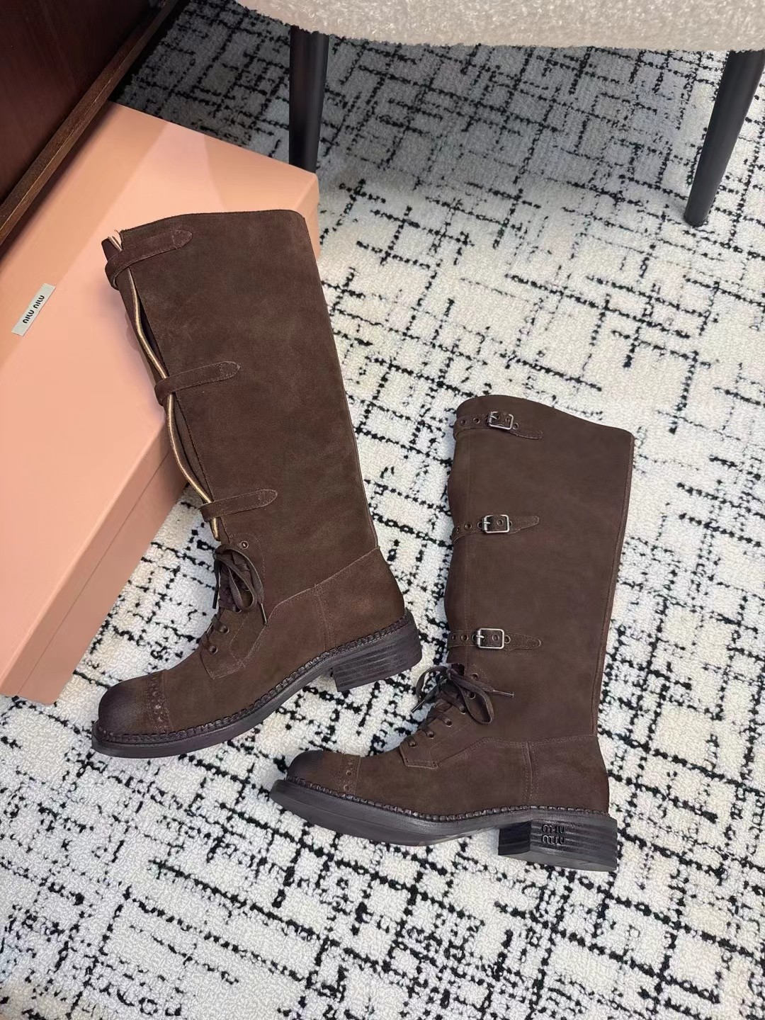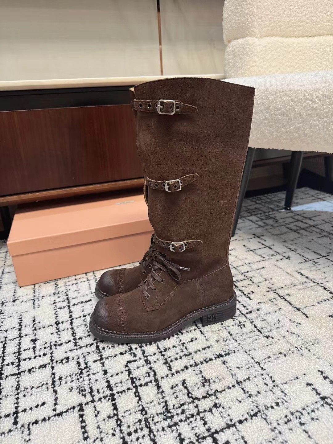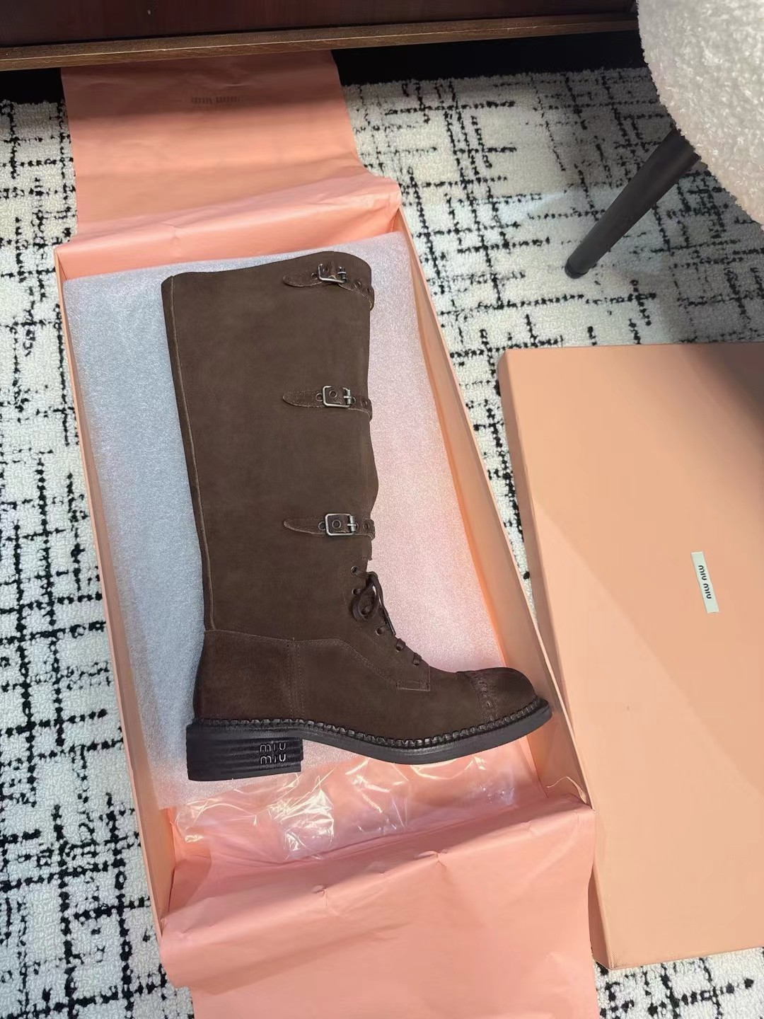 미우미우 멀티 버클 스웨이드 롱부츠 5W315E