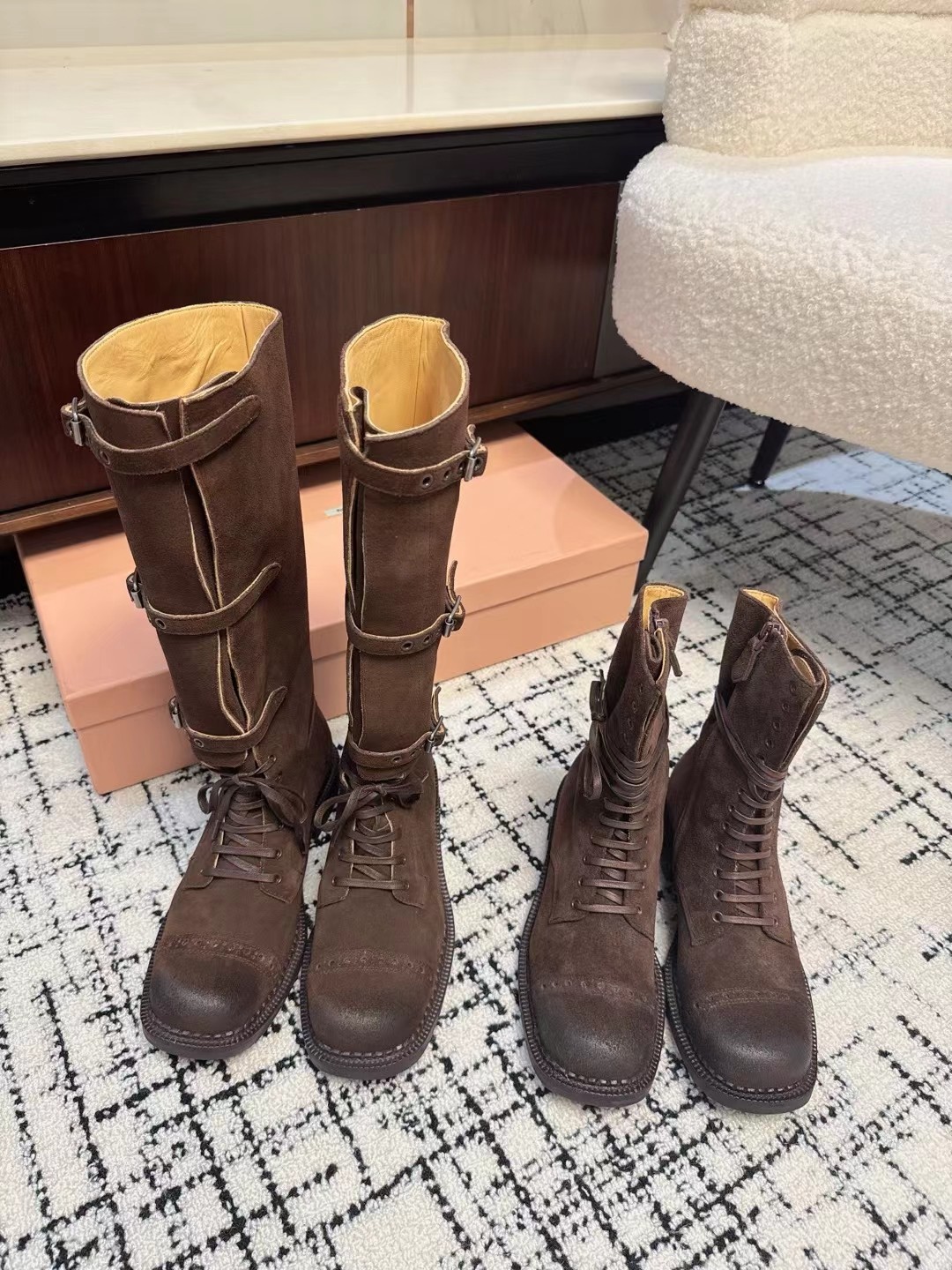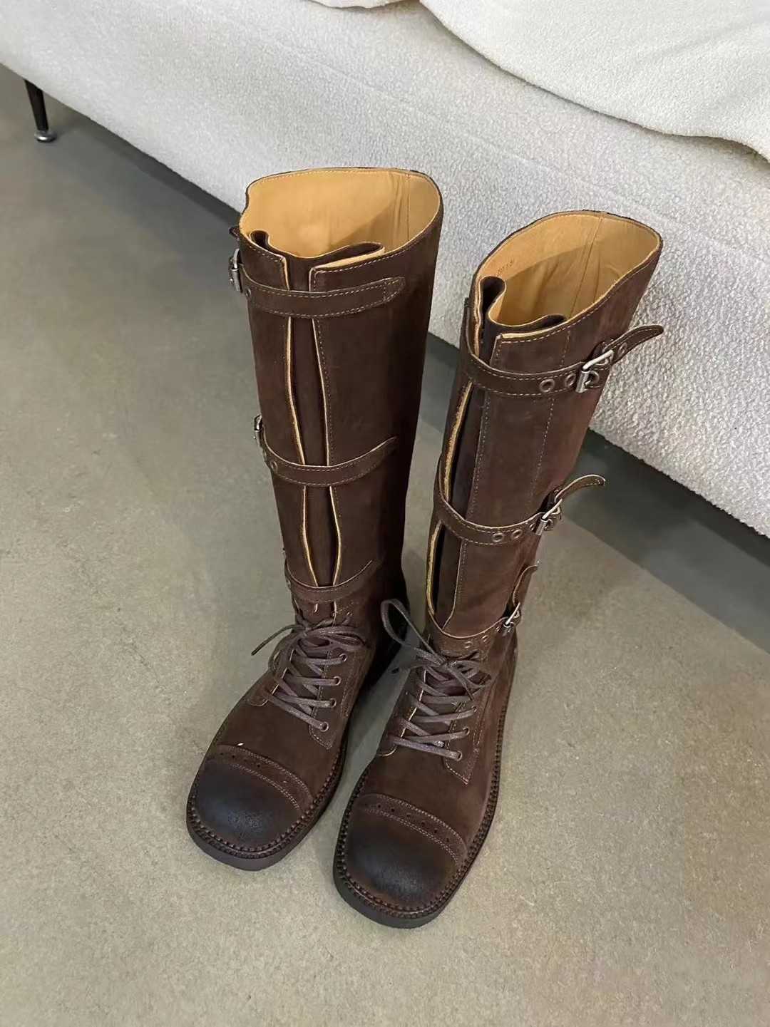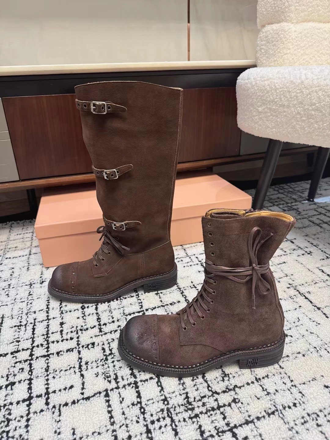 미우미우 멀티 버클 스웨이드 롱부츠 5W315E