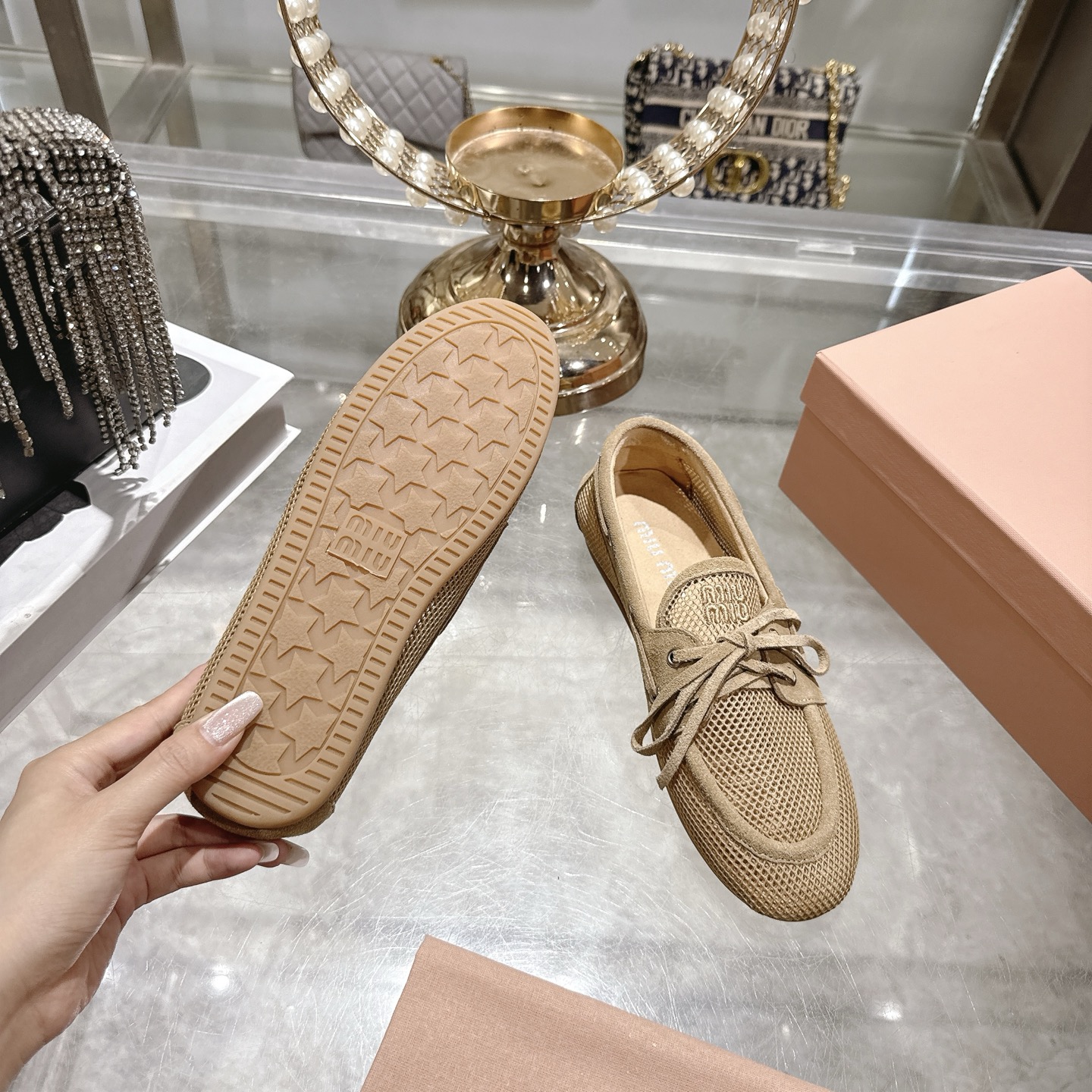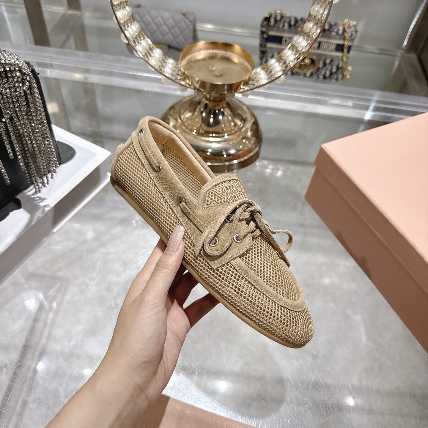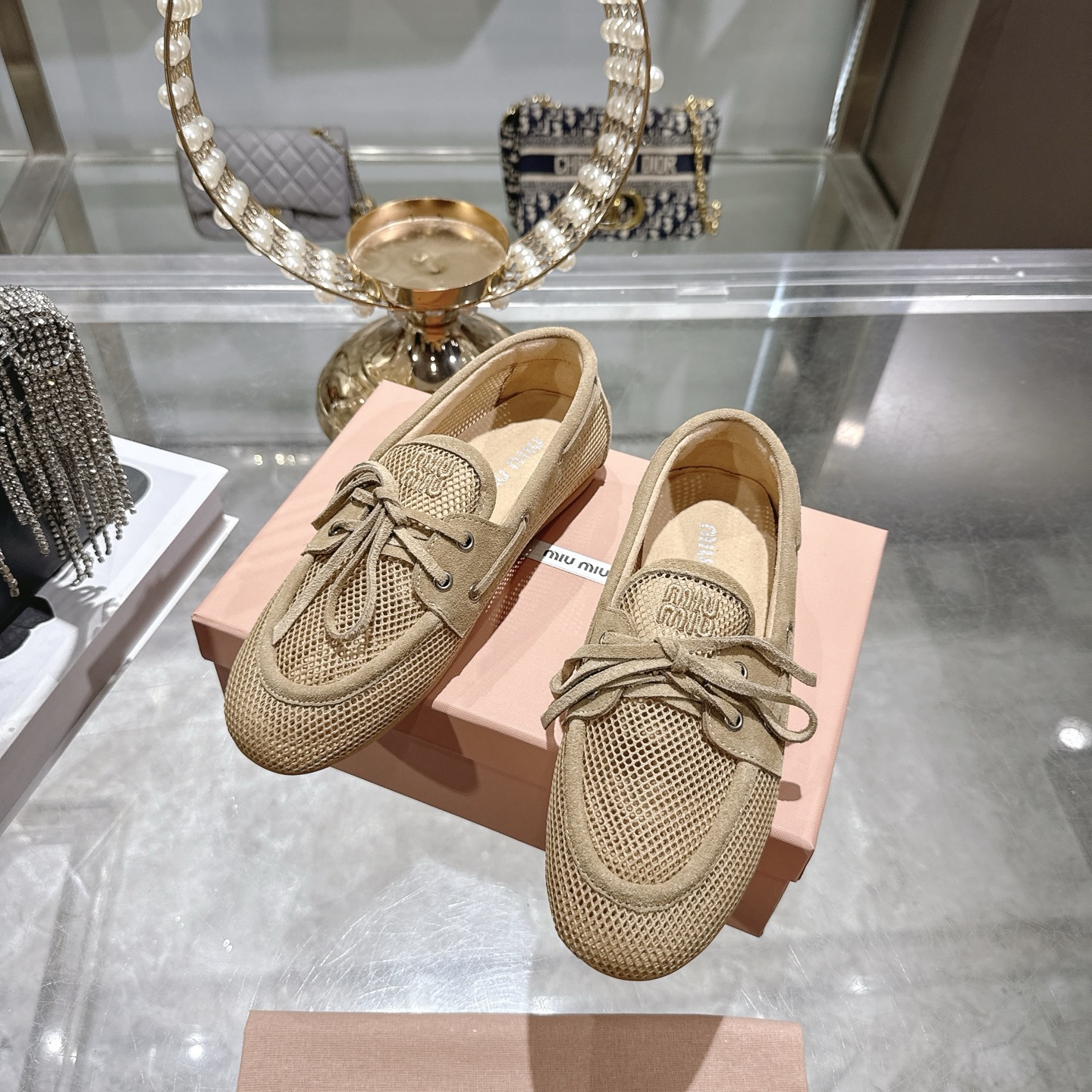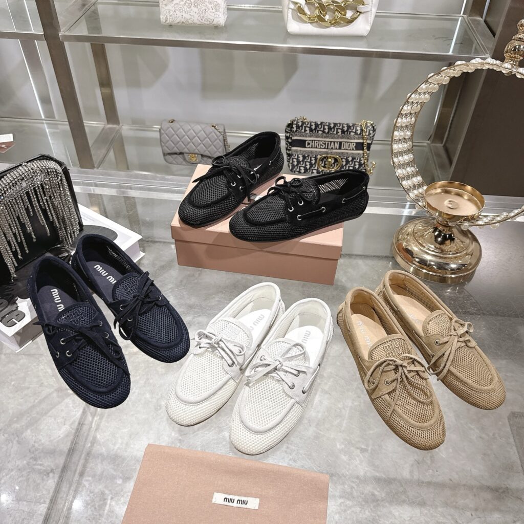 미우미우 메시 스웨이드 덱 슈즈 로퍼 5D585E