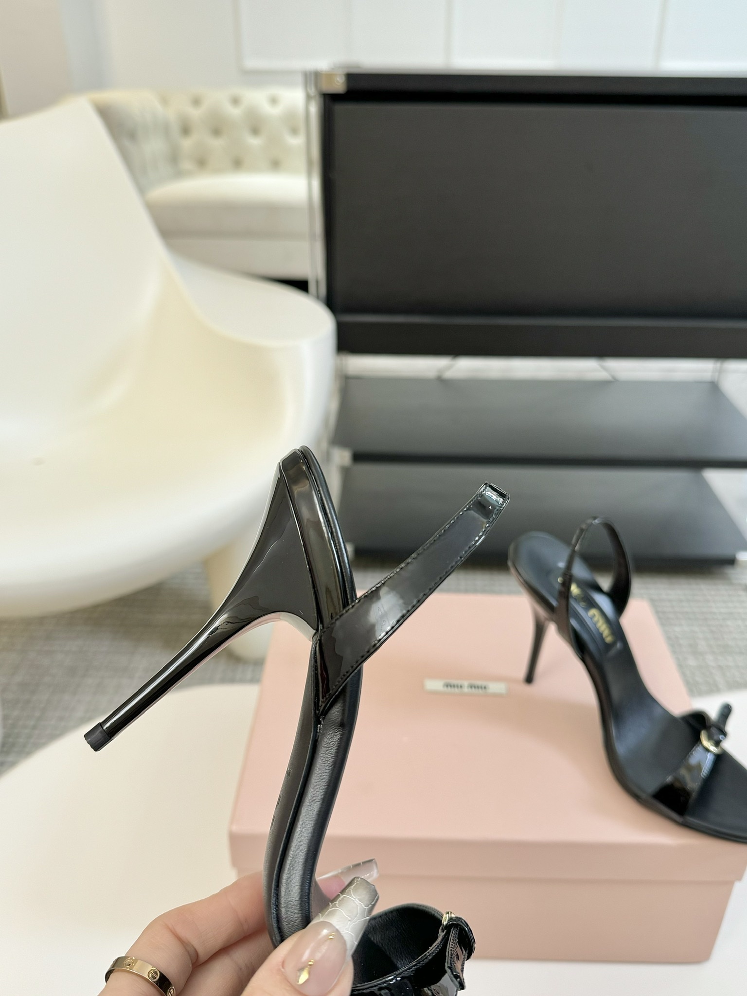 미우미우 메탈릭 가죽 스트랩 힐 샌들 5X343E