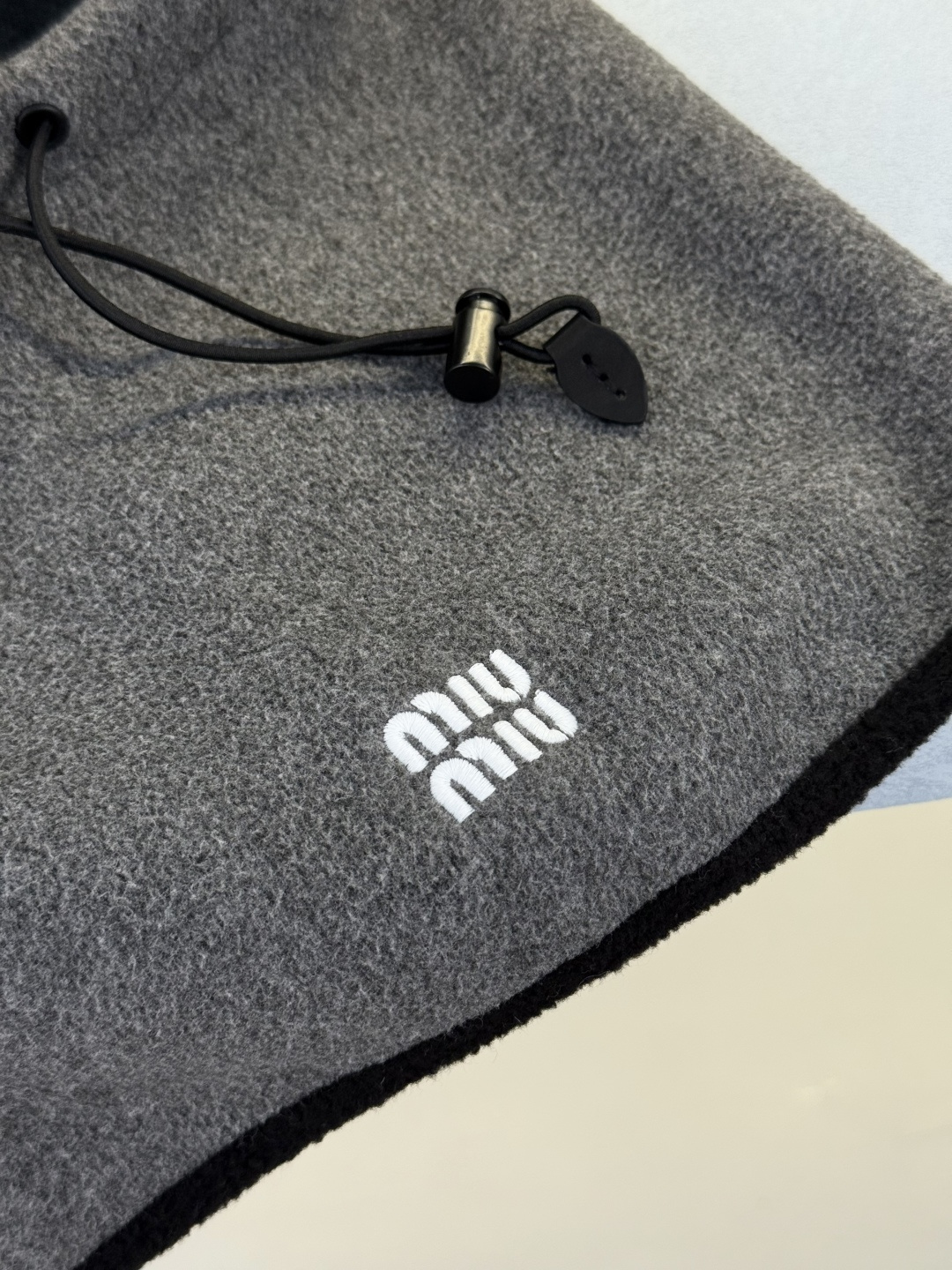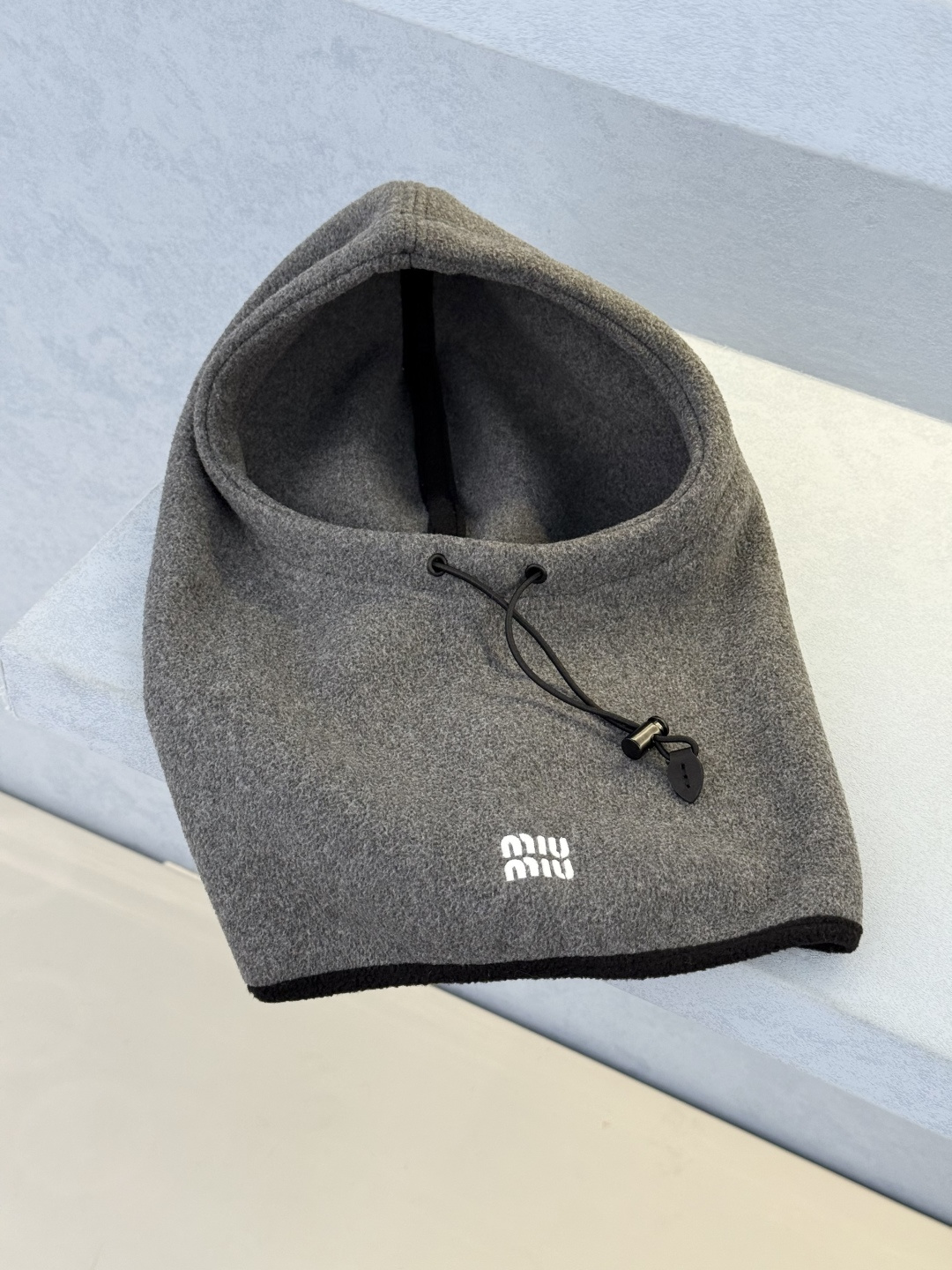 미우미우 비니 모자 플리스 후드 그레이 5HC233