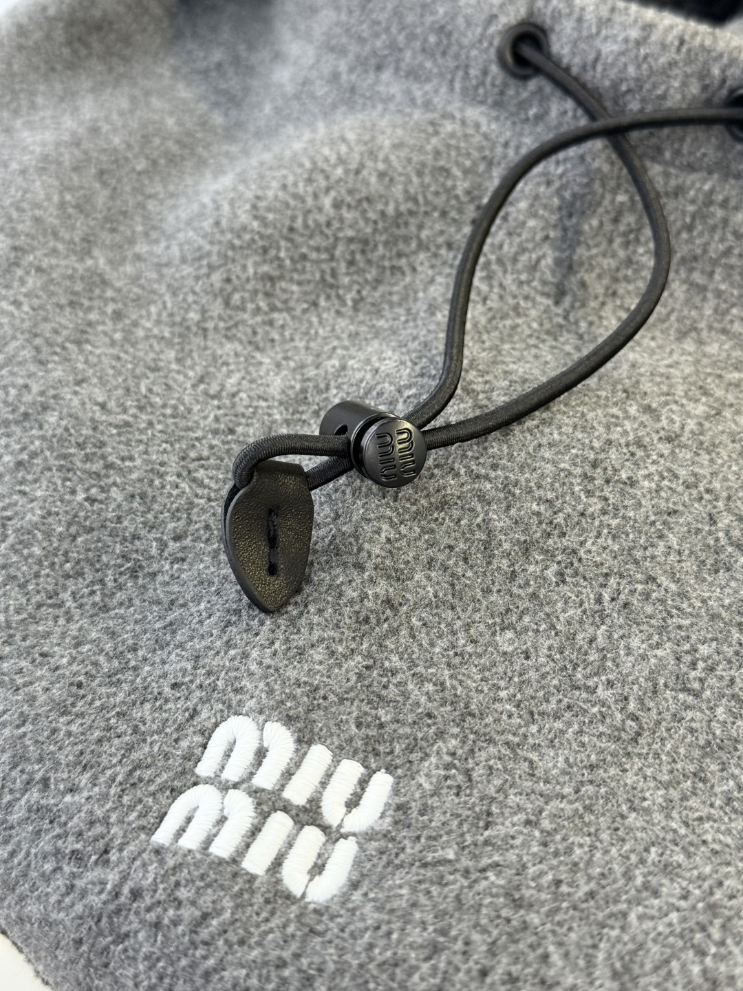/ 미우미우 비니 모자 플리스 후드 그레이 5HC233