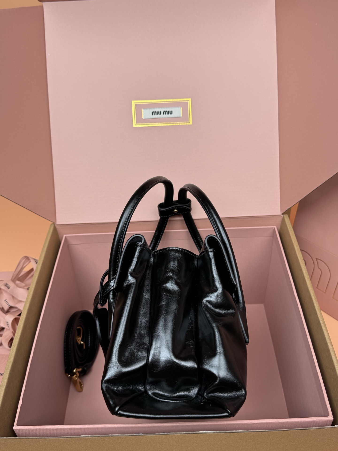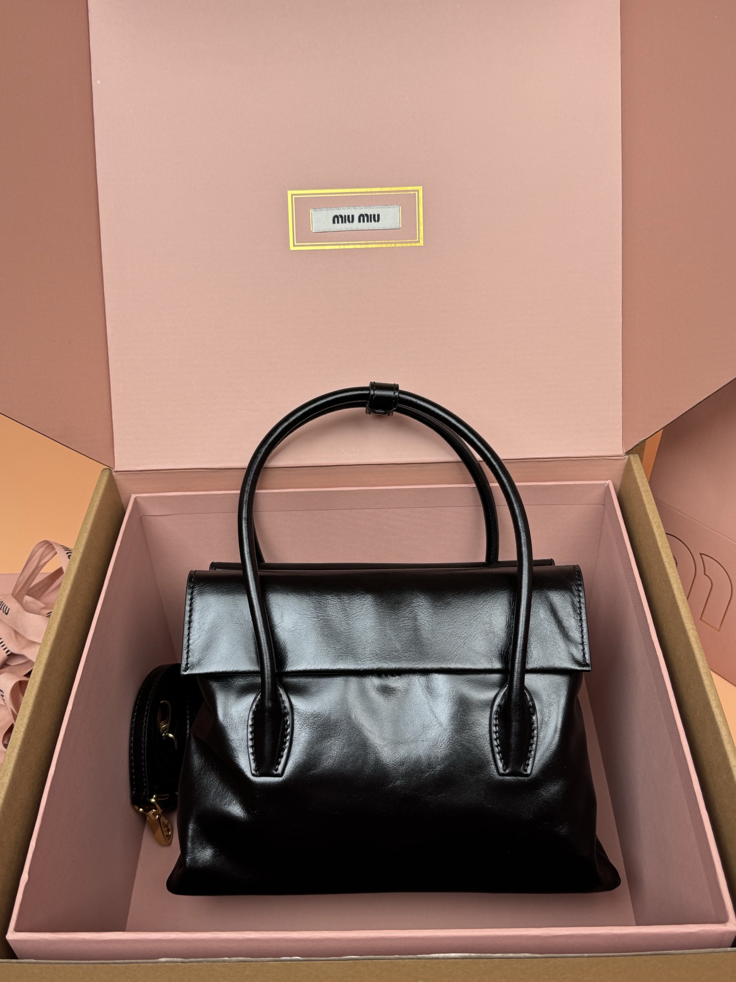 미우미우 솔리테르 광택 가죽 백 숄더백 5BA302