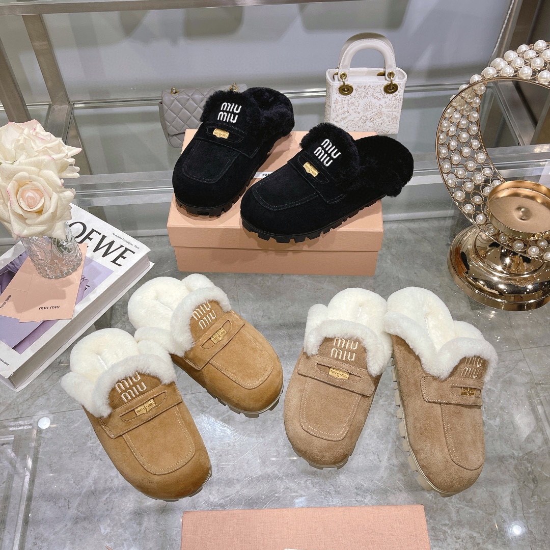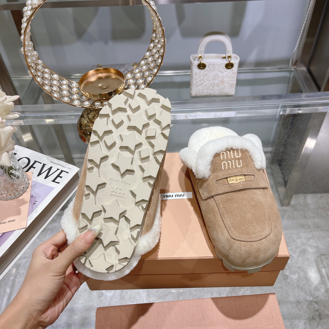 미우미우 스웨이드 시어링 뮬 5D058E