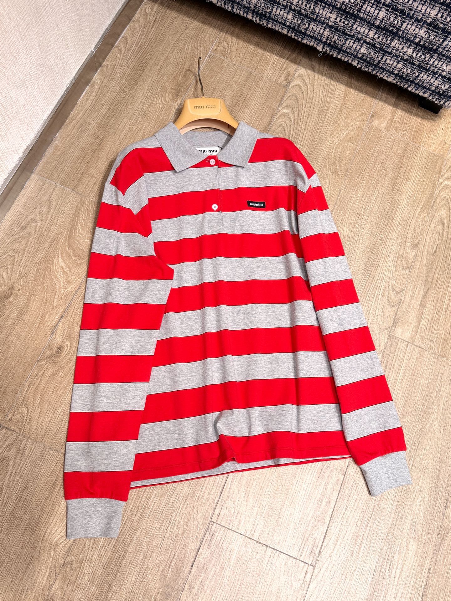 미우미우 스트라이프 저지 폴로 셔츠 MJLA19