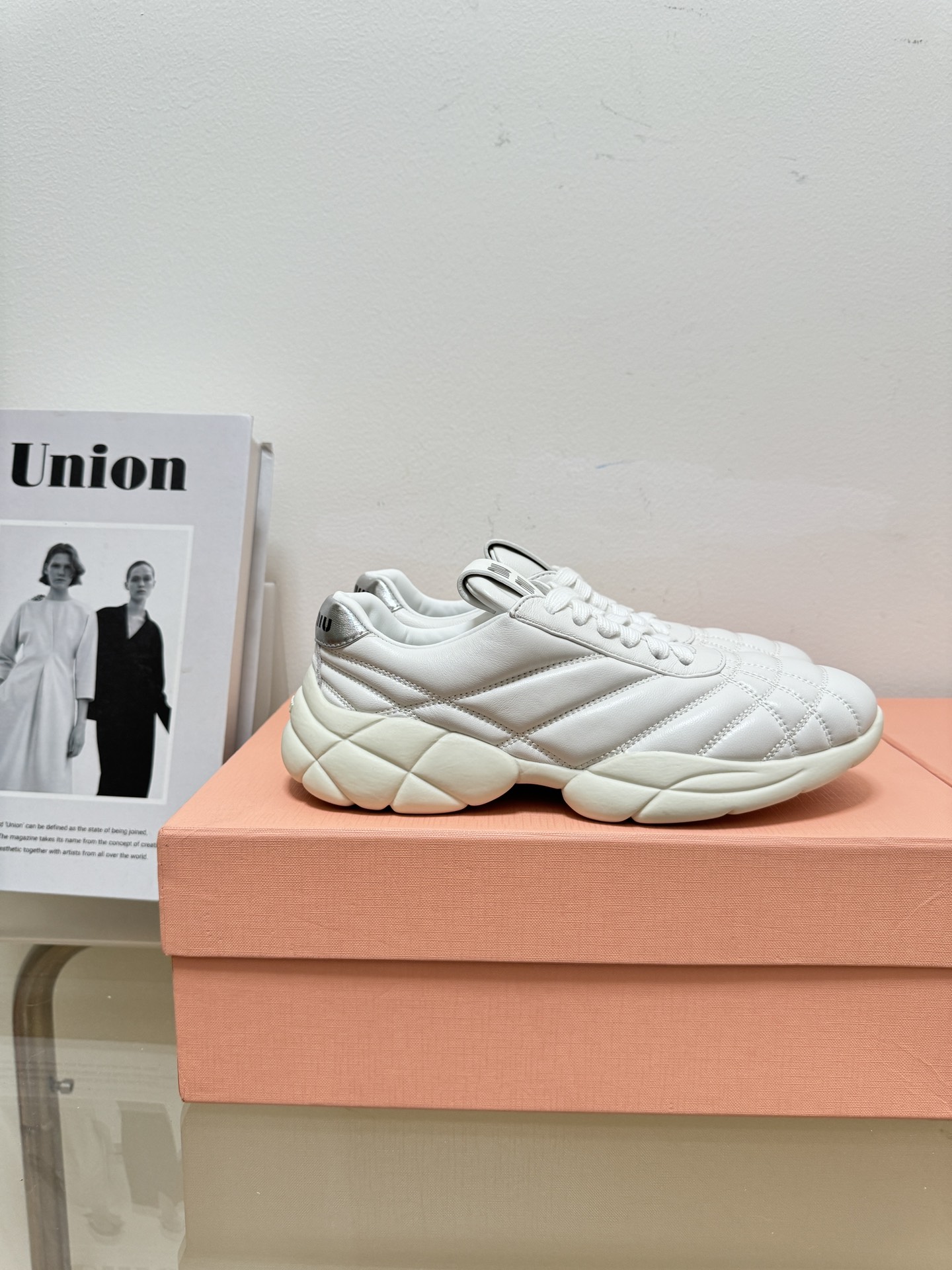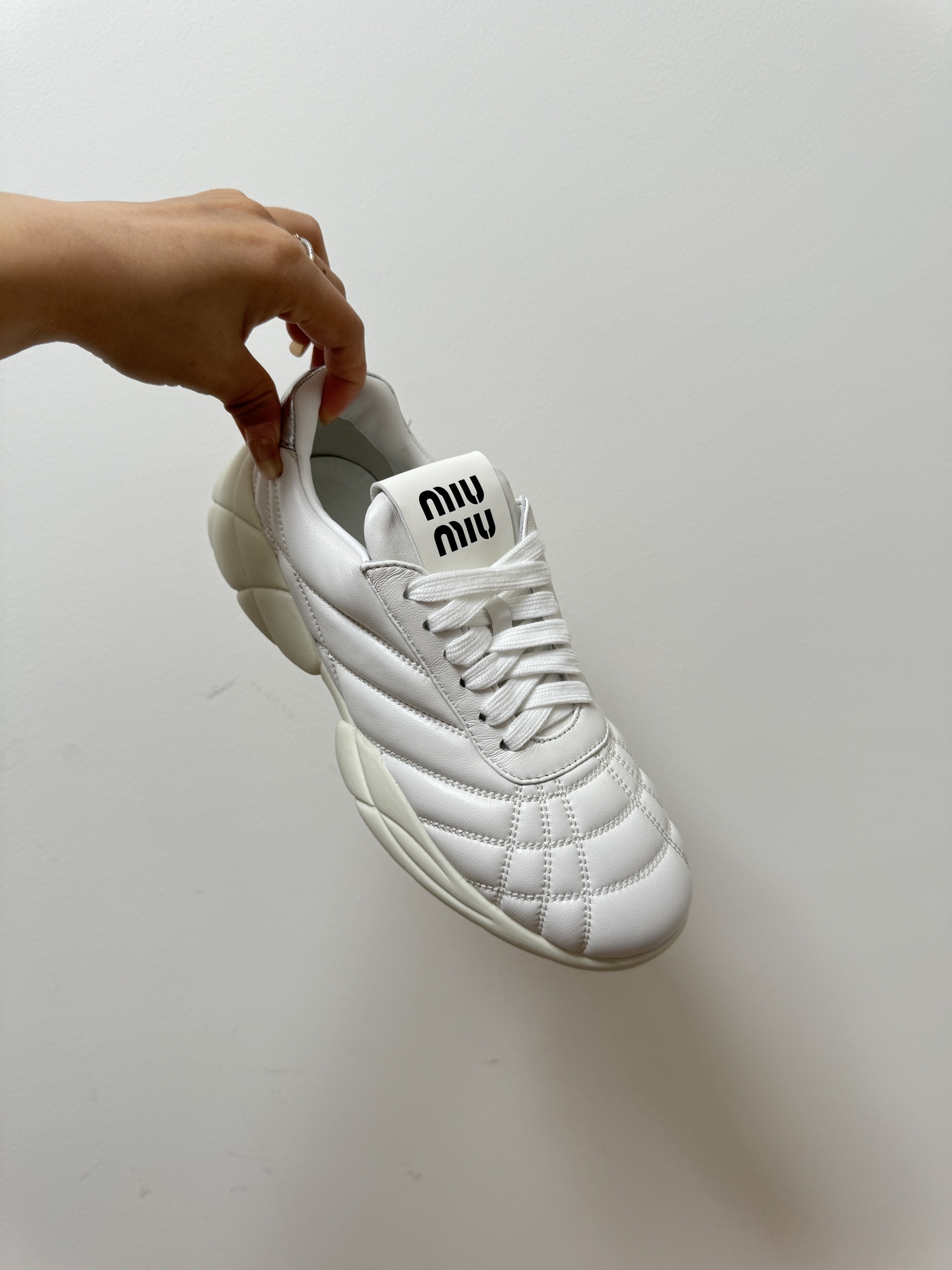 미우미우 여성 나파 가죽 스티치 스니커즈 5E522D 신발 수량