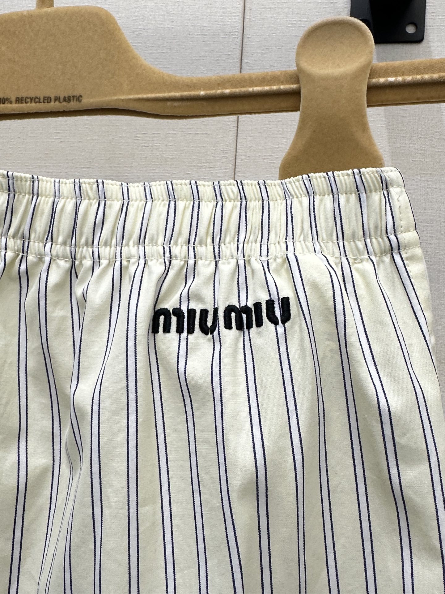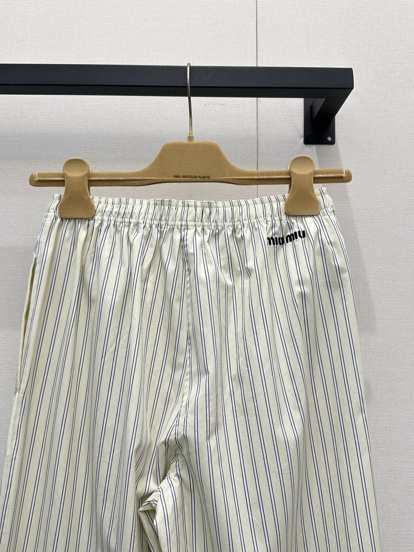 미우미우 여성 로고 자수 포플린 팬츠 MP1829