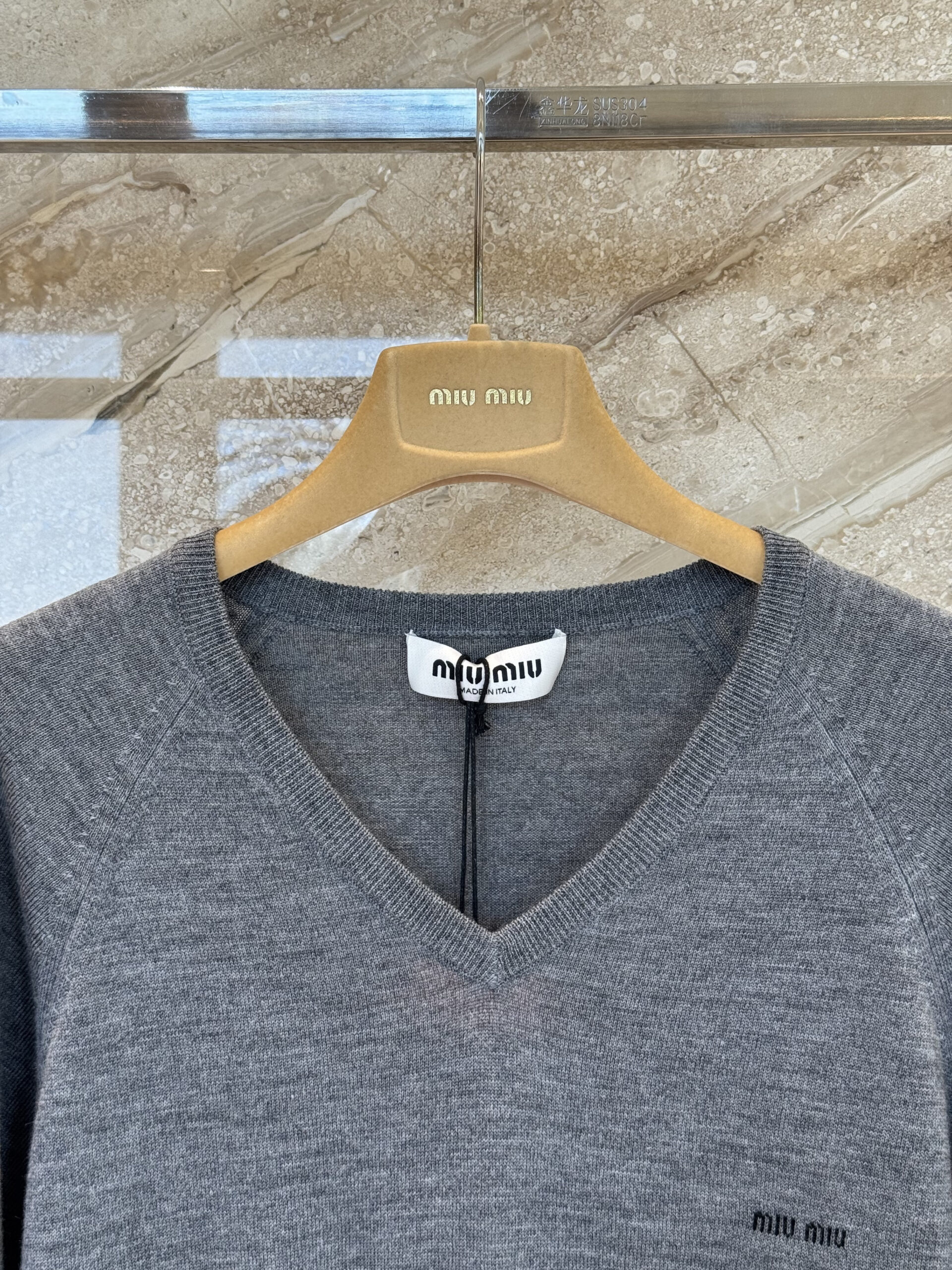 미우미우 울 브이넥 반팔 니트