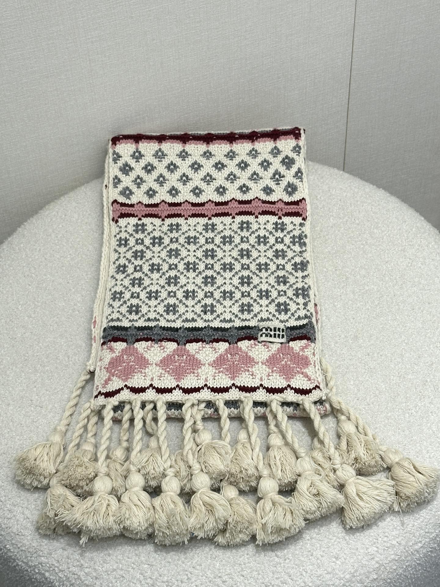 미우미우 울 캐시미어 니트 태슬 머플러 목도리 5FS133
