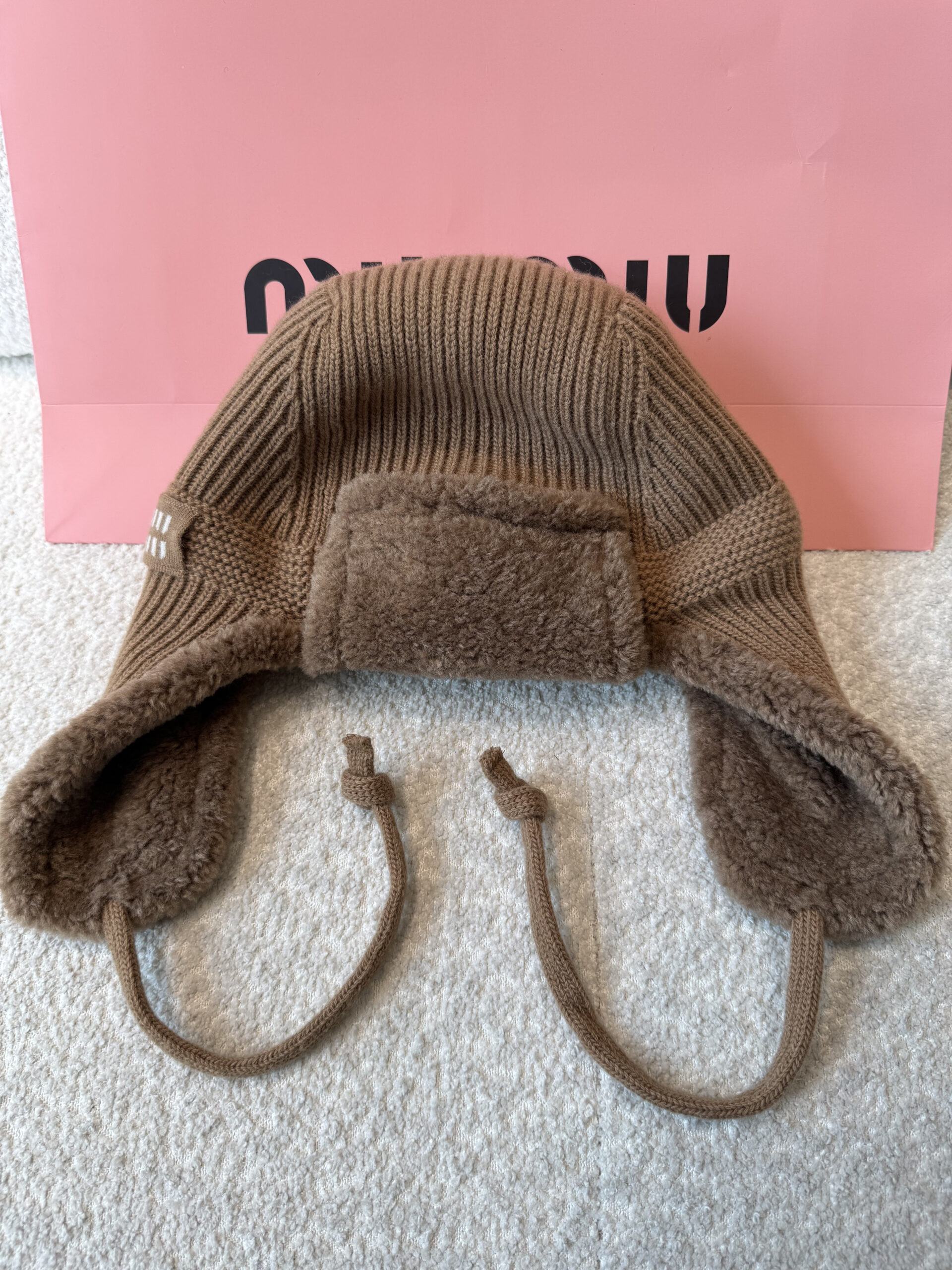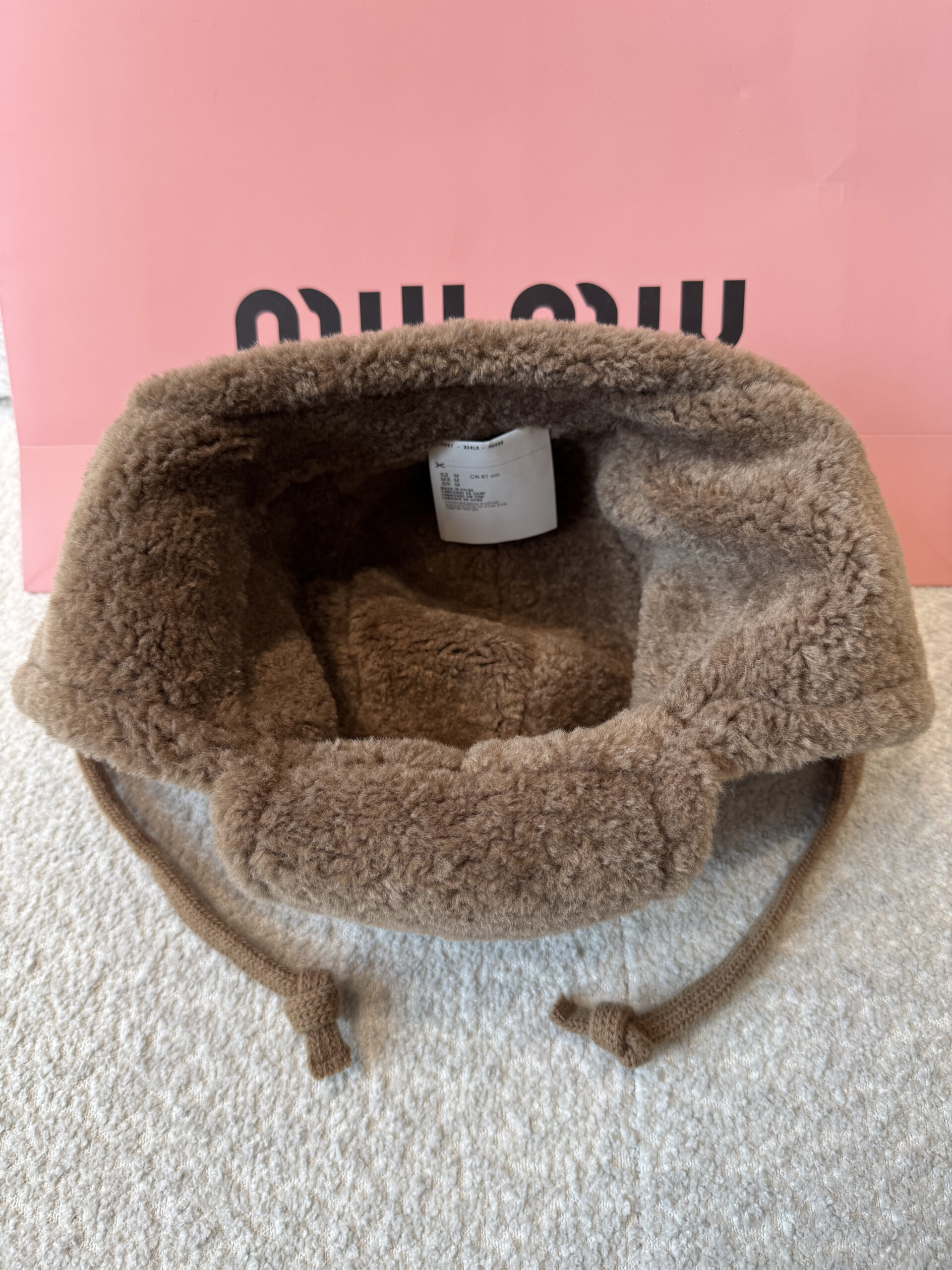 미우미우 울 캐시미어 시어링 트래퍼 햇 모자 5HC386