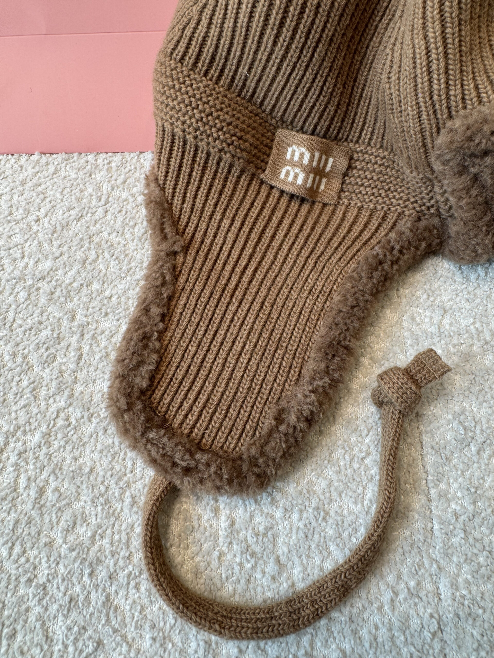 / 미우미우 울 캐시미어 시어링 트래퍼 햇 모자 5HC386