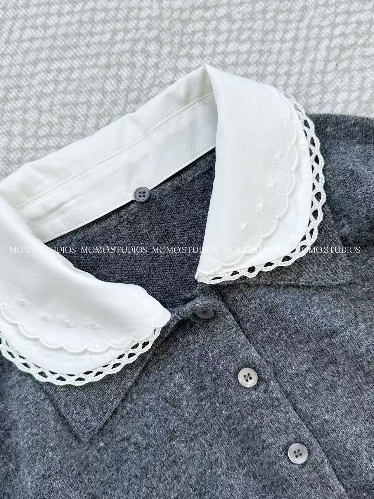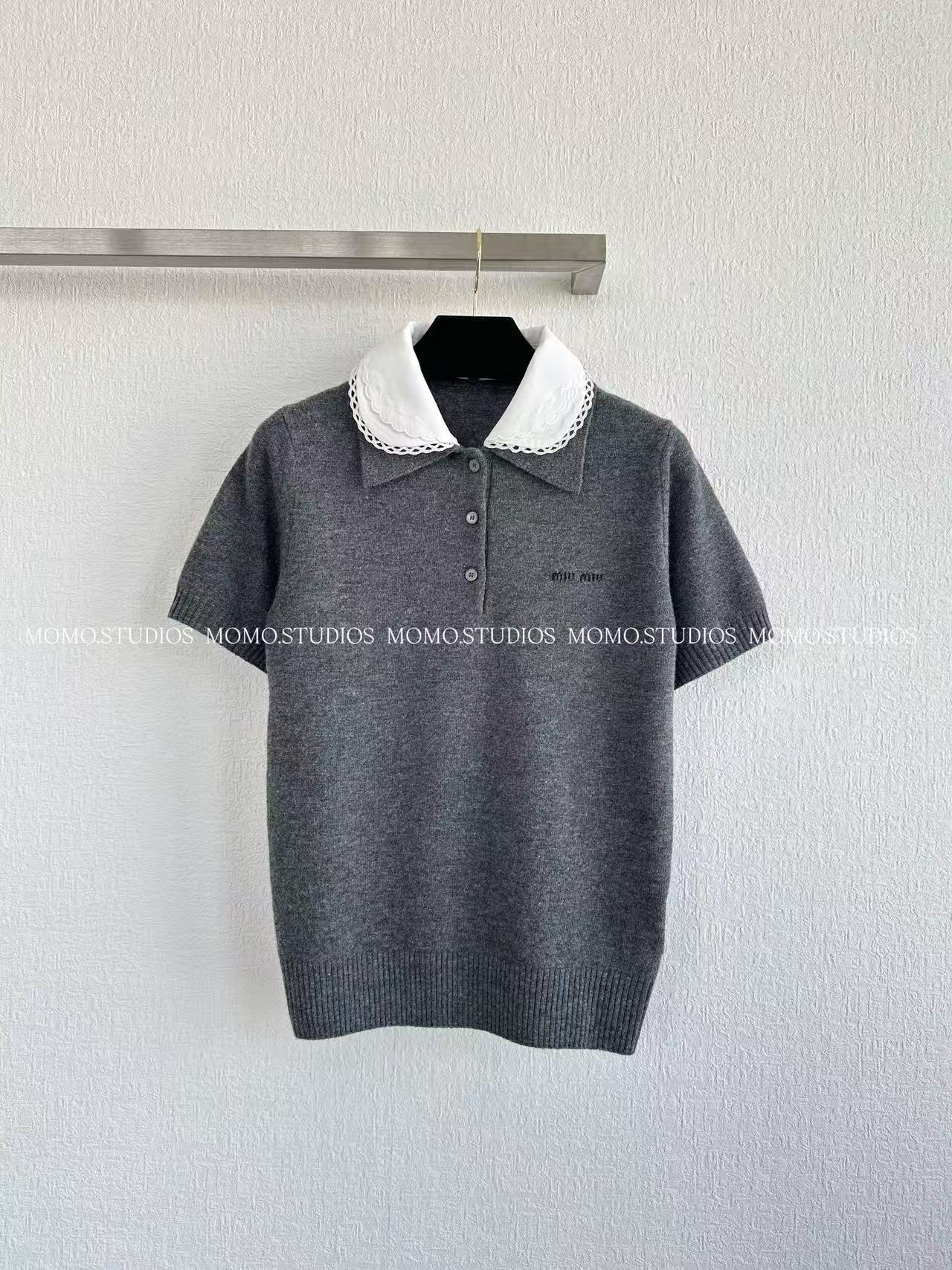 미우미우 자수 포플린 칼라 캐시미어 폴로 반팔 니트 MML03Z